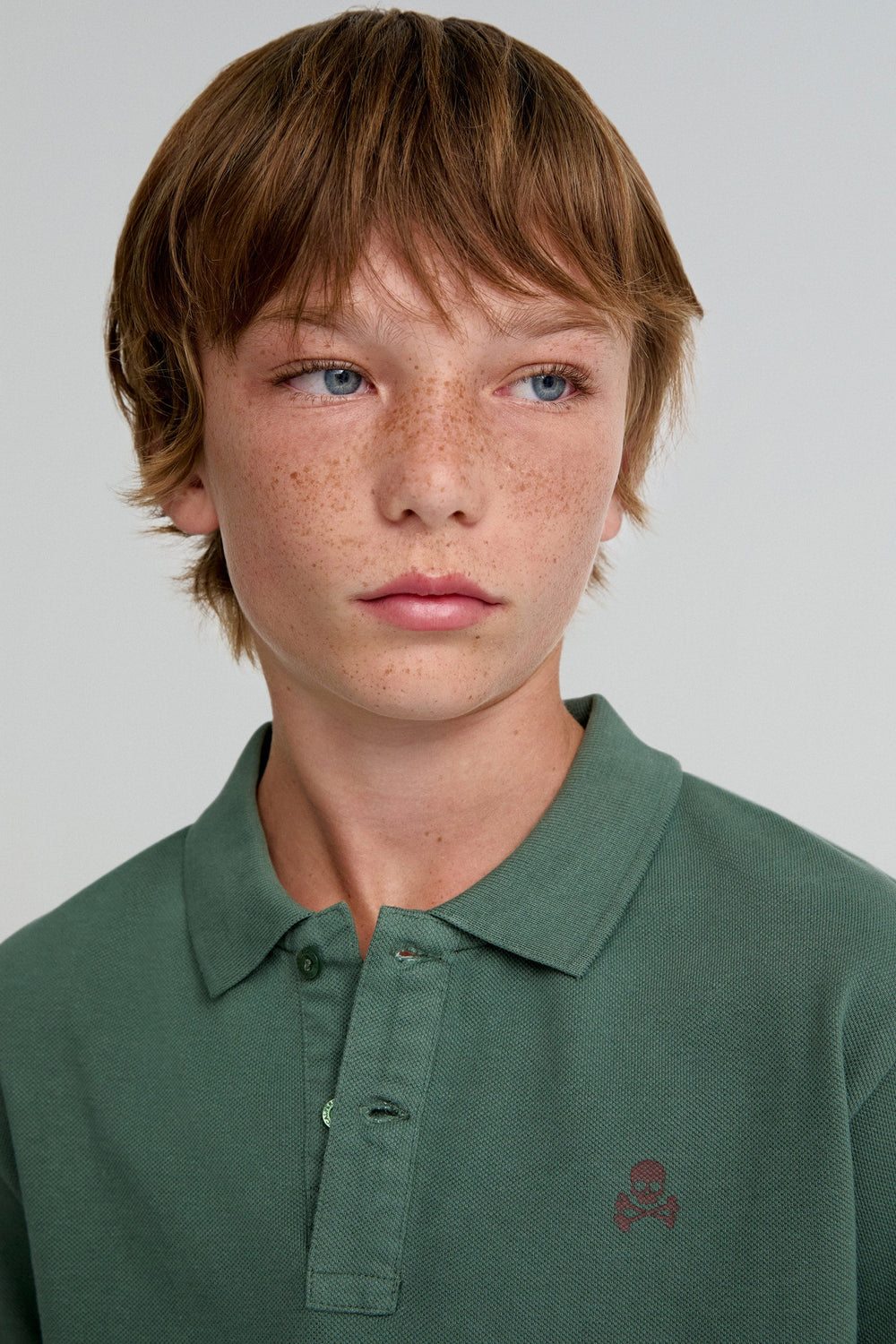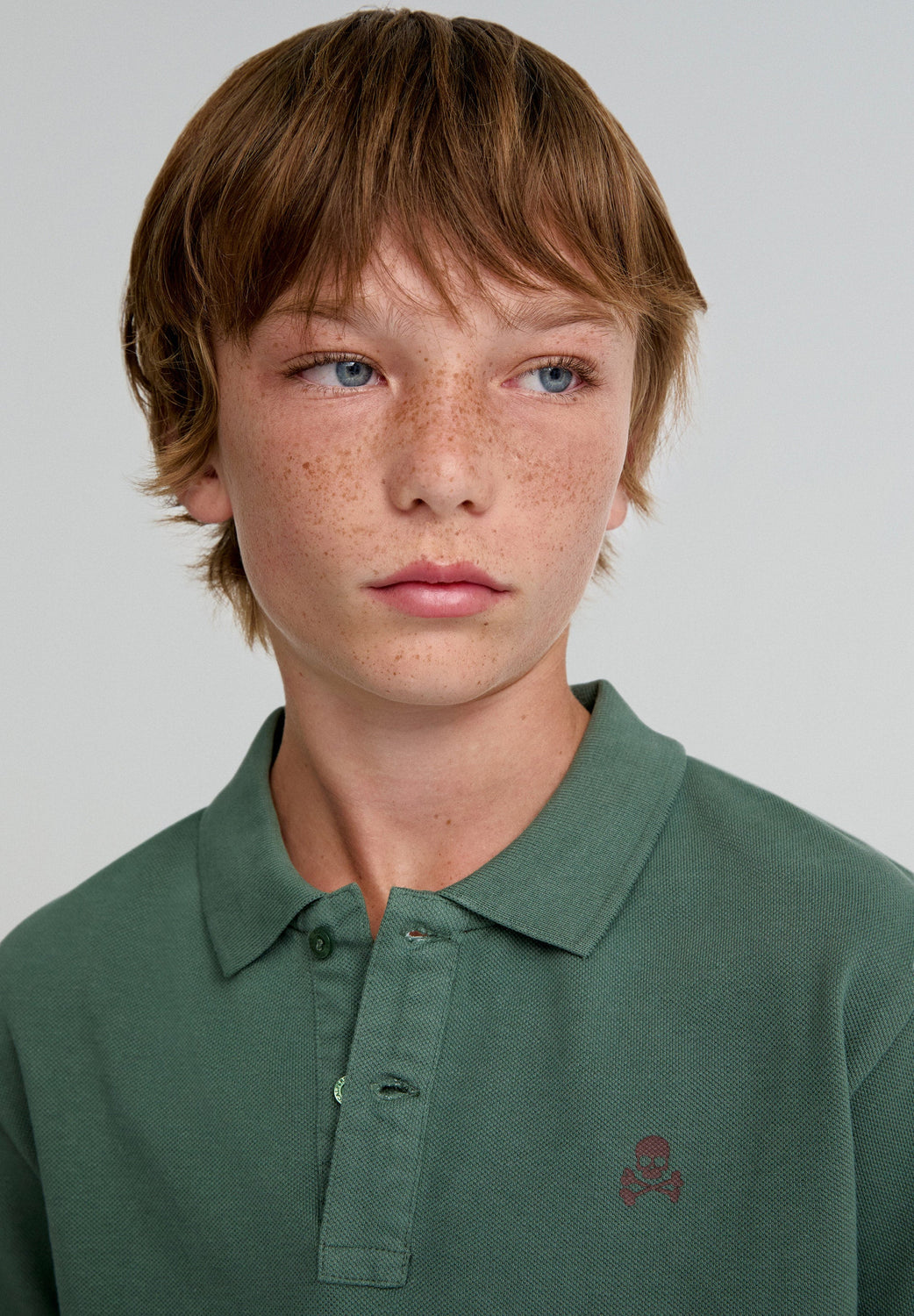 Polo con calavera bordada a tono confeccionada en 100% algodón BCI. Regular fit, cuello clásico y manga corta.