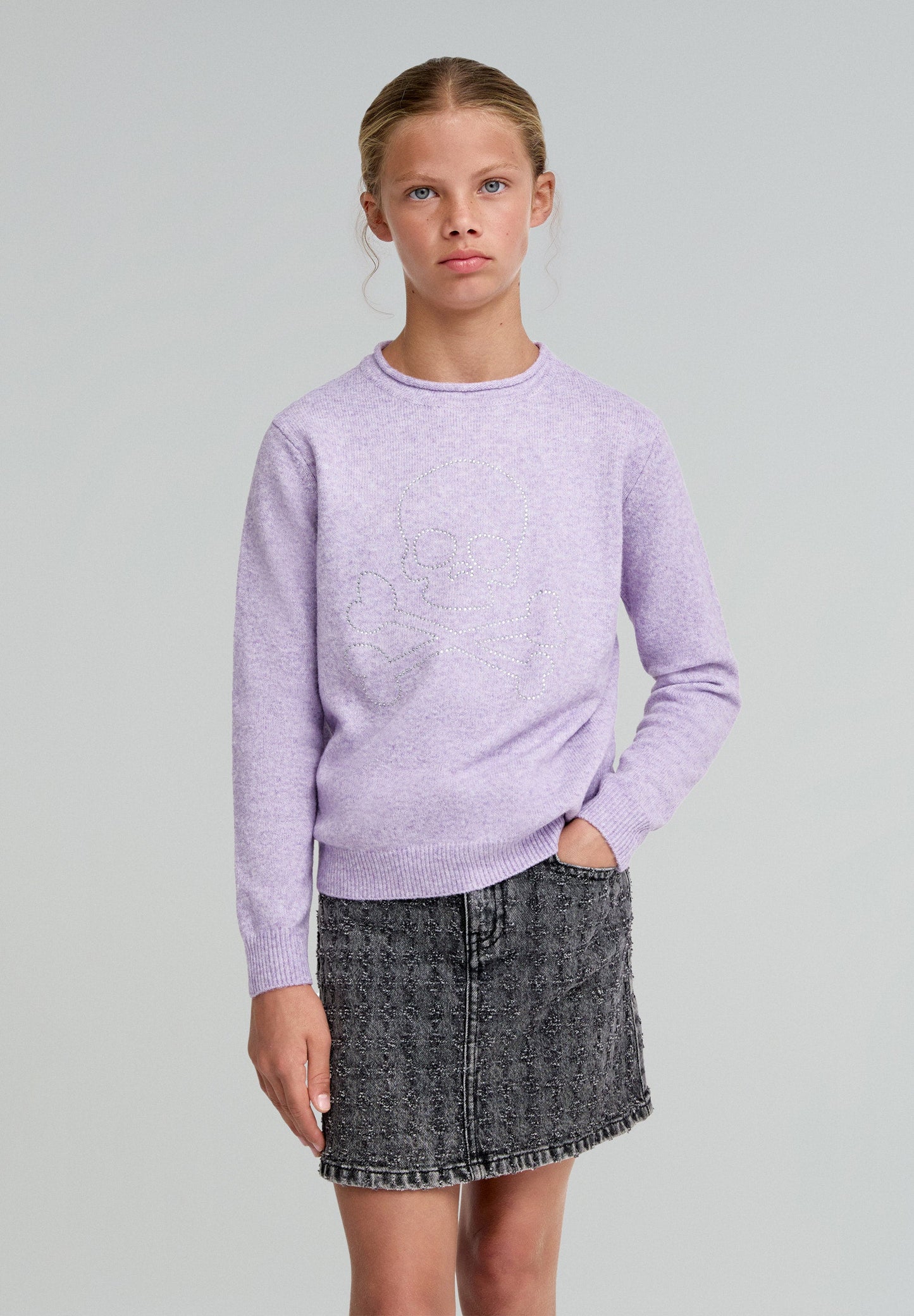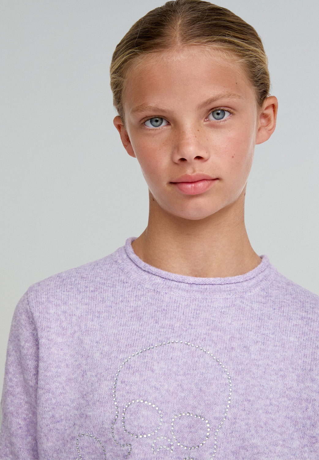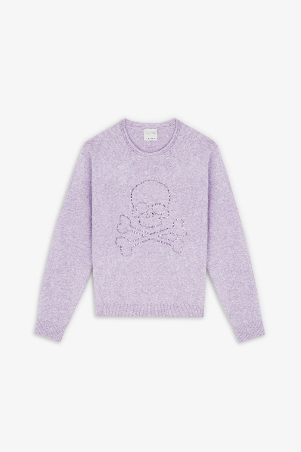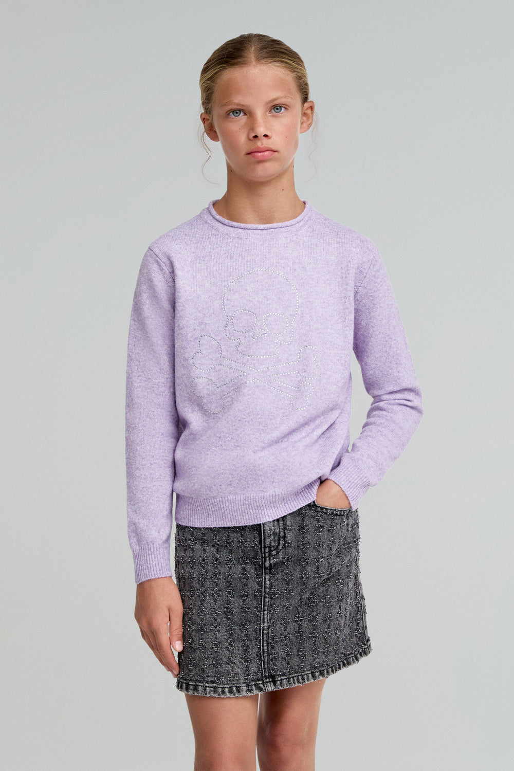 Jersey confeccionado en mezcla de lana. Regular fit, cuello redondo y manga larga. Calavera bordada con cristales.