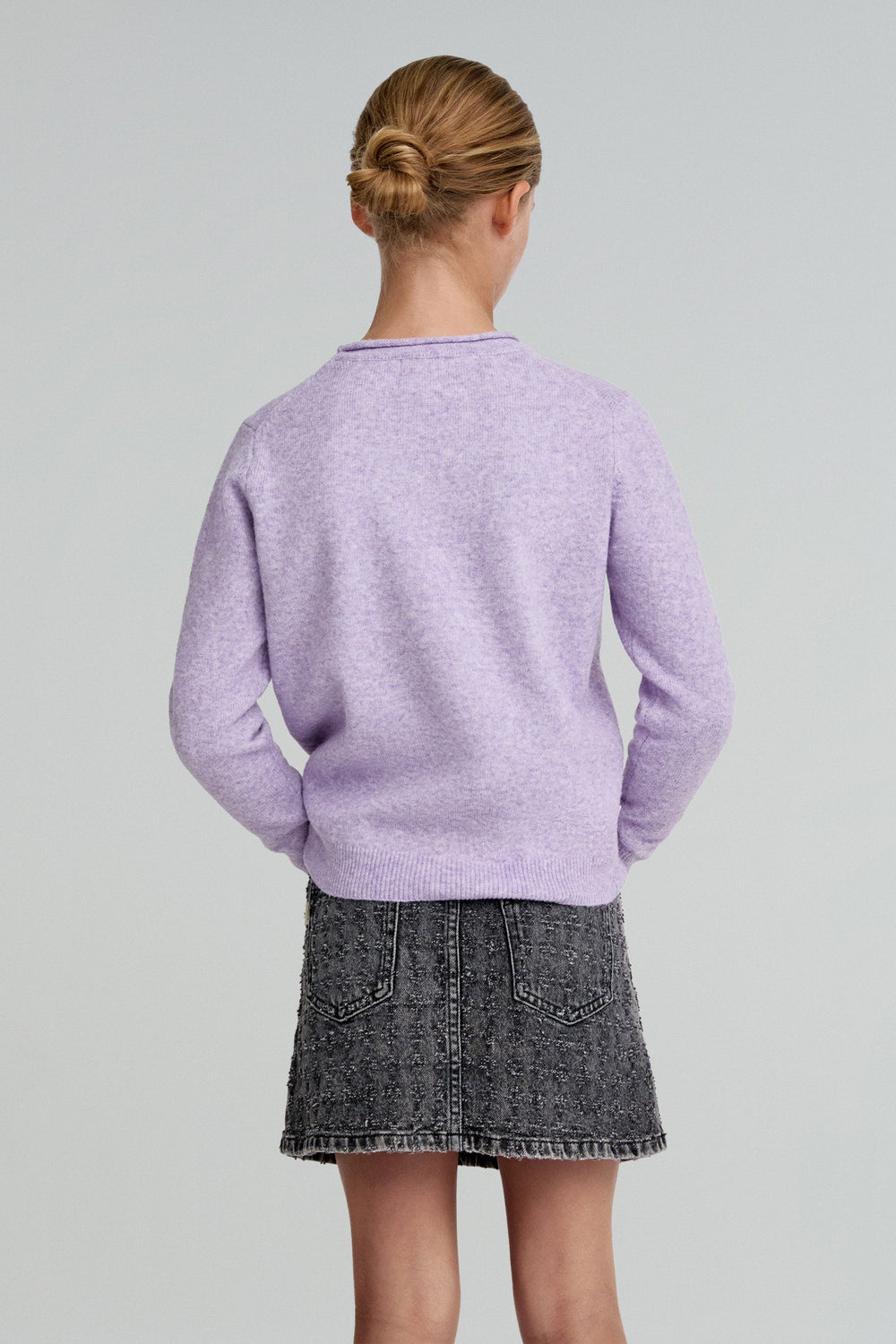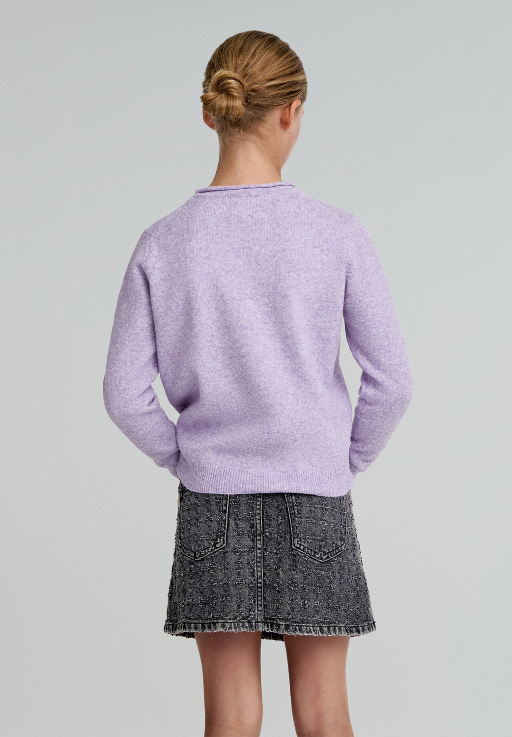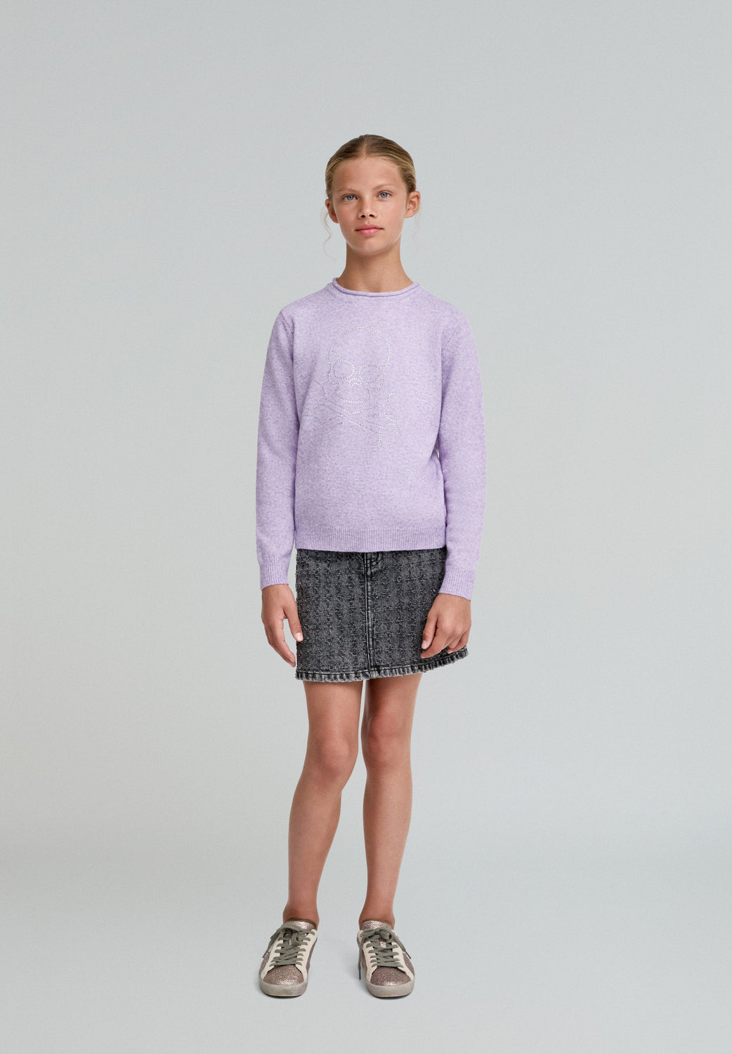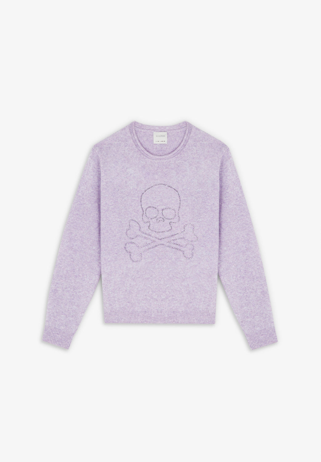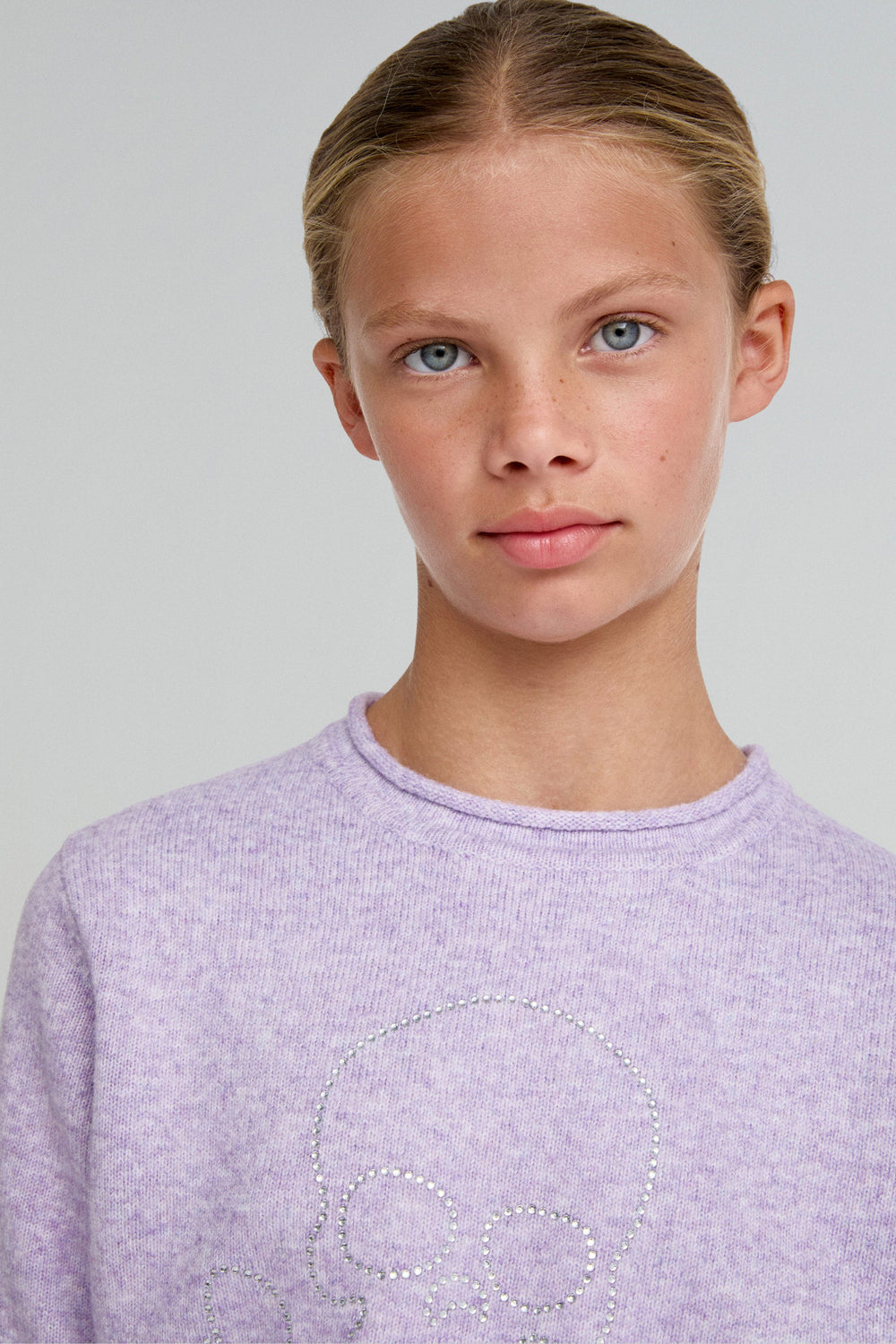 Jersey confeccionado en mezcla de lana. Regular fit, cuello redondo y manga larga. Calavera bordada con cristales.