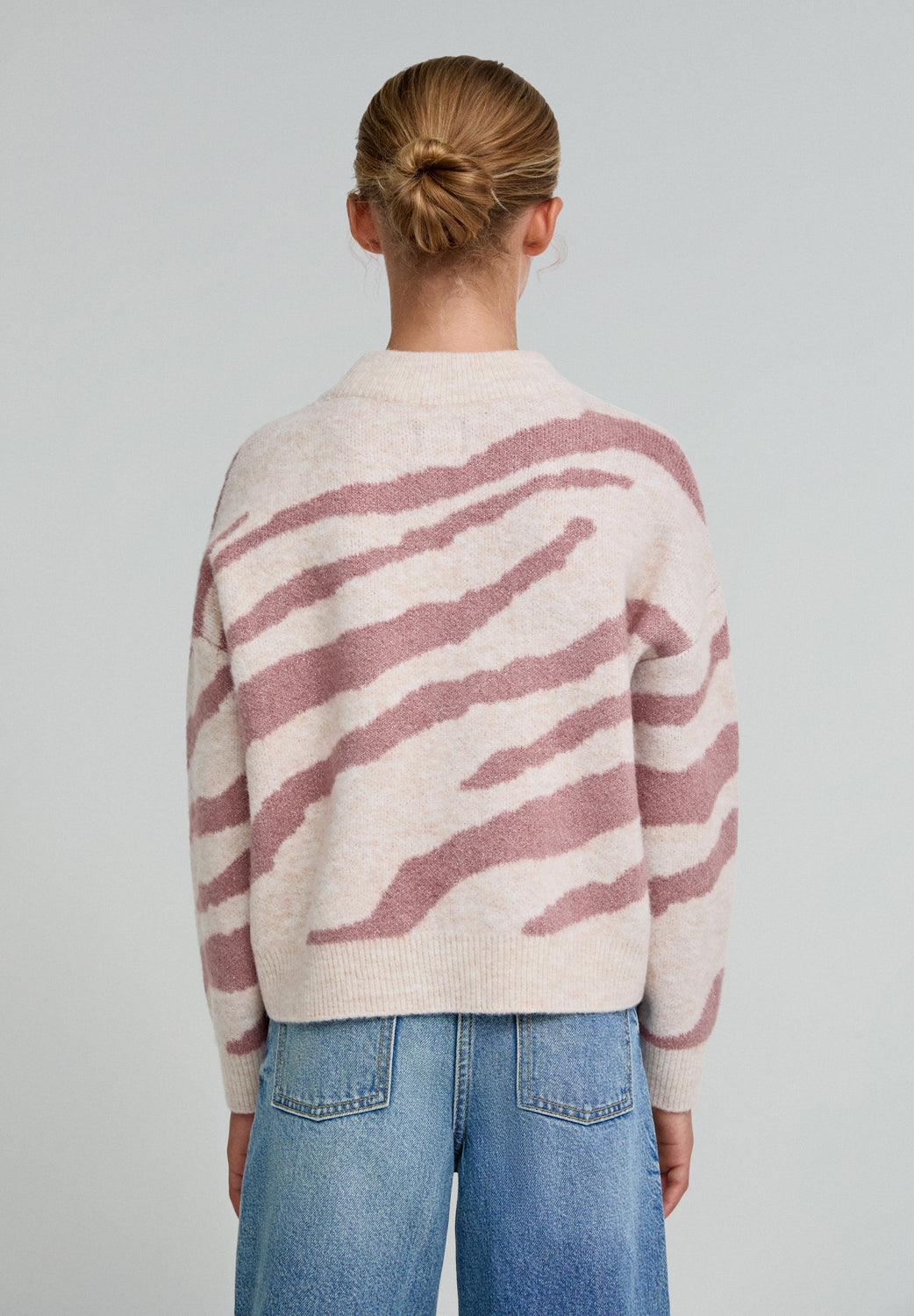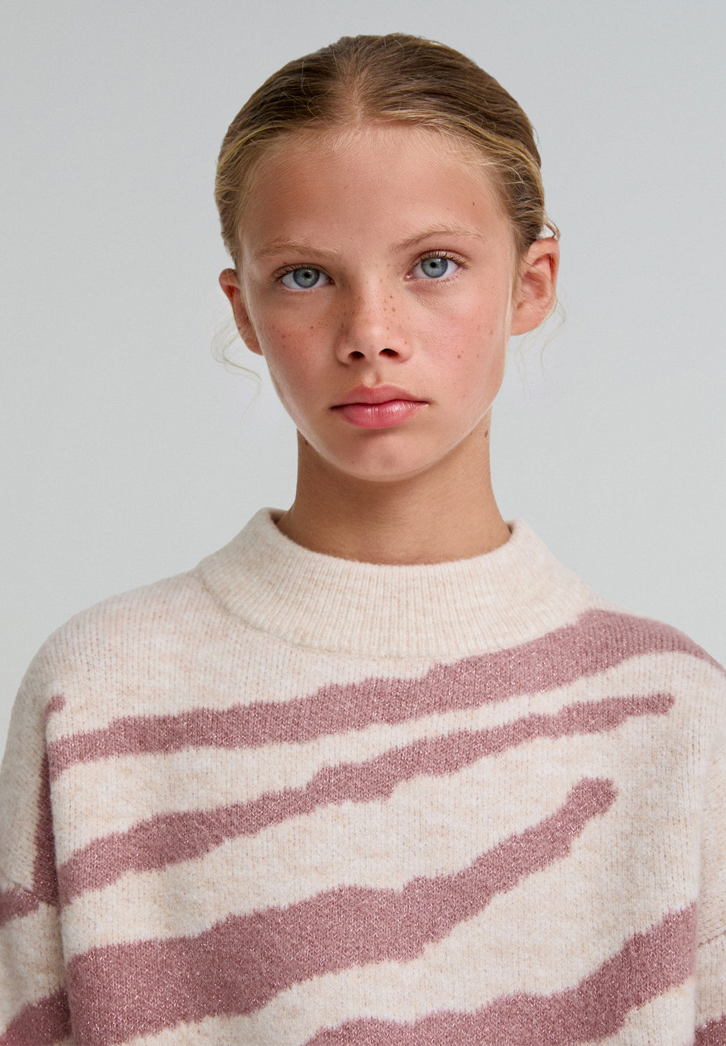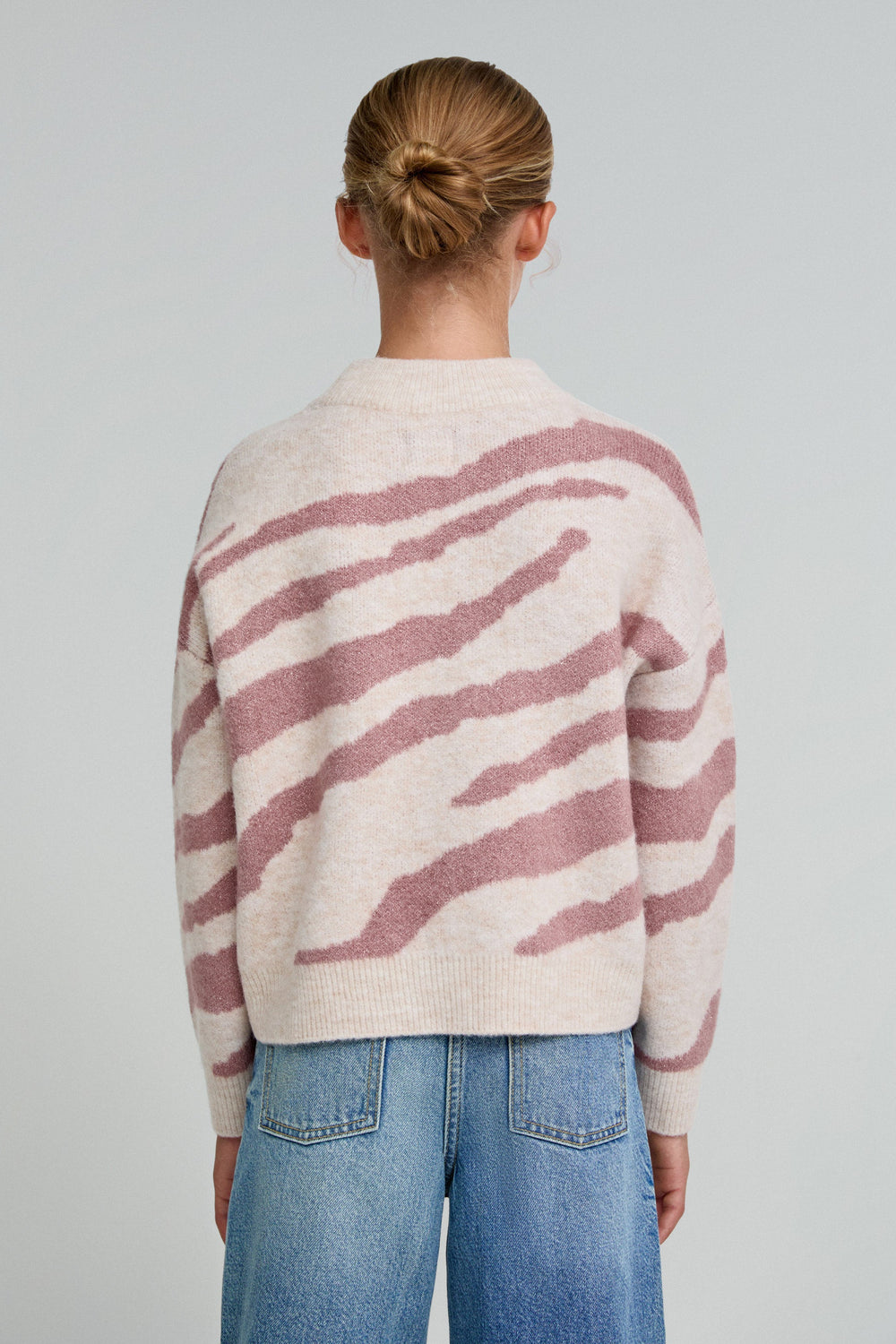 Jersey de punto estampado animal print. Regular fit, cuello redondo y manga larga.