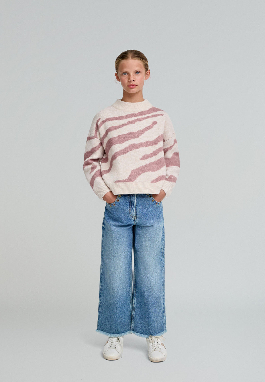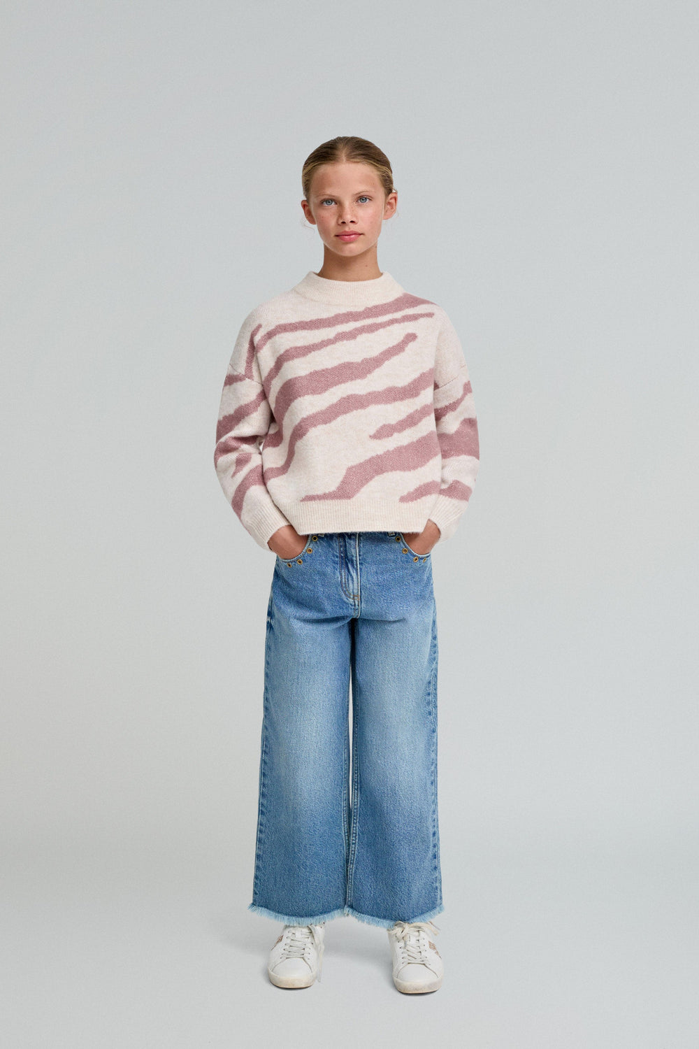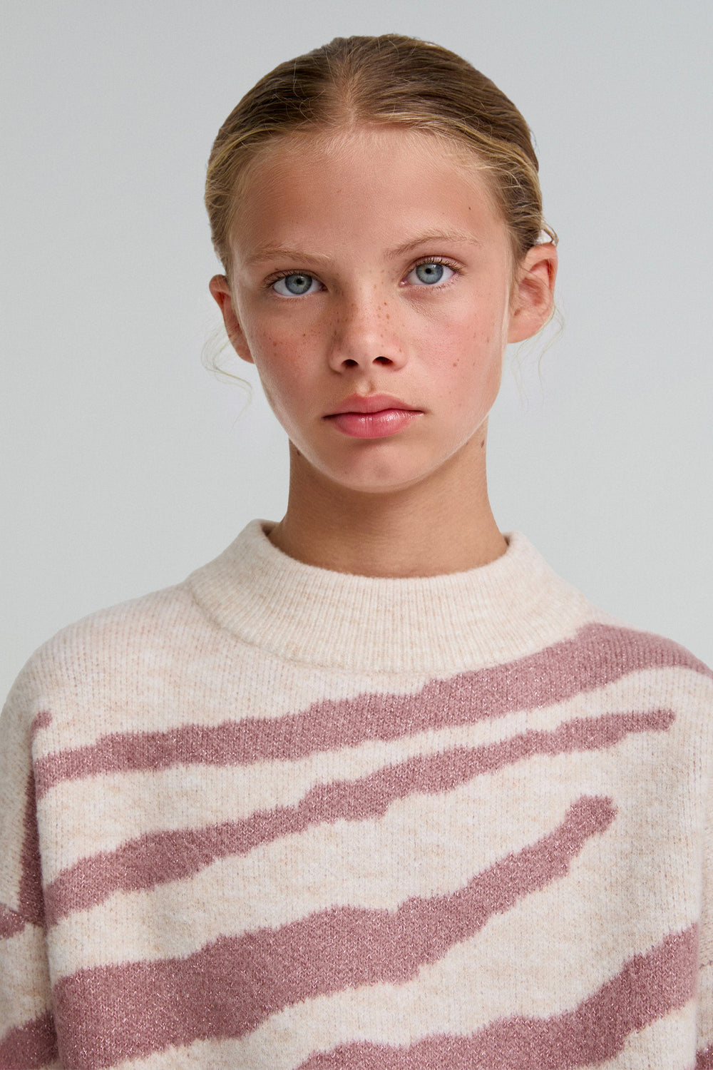 Jersey de punto estampado animal print. Regular fit, cuello redondo y manga larga.