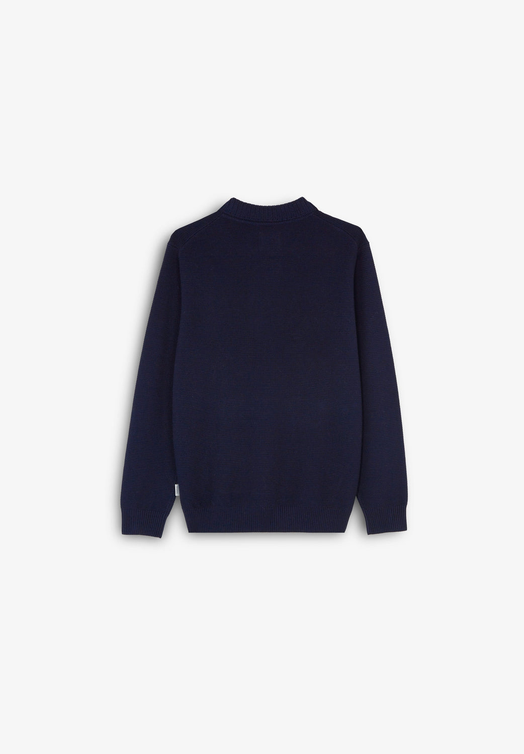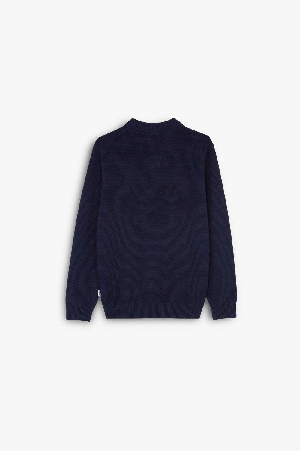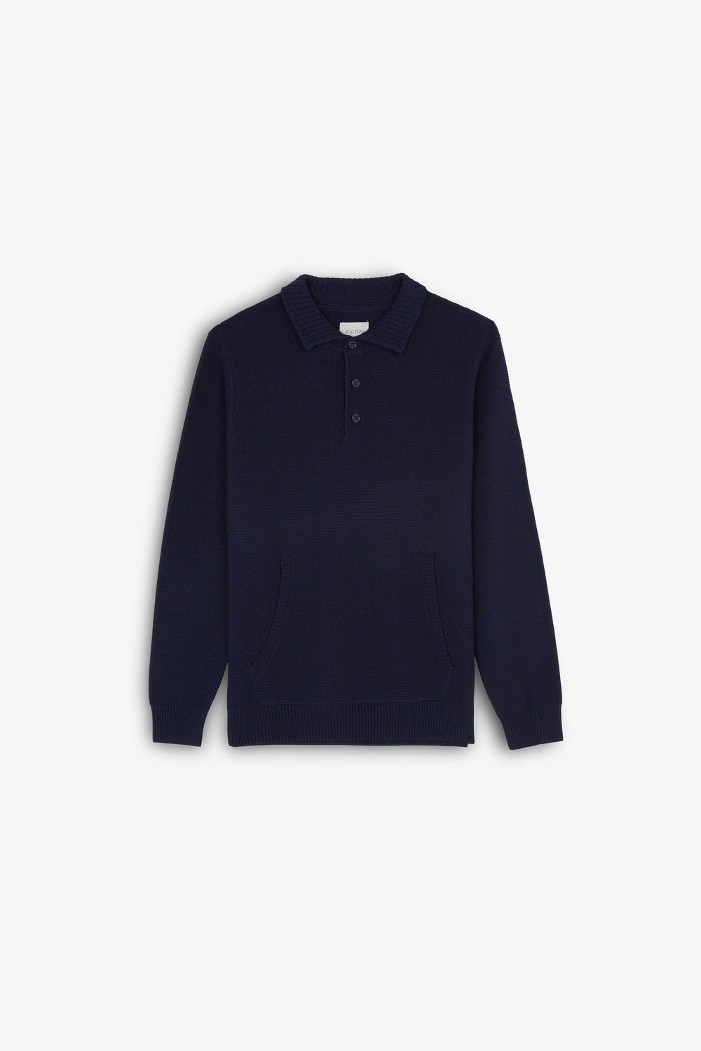 Jersey tipo polo. Regular fit, cuello clásico con botones y manga larga. Bolsillo frontal tipo canguro.
