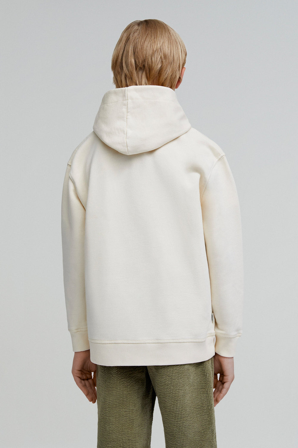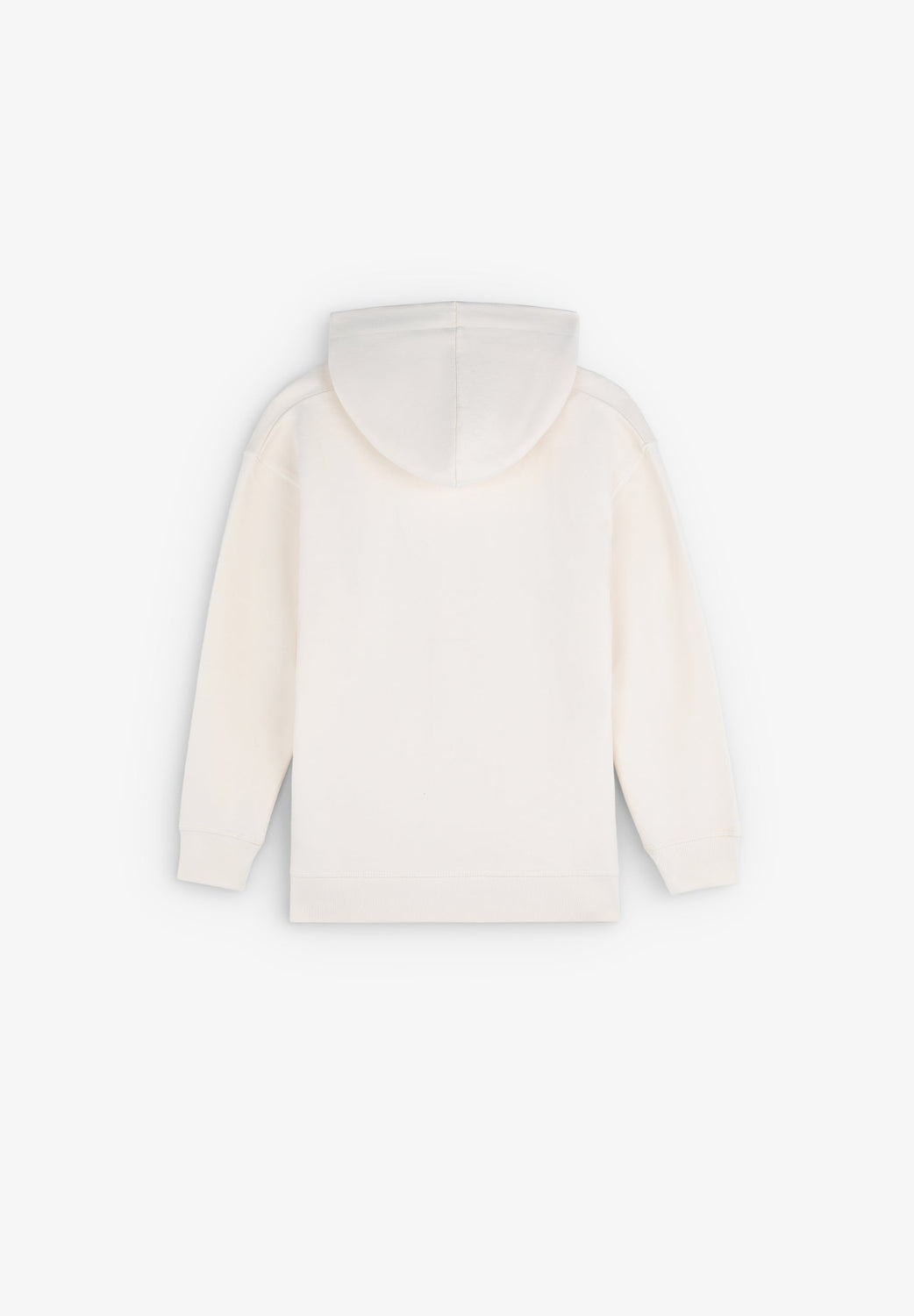 Sudadera confeccionada en 100% algodón BCI. Regular fit, cuello con capucha y manga larga. Print frontal.