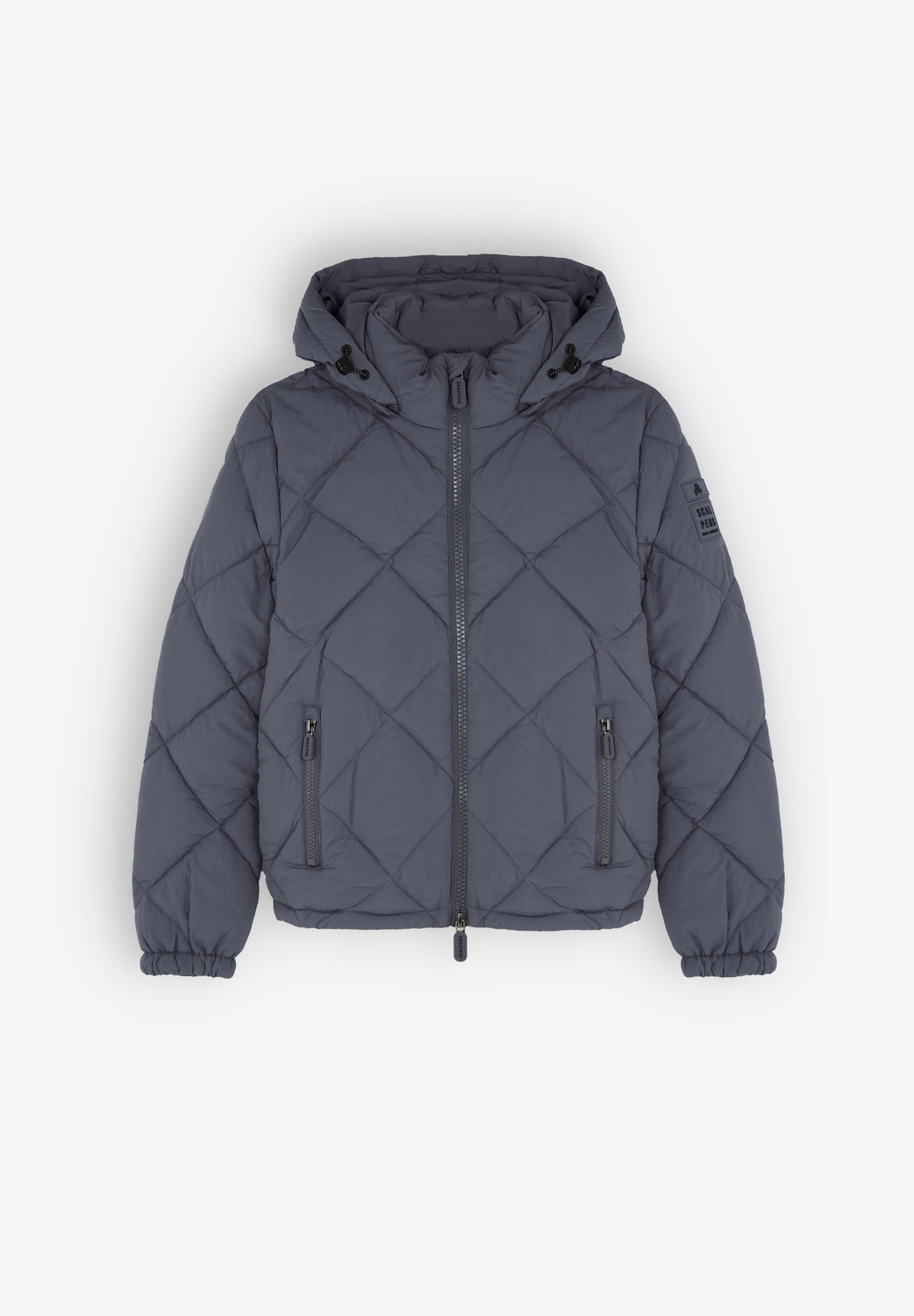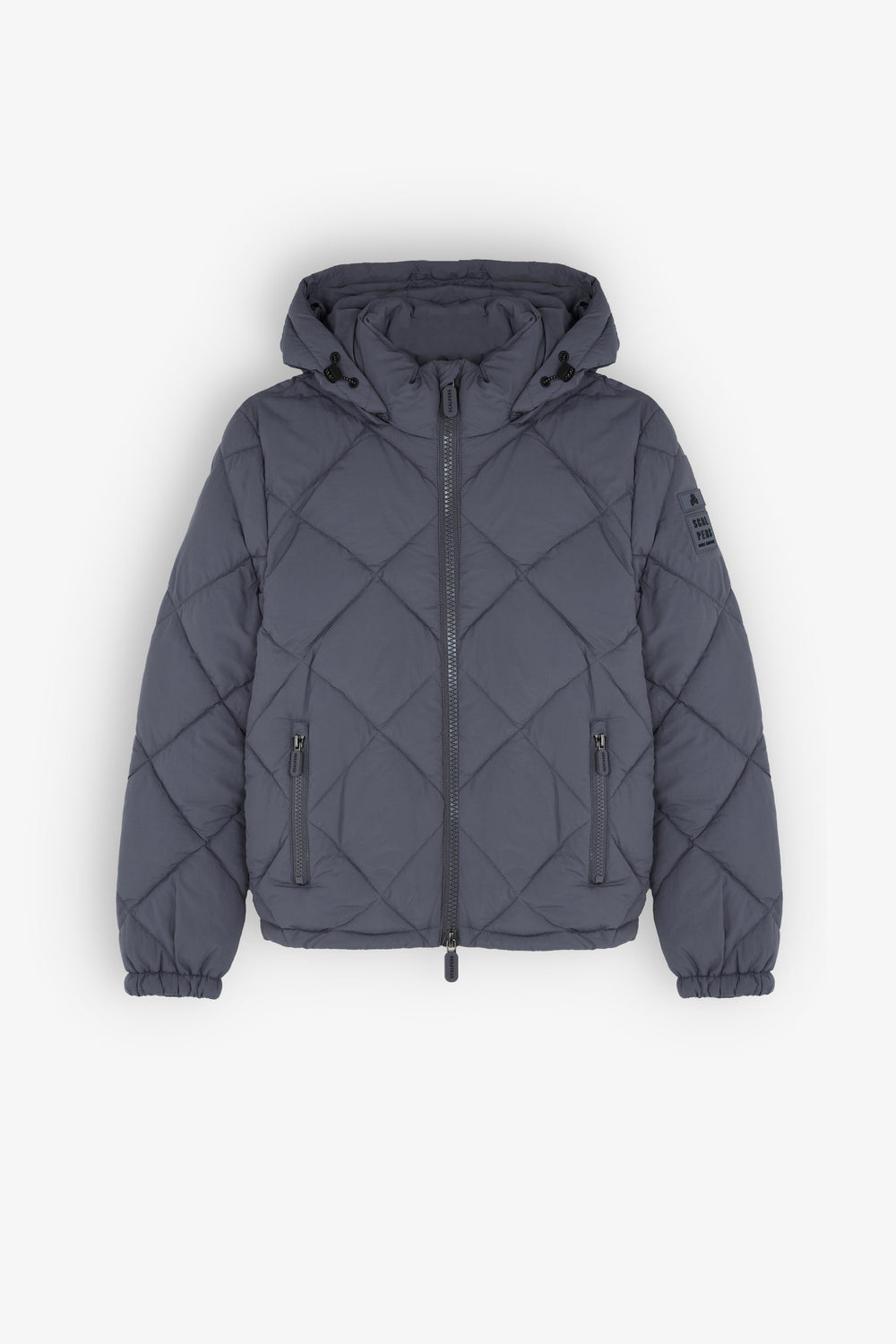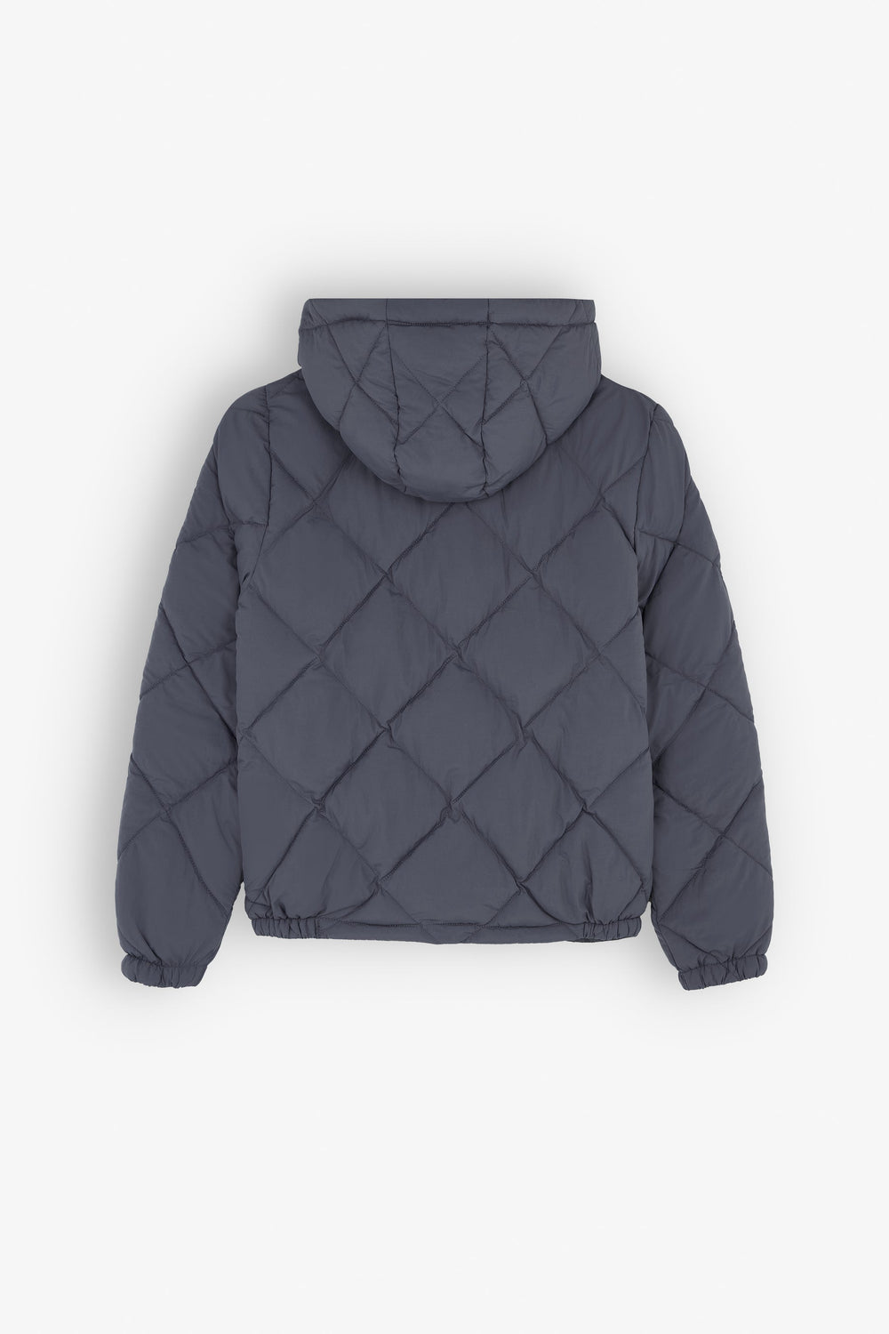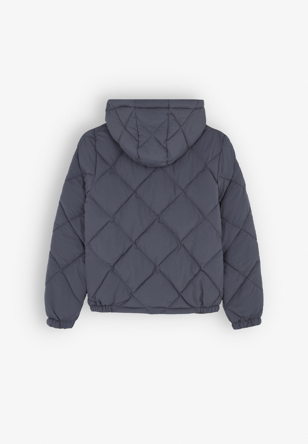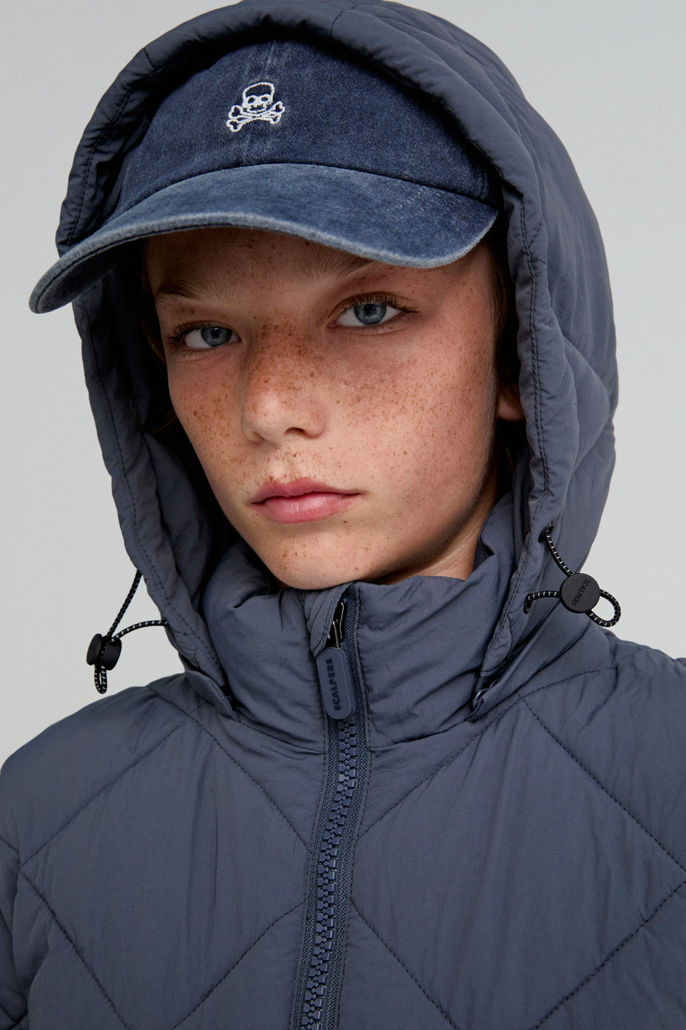 Abrigo acolchado confeccionado en tejido técnico. Regular fit, cuello subido y con capucha ajustable y desmontable y cierre con cremallera de doble carro. Manga larga terminada en puño con elástico y bolsillos con cremallera.