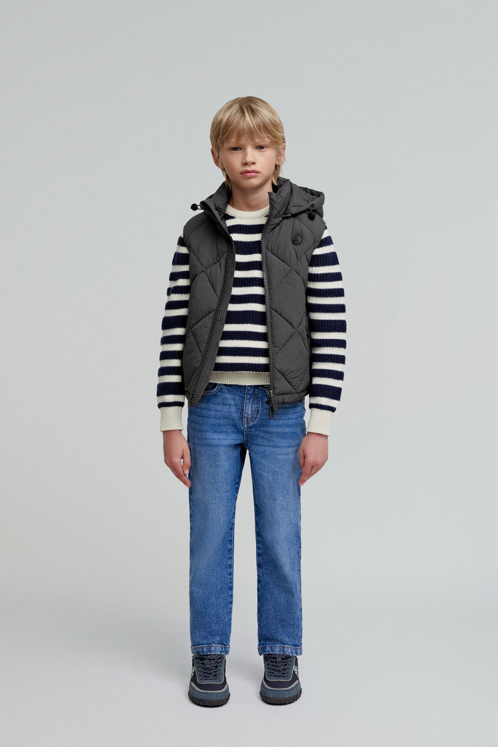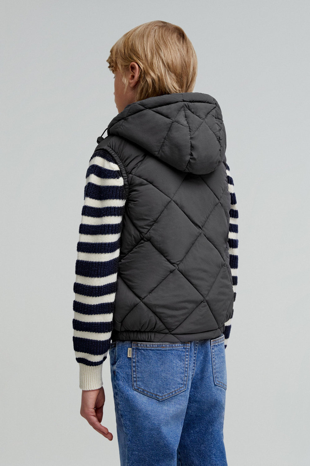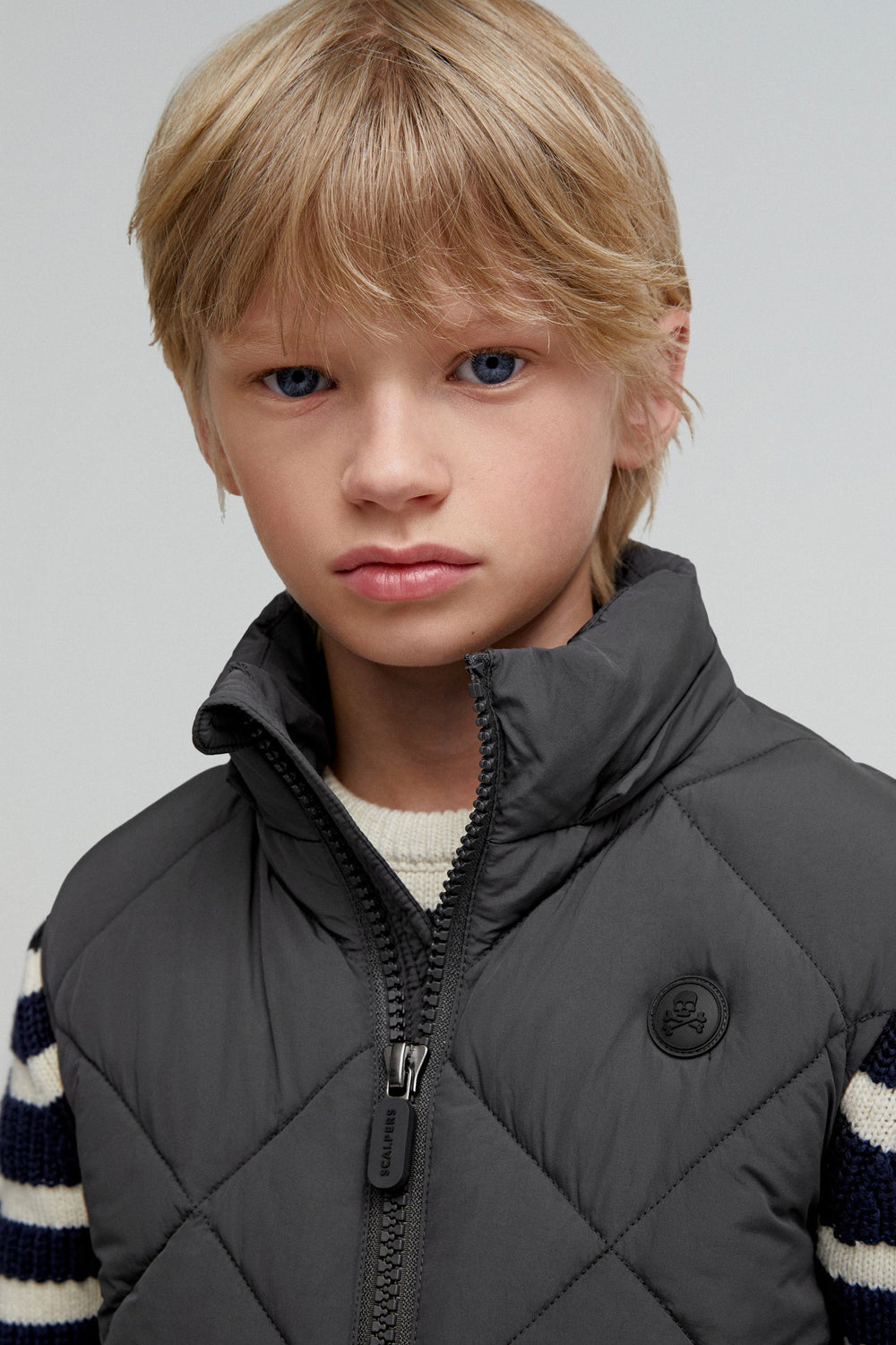 Chaleco acolchado con capucha desmontable y ajustadores. Confeccionado en tejido técnico. Corte Regular fit. Cuello subido con protector de barbilla y capucha. Cierre con cremallera de doble carro. Manga en sisa. Bolsillo laterales con cremallera y bolsillo interior. Detalle de parche de goma en el pecho a tono.