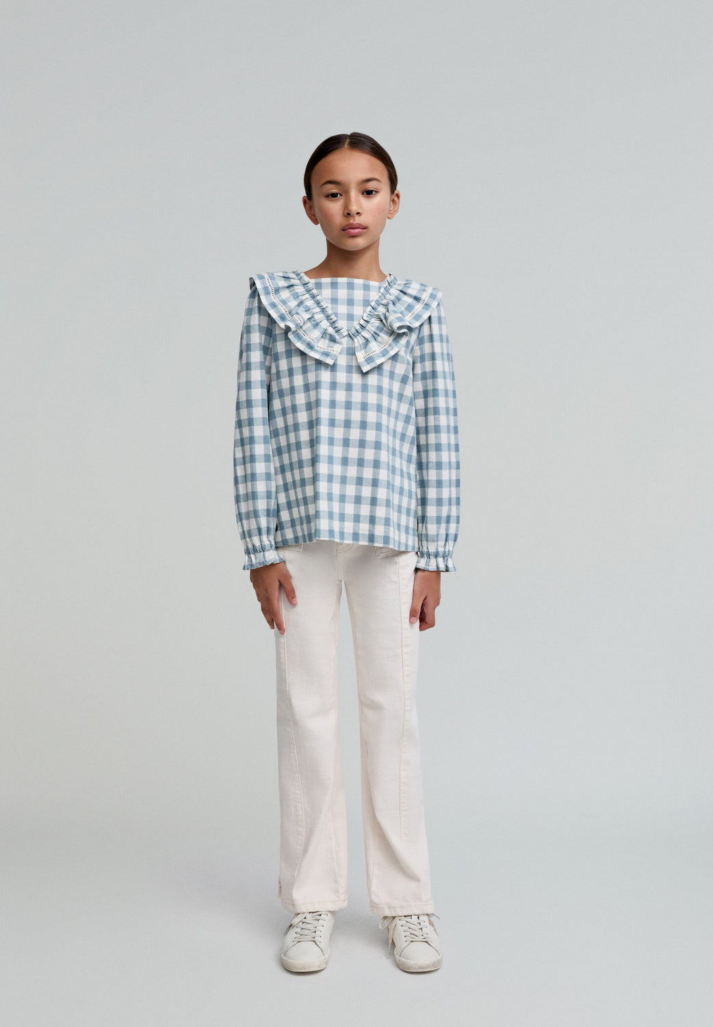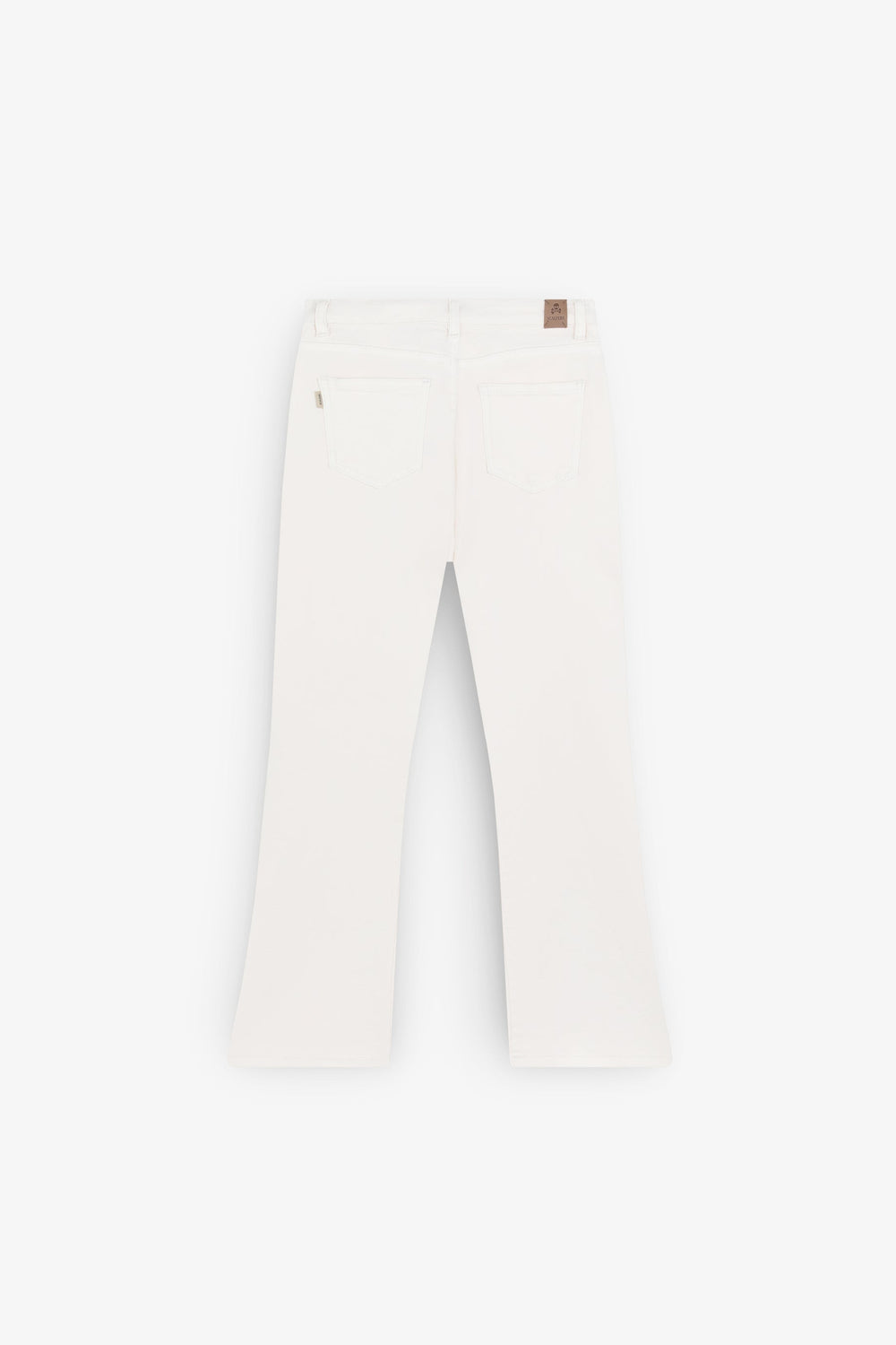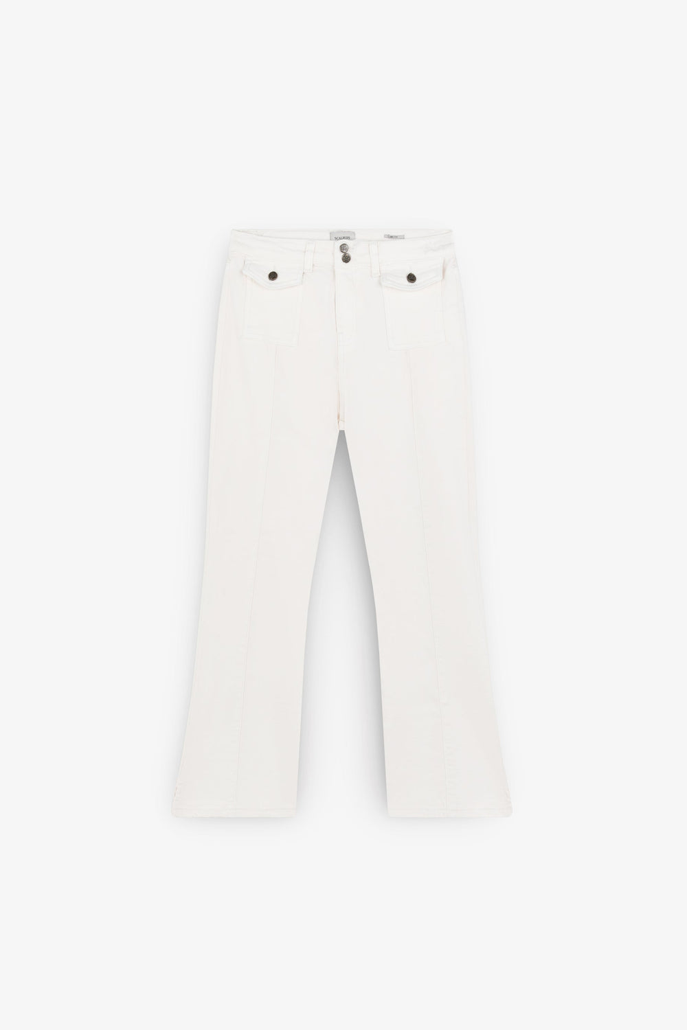 Pantalón confeccionado en tejido ligeramente elástico. Regular fit, cierre con botones y cremallera y bolsillos frontales con botones y traseros. Trabillas en cintura y costuras frontales.