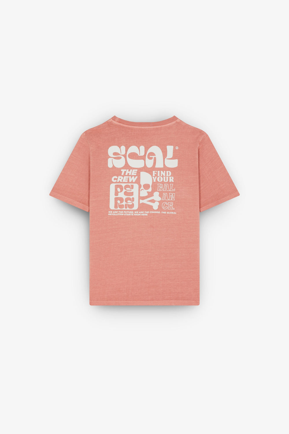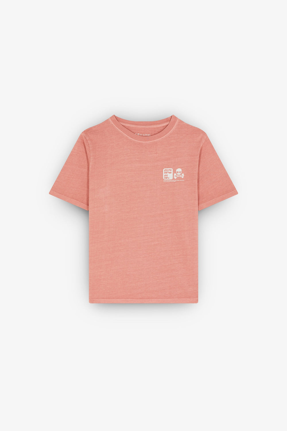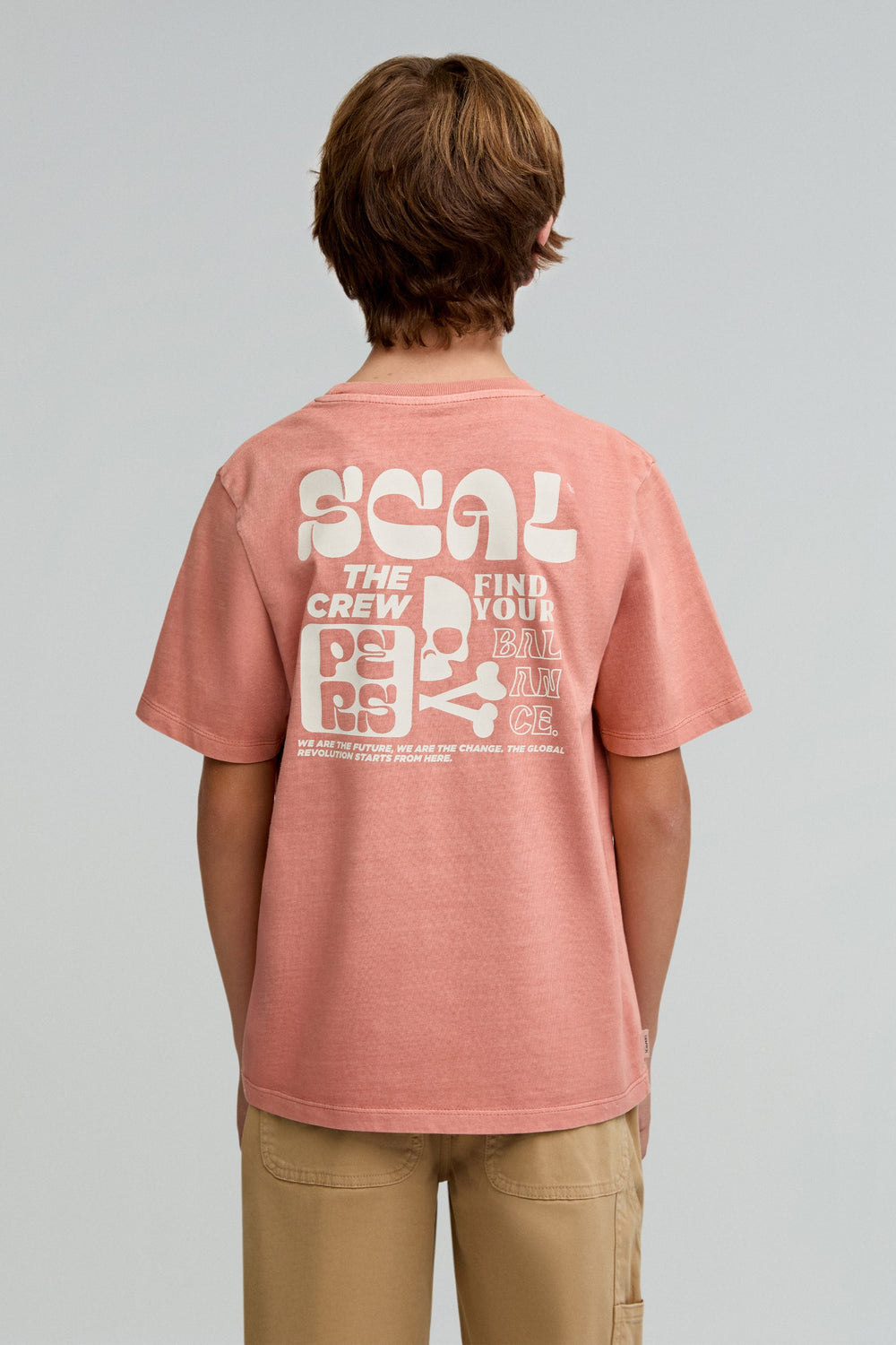 Camiseta confeccionada en 100% algodón BCI. Regular fit, cuello redondo y manga corta. Print en pecho y trasero a contraste.