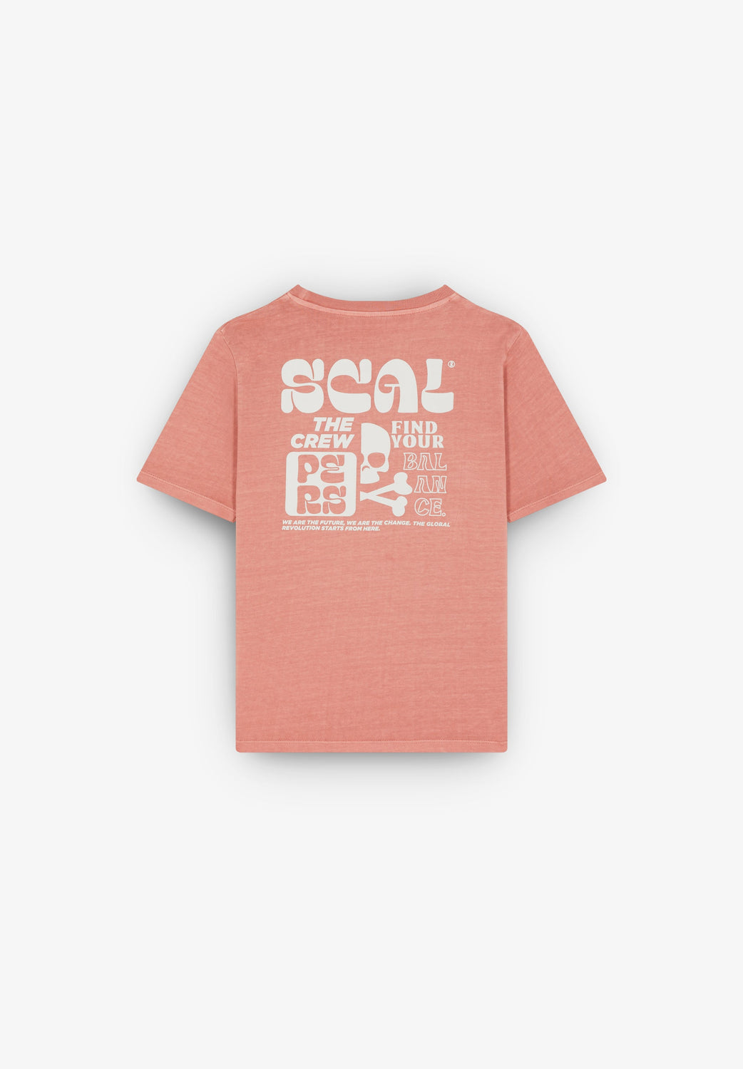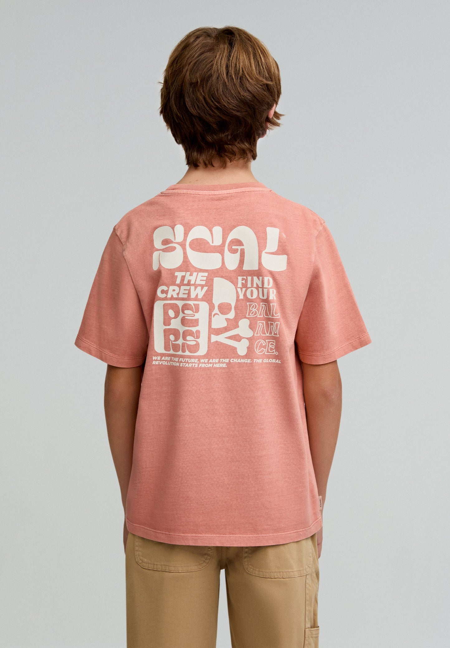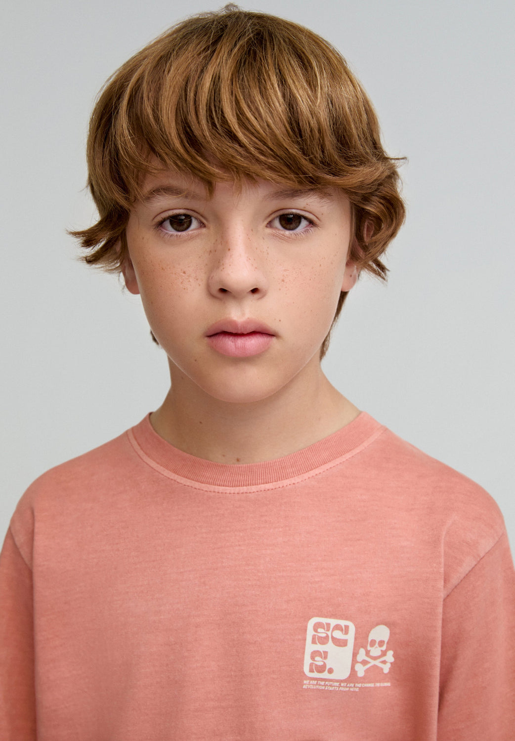 Camiseta confeccionada en 100% algodón BCI. Regular fit, cuello redondo y manga corta. Print en pecho y trasero a contraste.