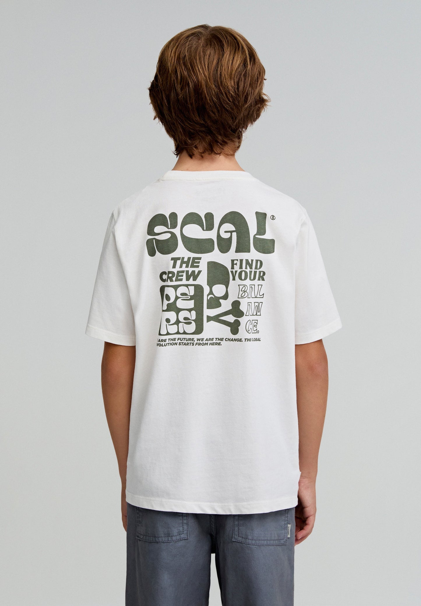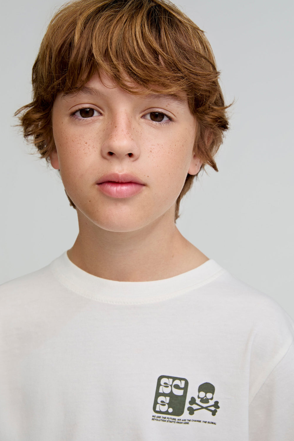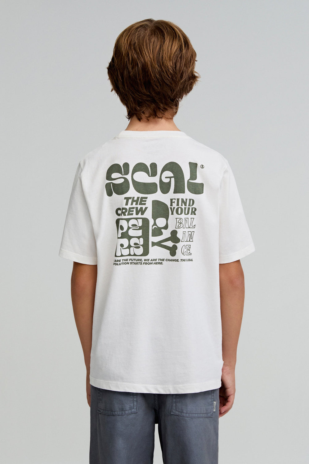 Camiseta confeccionada en 100% algodón BCI. Regular fit, cuello redondo y manga corta. Print en pecho y trasero a contraste.
