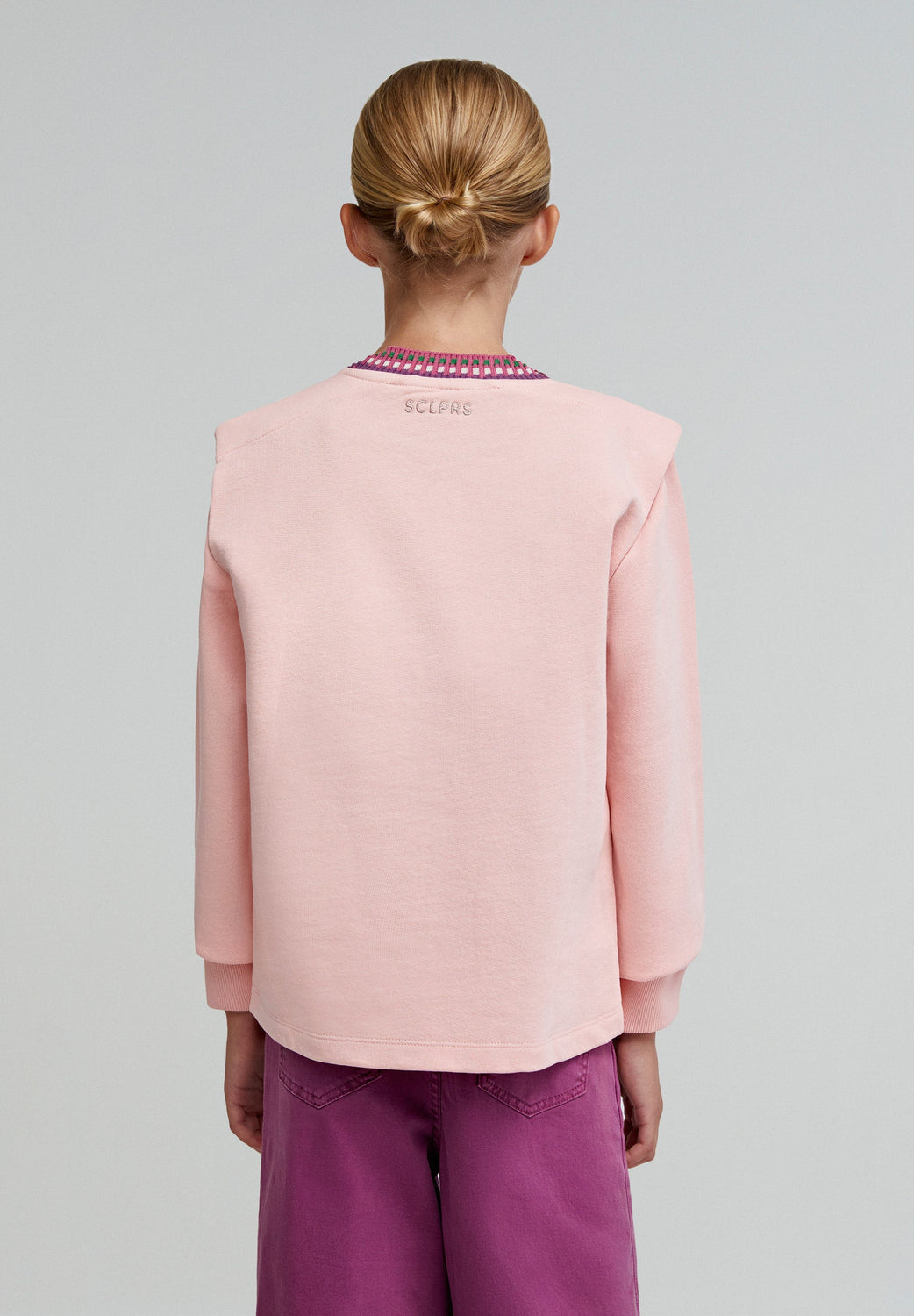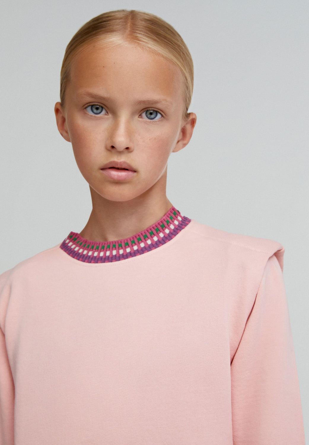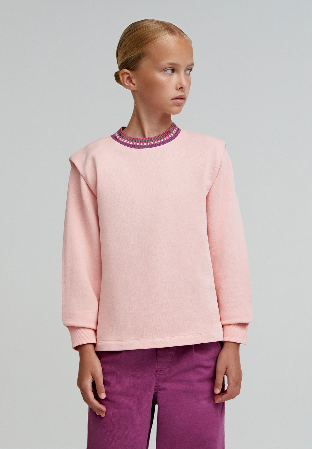 Sudadera confeccionada en 100% algodón BCI. Regular fit, cuello redondo con detalle de bordado y manga larga. Pliegue en hombro.