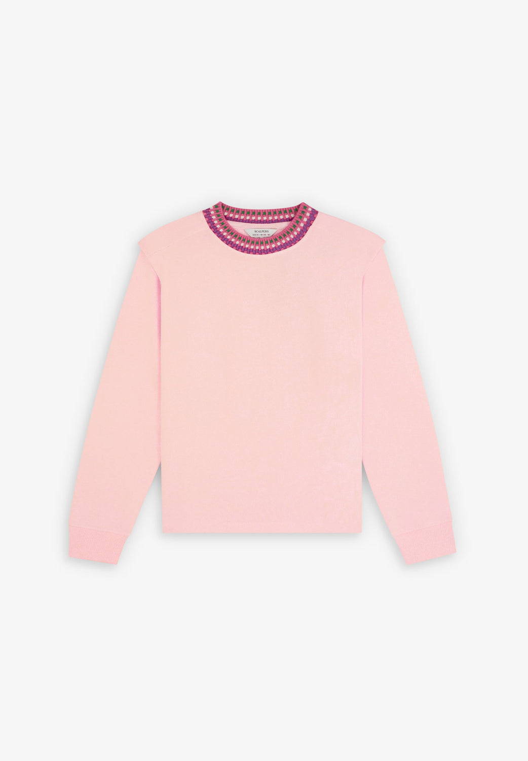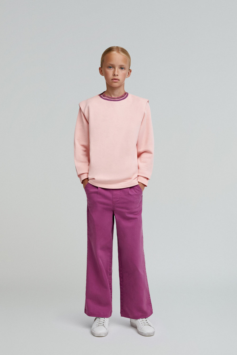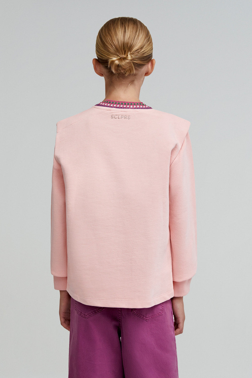 Sudadera confeccionada en 100% algodón BCI. Regular fit, cuello redondo con detalle de bordado y manga larga. Pliegue en hombro.