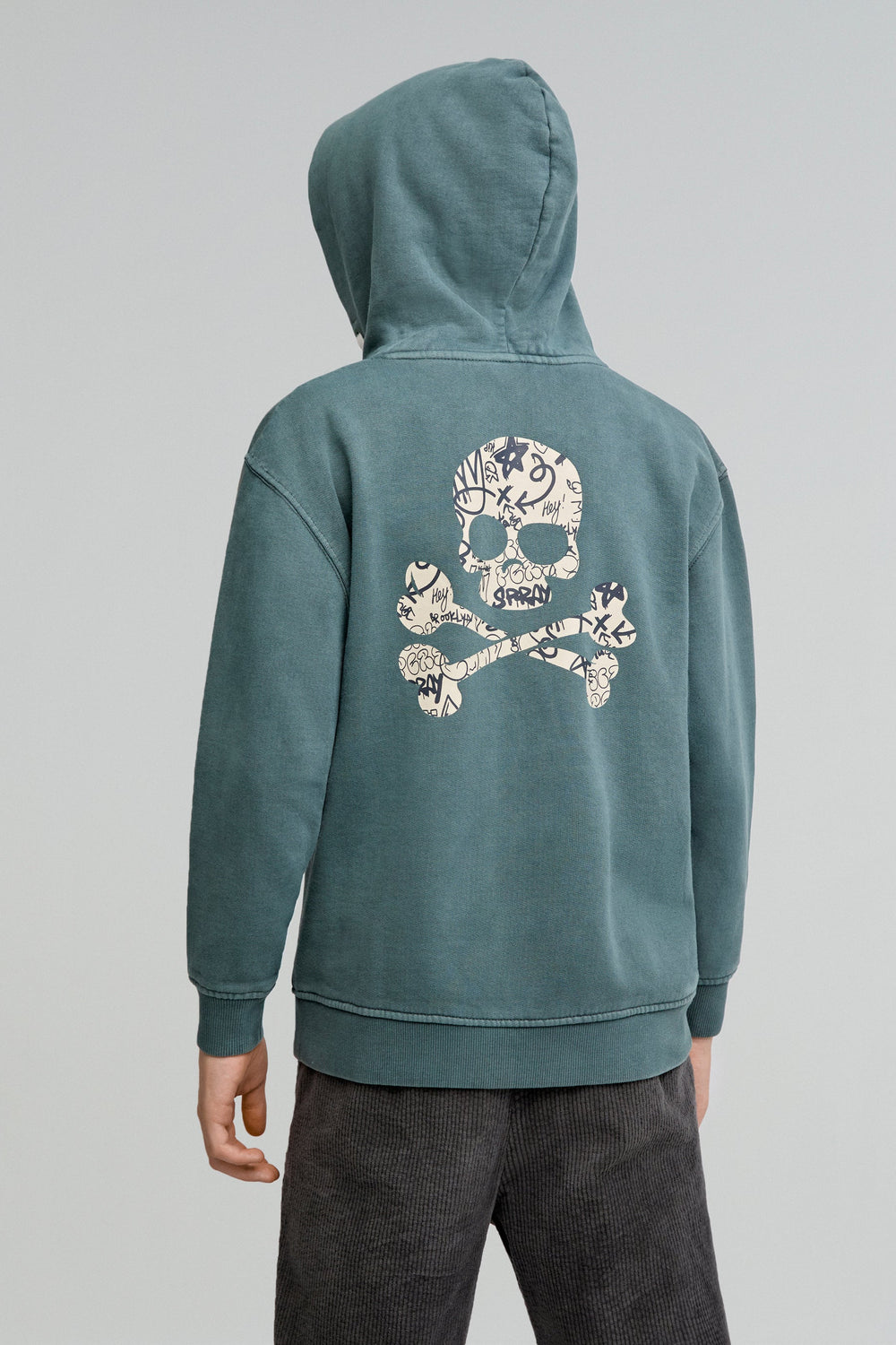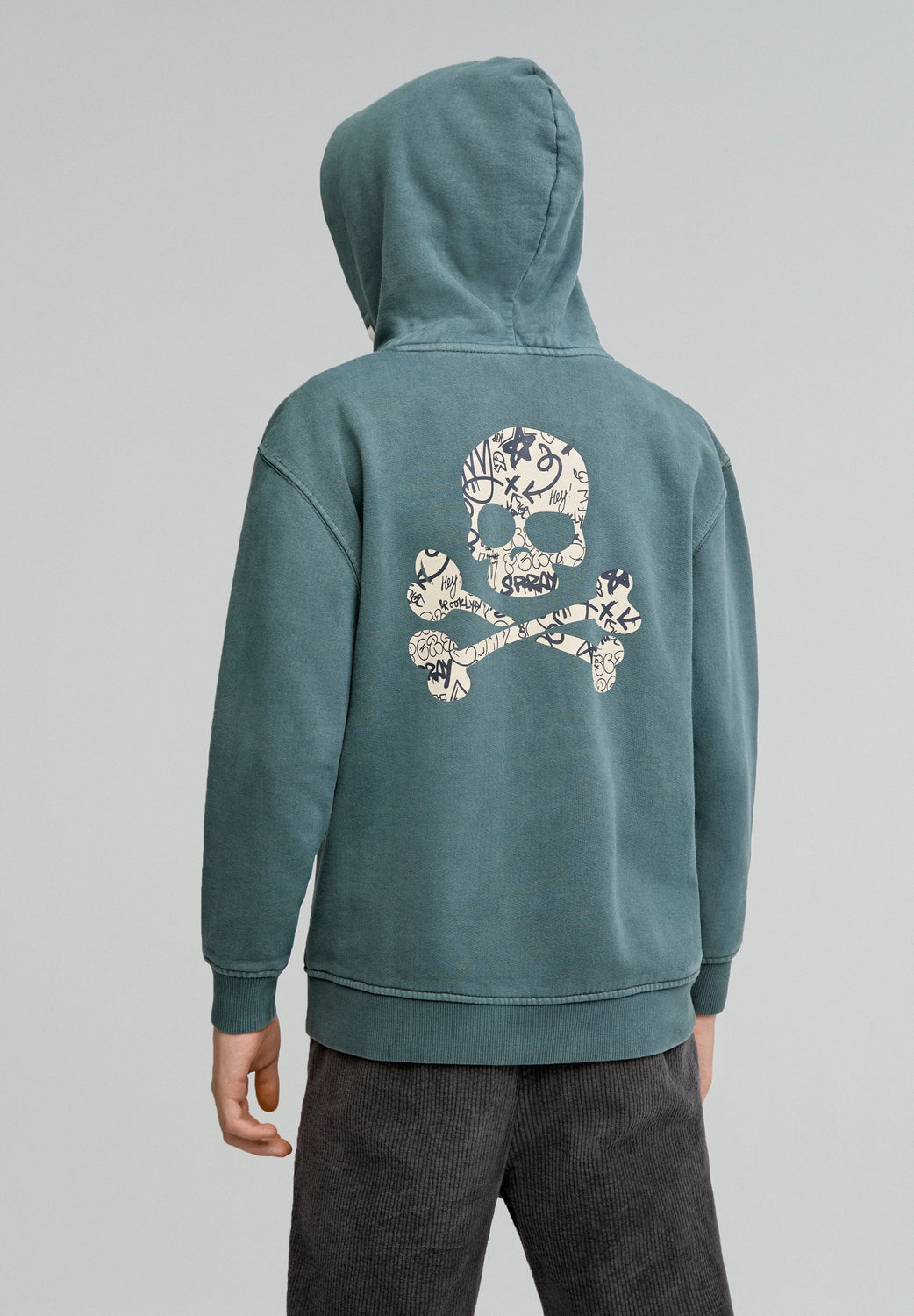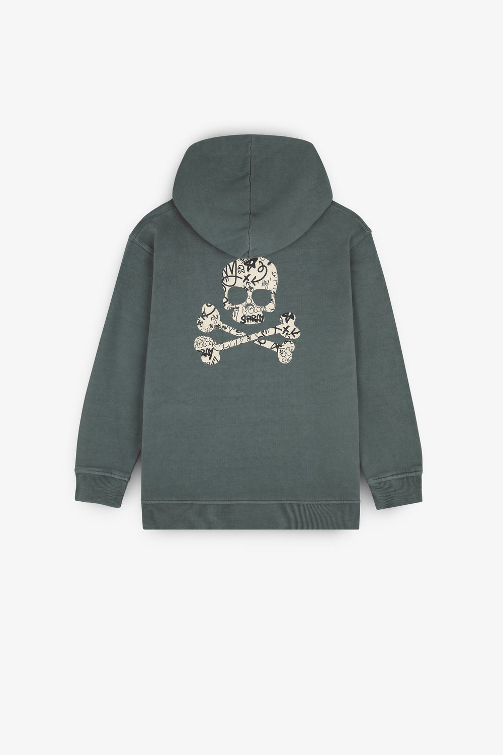 Sudadera con calavera trasera con print de grafiti confeccionada en 100% algodón BCI. Regular fit, cuello con capucha y manga larga. Bolsillo frontal tipo canguro.