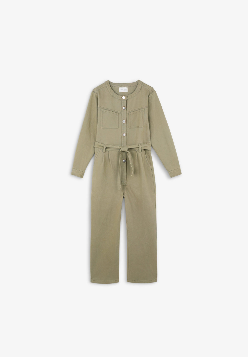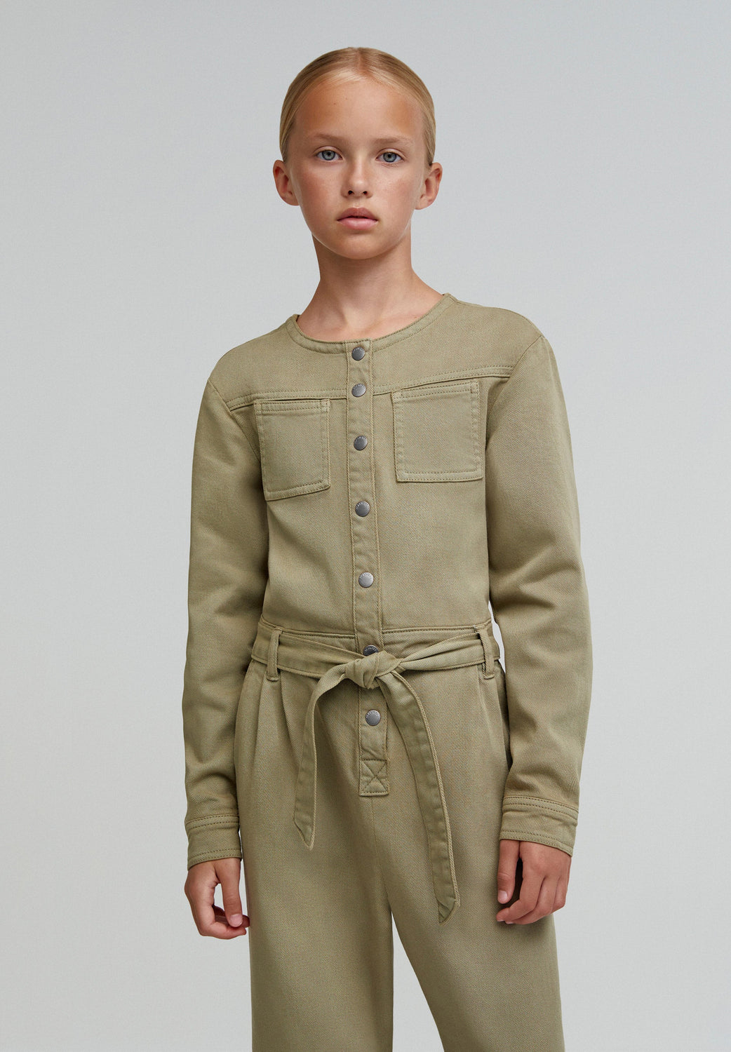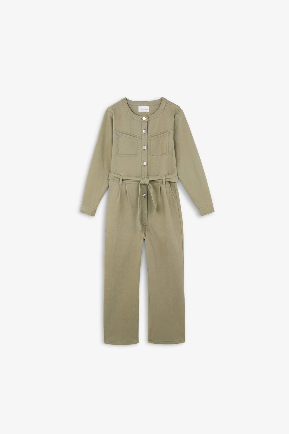 Mono confeccionado en algodón ligeramente elástico. Regular fit con corte full length, cuello redondo y cierre con snaps y lazada. Manga larga y bolsillos.