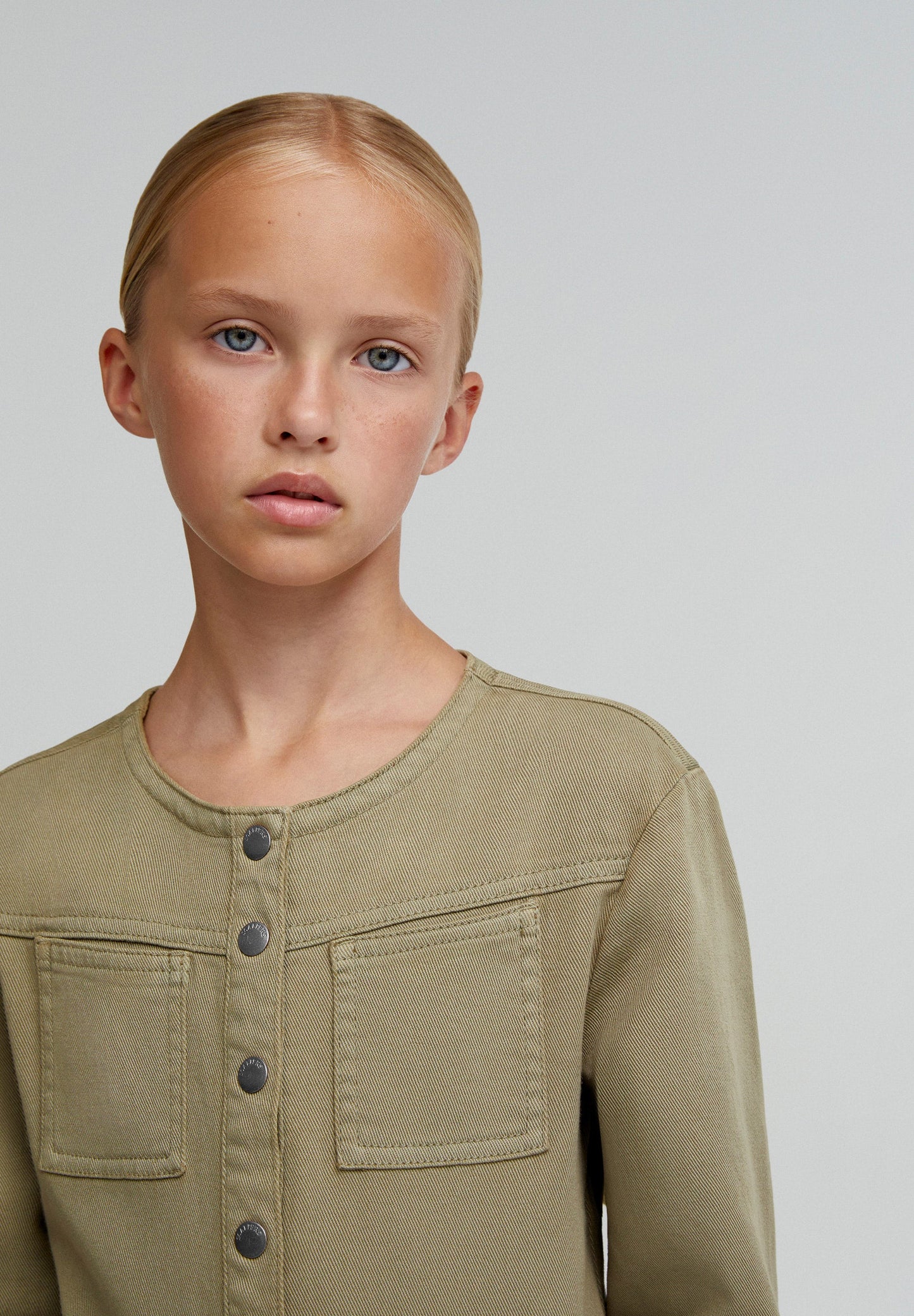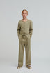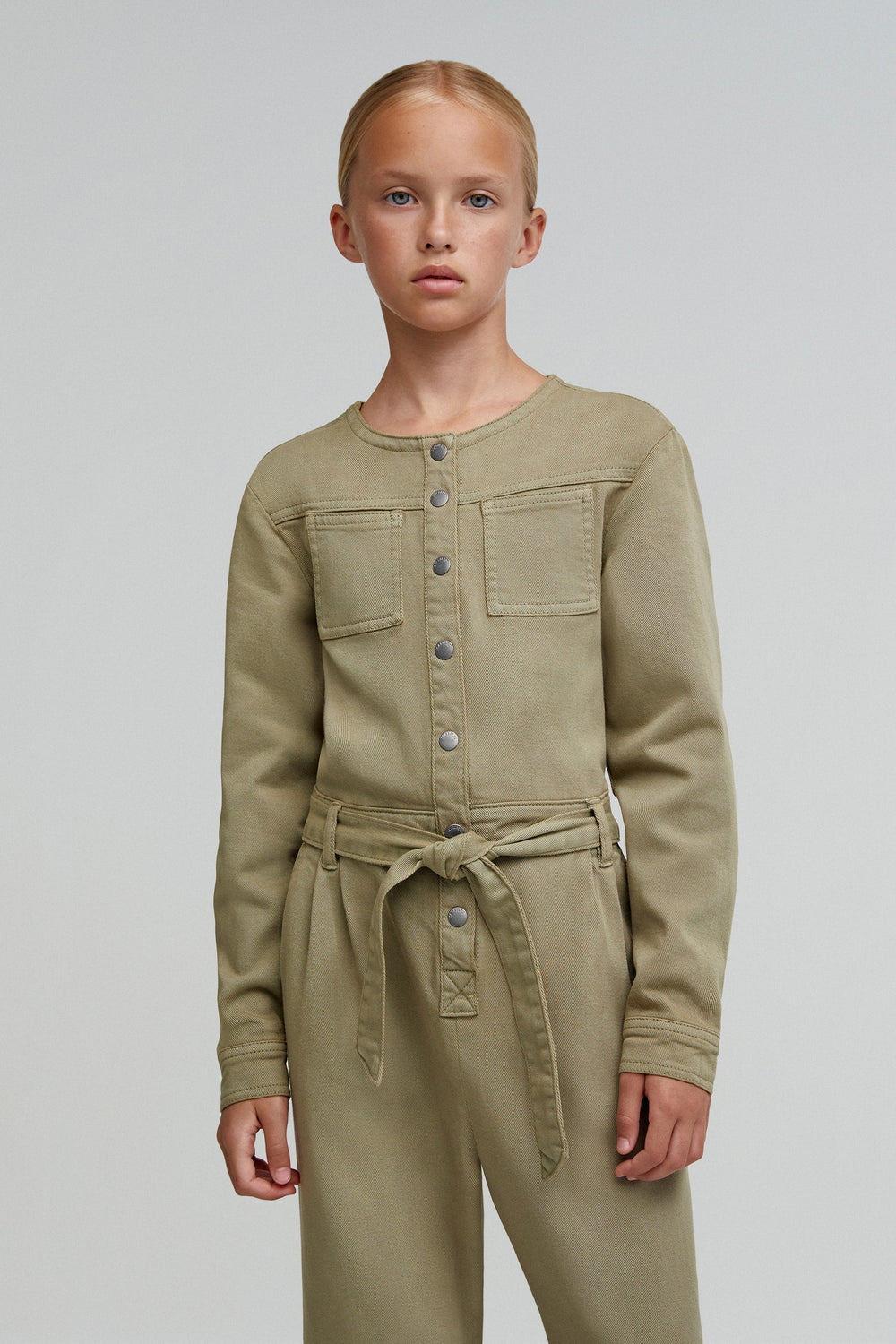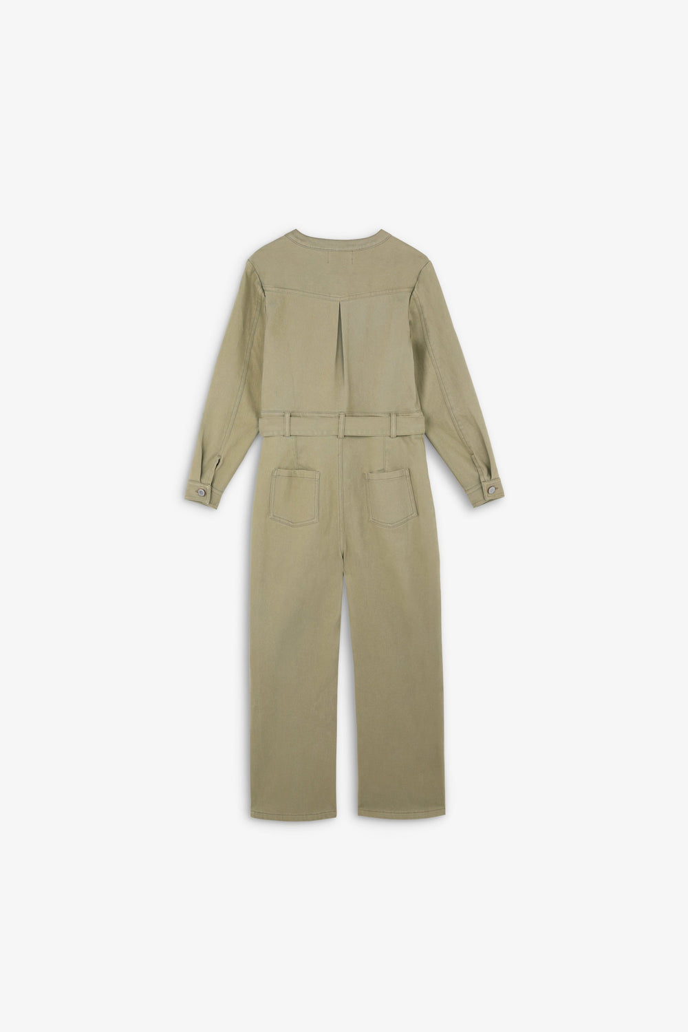 Mono confeccionado en algodón ligeramente elástico. Regular fit con corte full length, cuello redondo y cierre con snaps y lazada. Manga larga y bolsillos.