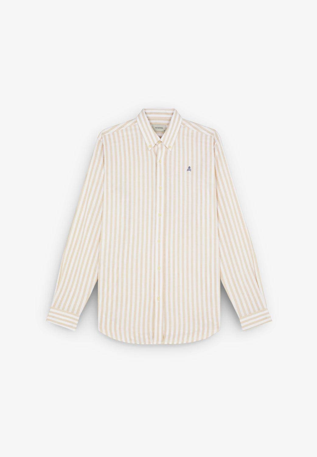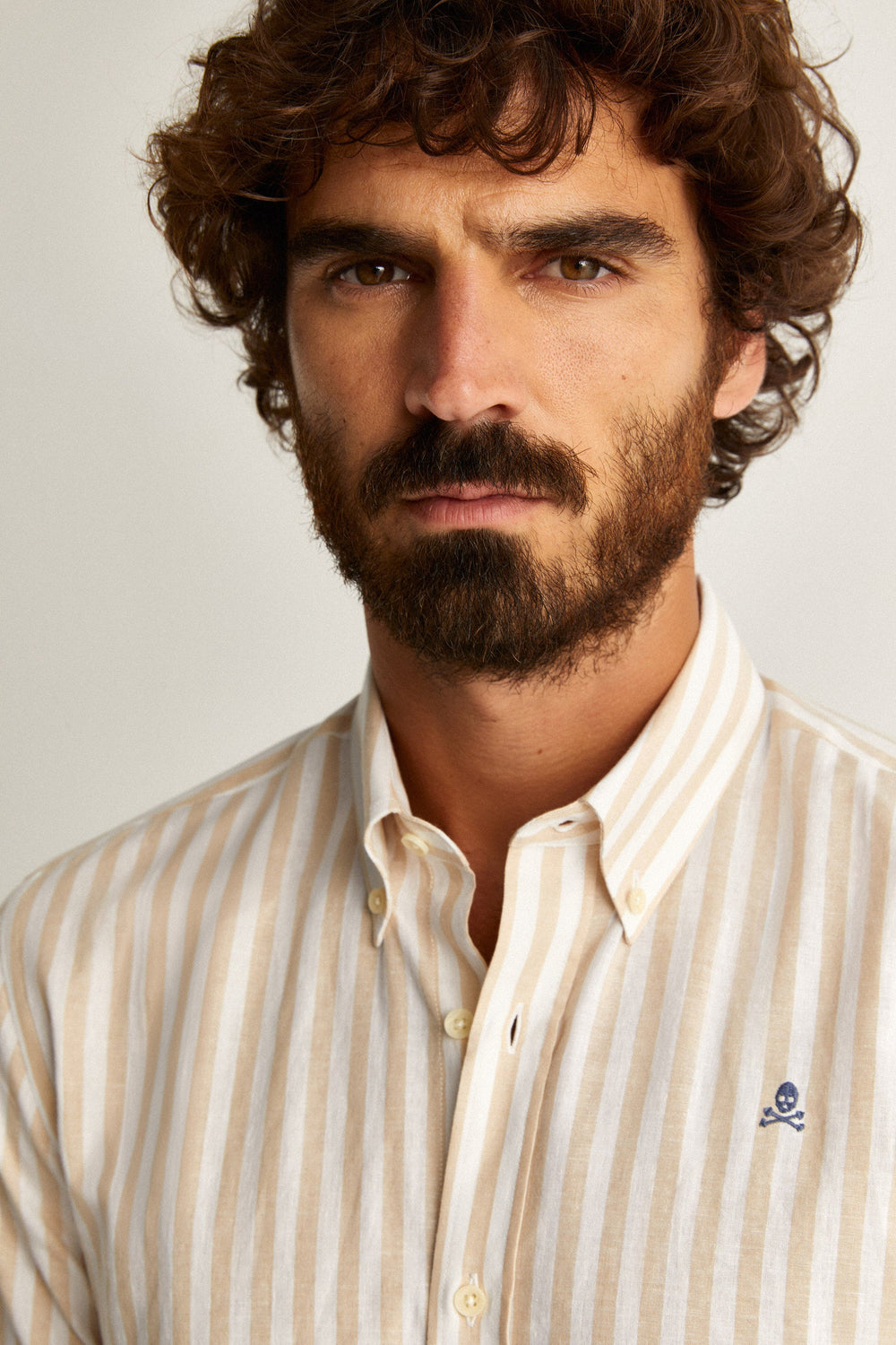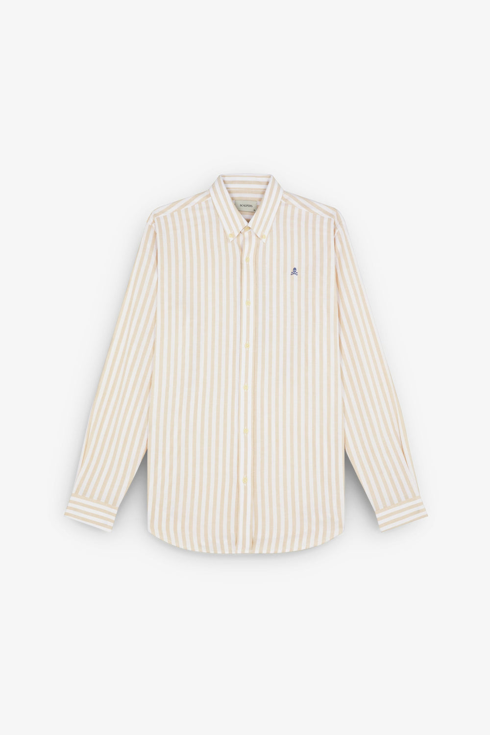 Camisa de rayas con calavera bordada a contraste en pecho.