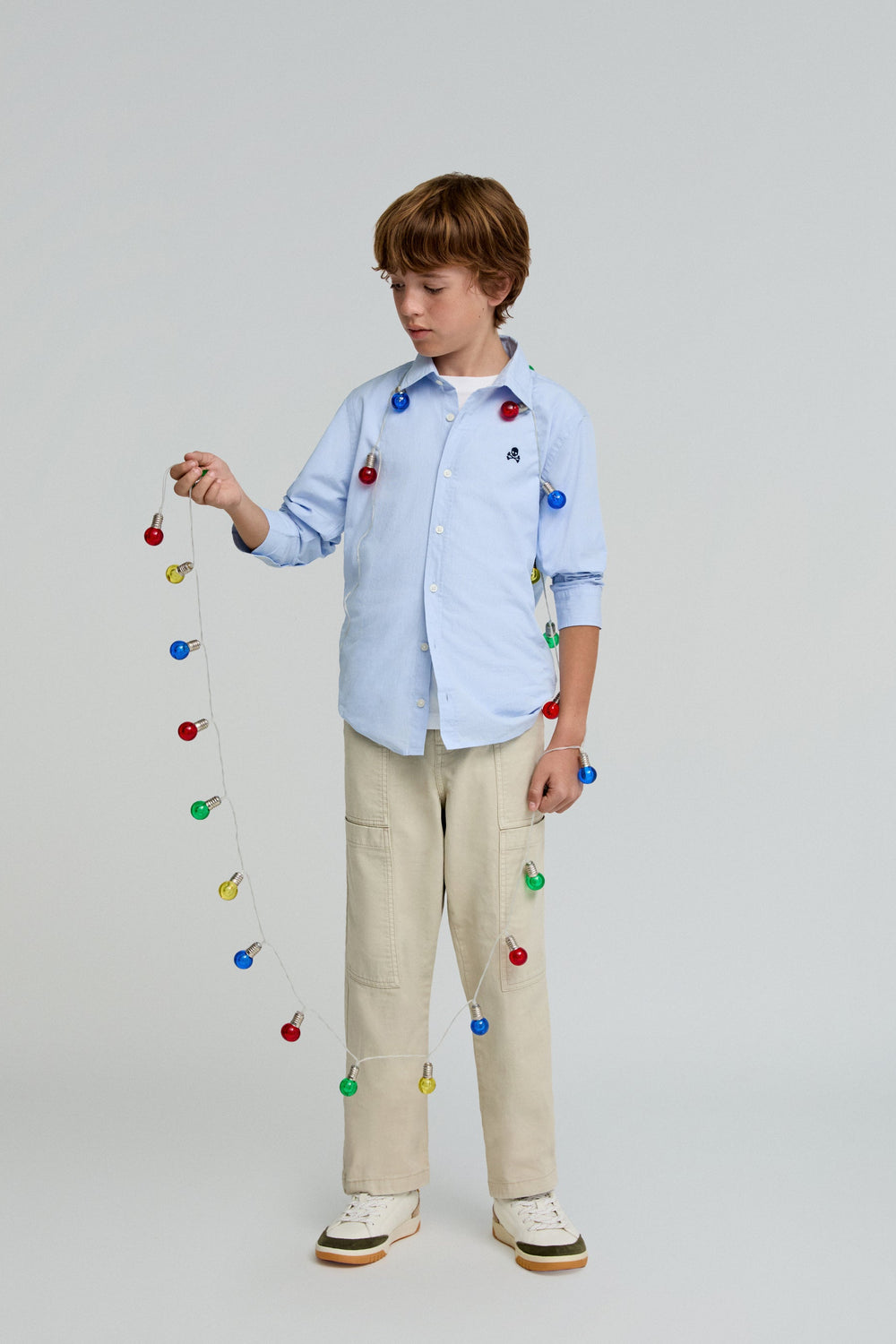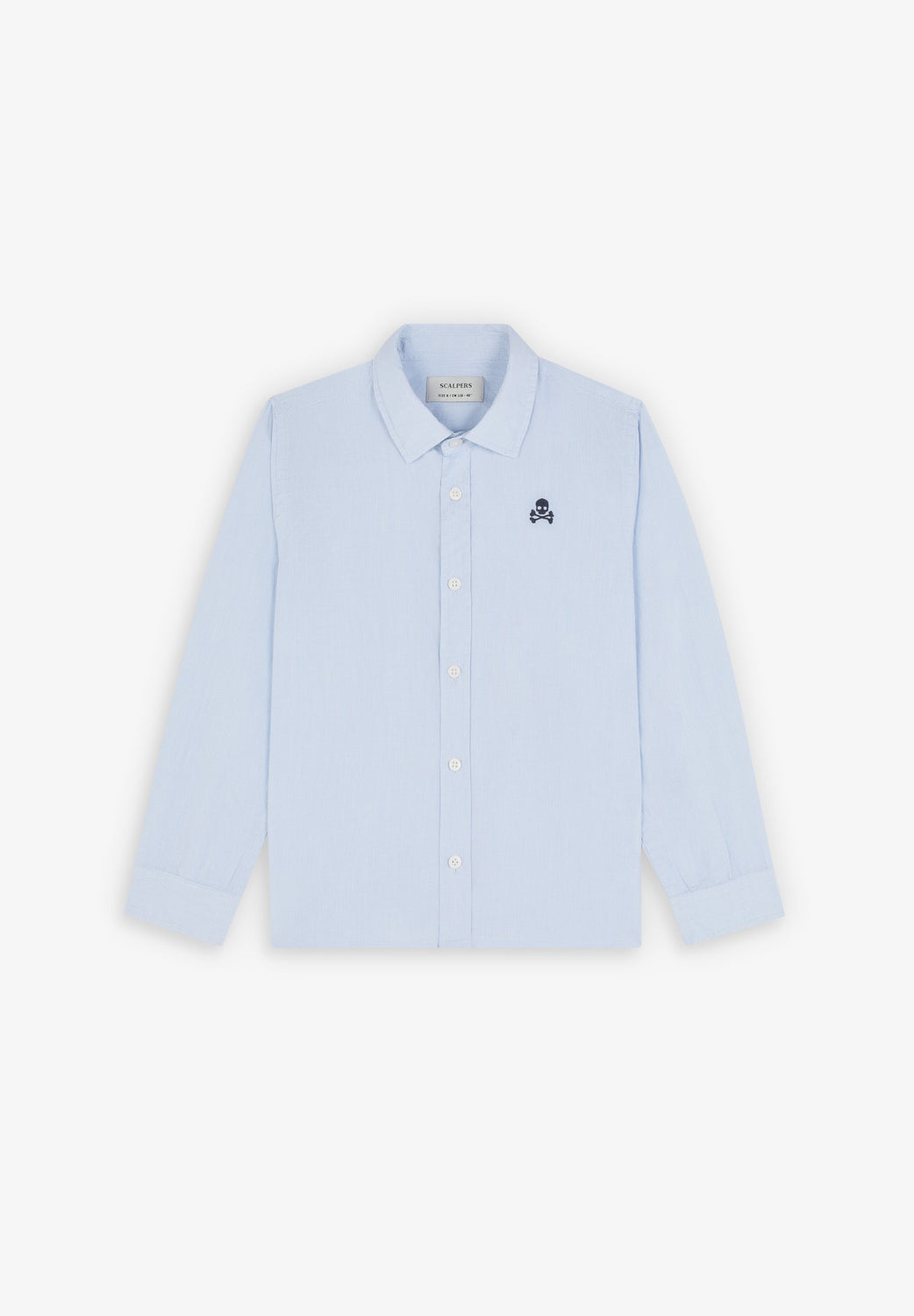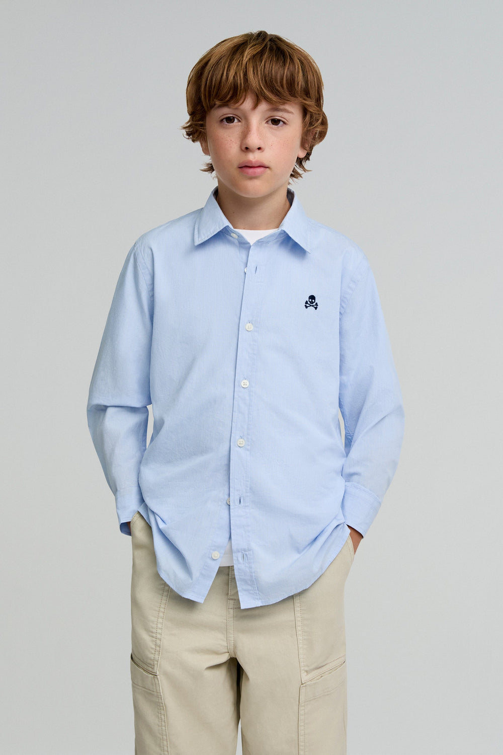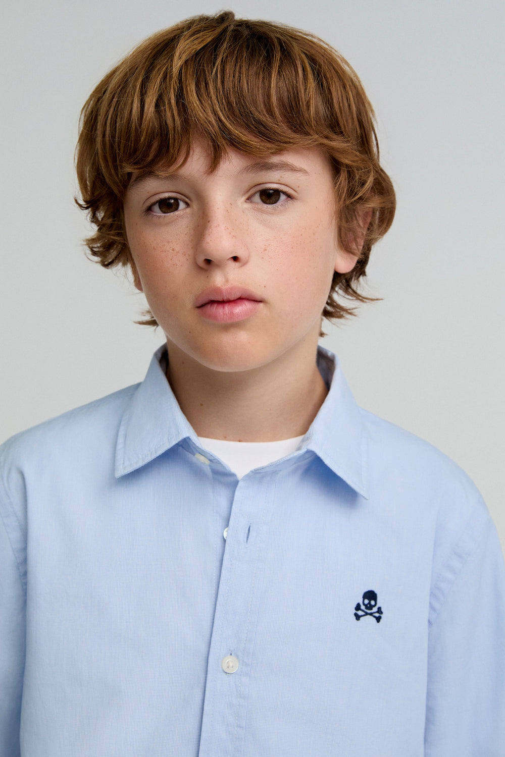 Camisa de cuadros confeccionada en 100% algodón BCI. Regular fit, cuello clásico y cierre con botones. Manga larga terminada en puño con botones y calavera bordada a contraste.