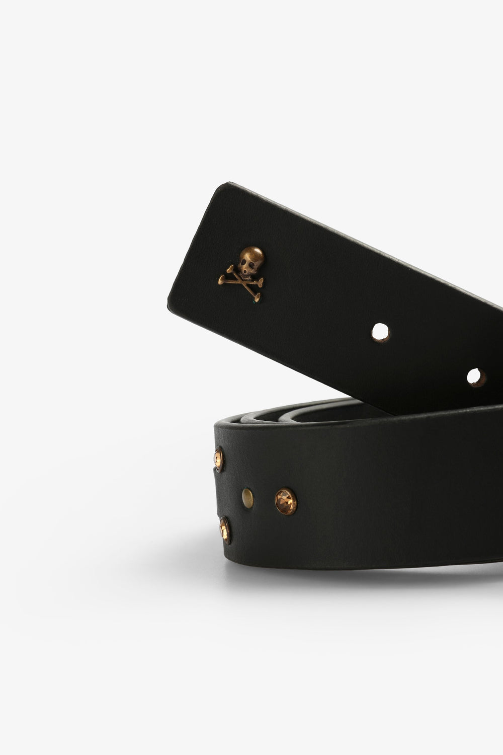 Cinturón con tachas tipo joya confeccionado en 100% piel. Hebilla metálica.