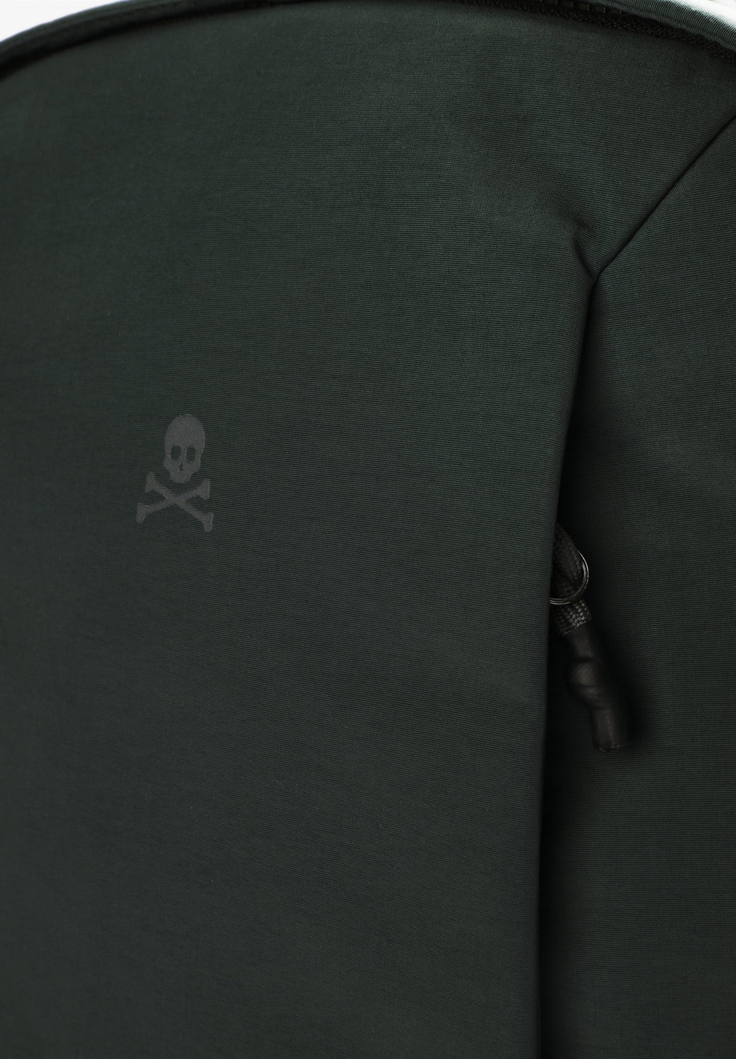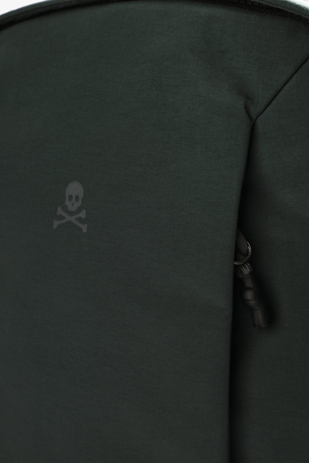 Mochila confeccionada en mezcla de algodón. Cierre con cremallera, asas traseras ajustables y superior. Bolsillo frontal con cremallera y detalle de print de calavera.