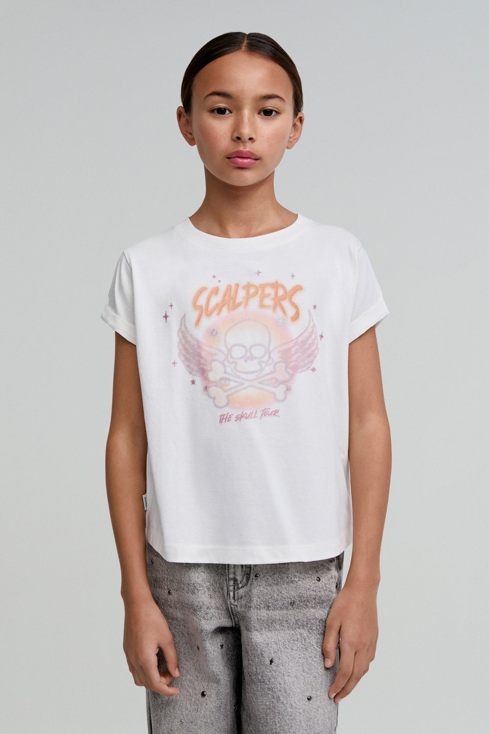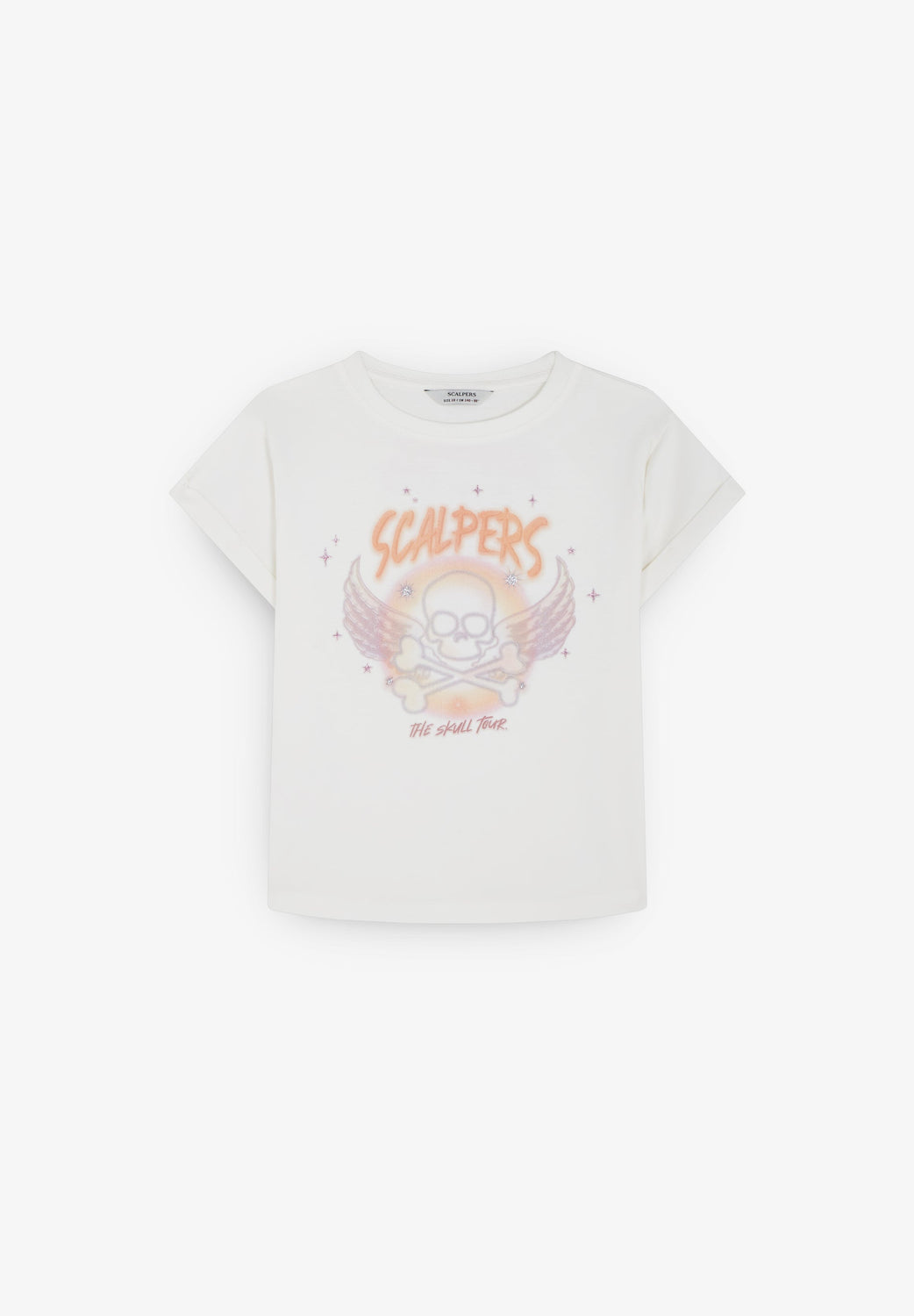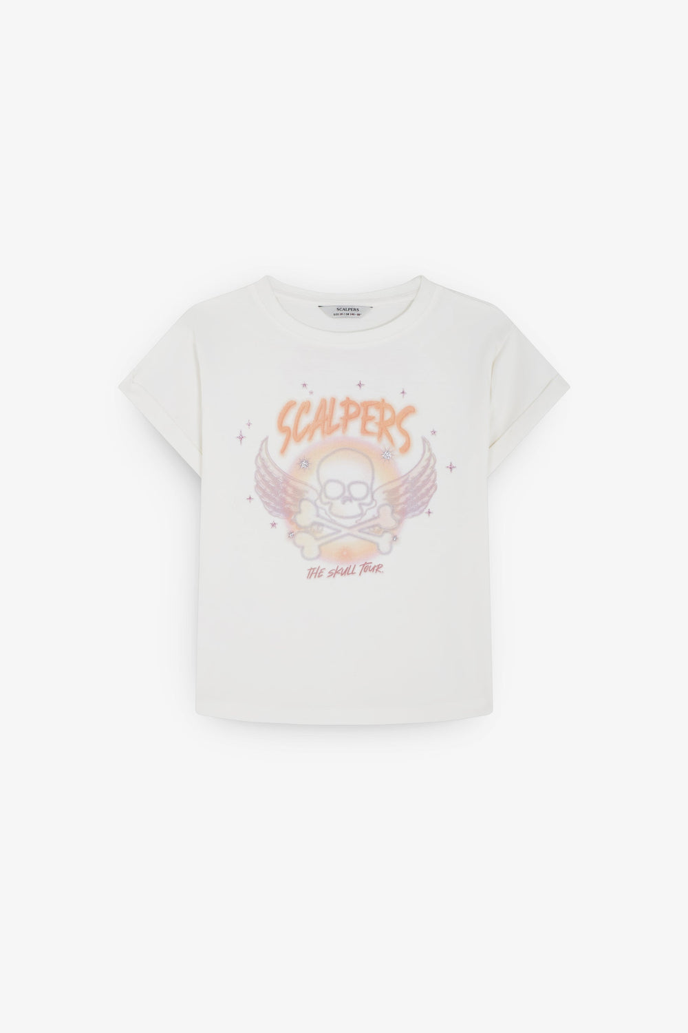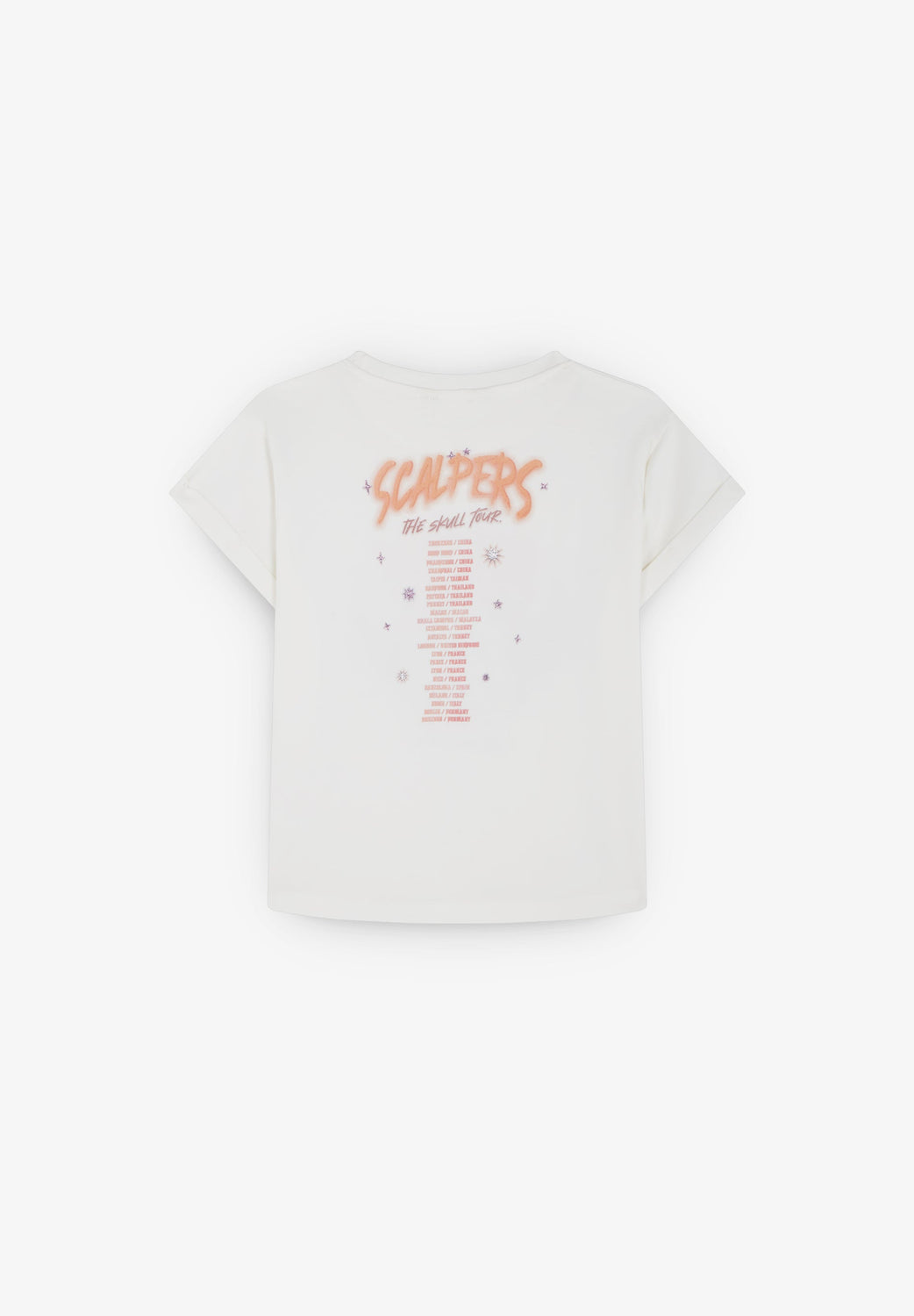 Camiseta confeccionada en 100% algodón BCI. Regular fit, cuello redondo y manga corta. Calavera frontal y print trasero.