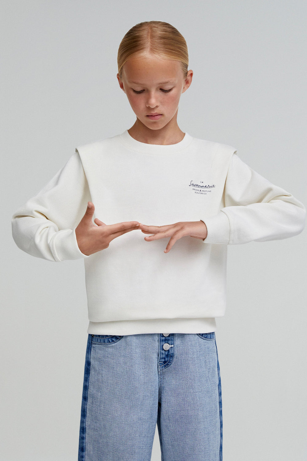 Sudadera confeccionada en 100% algodón BCI. Regular fit, cuello redondo y manga larga. Detalle de pliegues en hombro y calavera bordada trasera y frontal.