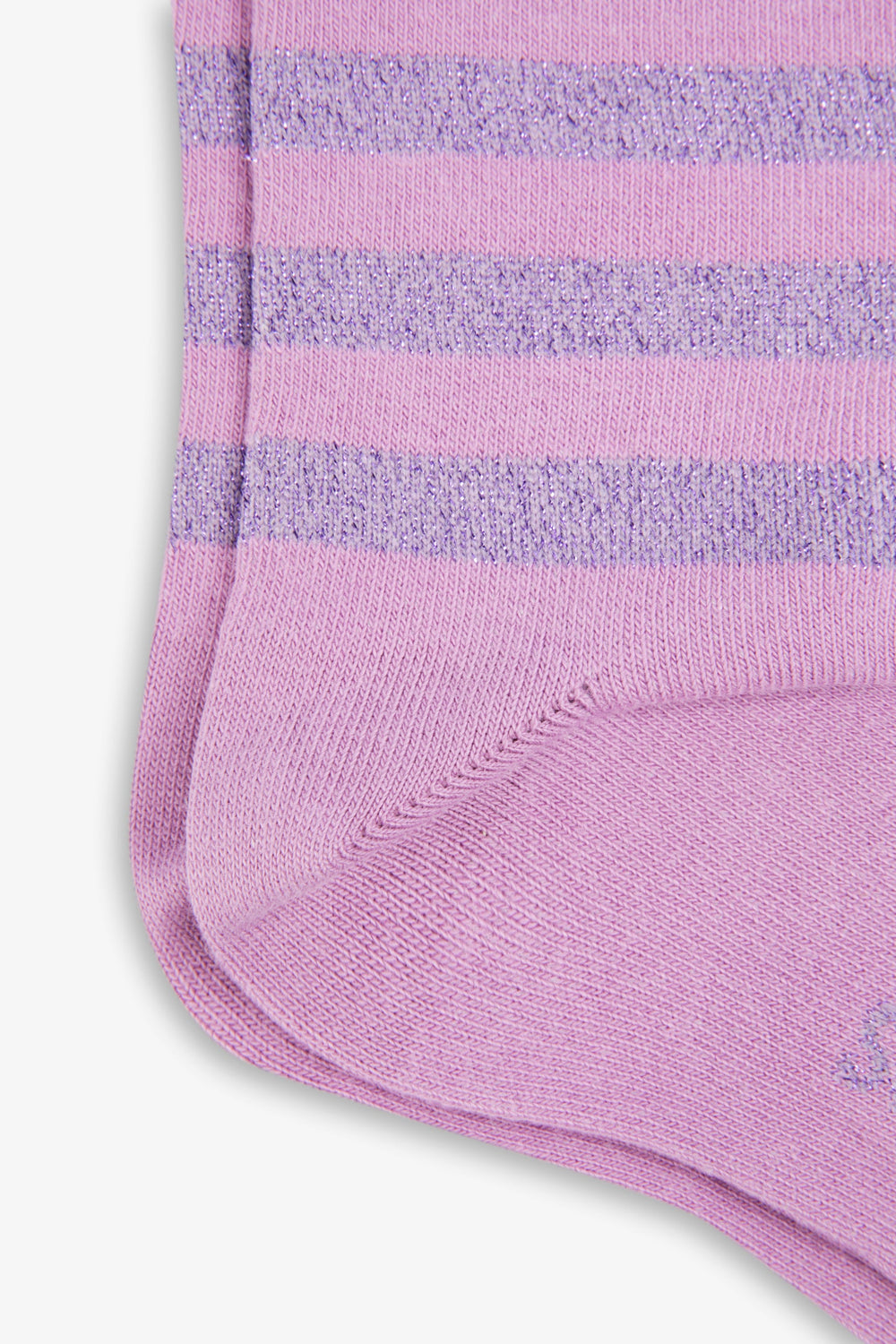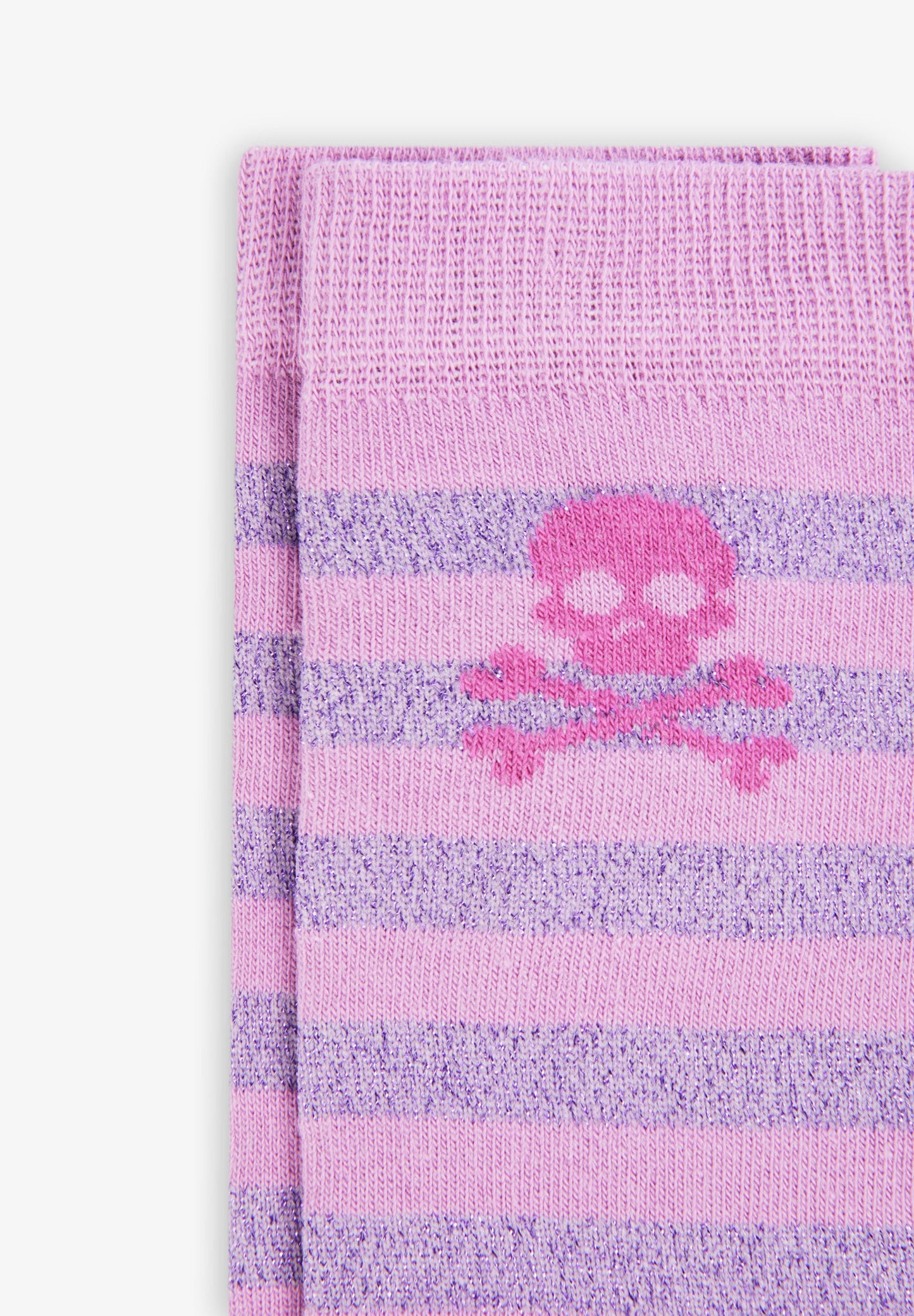 Calcetines de rayas confeccionados en tejido ligeramente elástico con lurex. Caña alta y calavera.