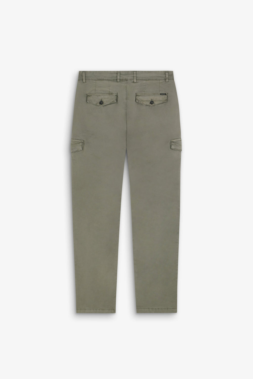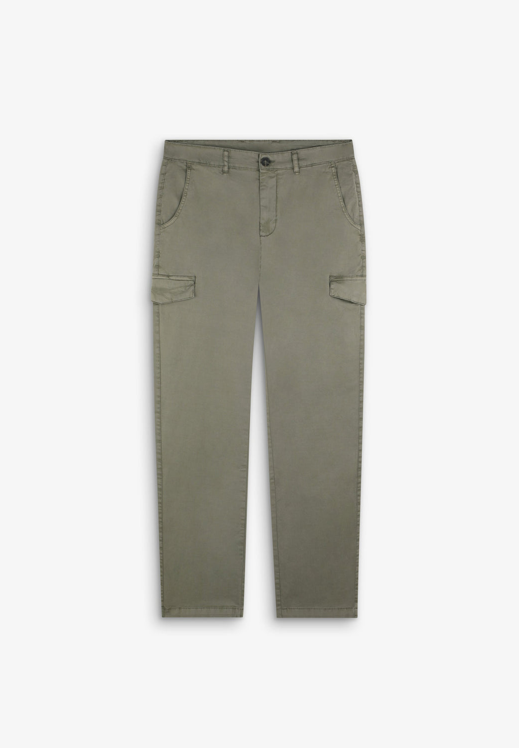 Pantalón cargo confeccionado en algodón BCI ligeramente elástico. Regular fit, cierre con botón y cremallera y bolsillos laterales y traseros. Trabillas en cintura y bolsillos en pernera con tapeta.