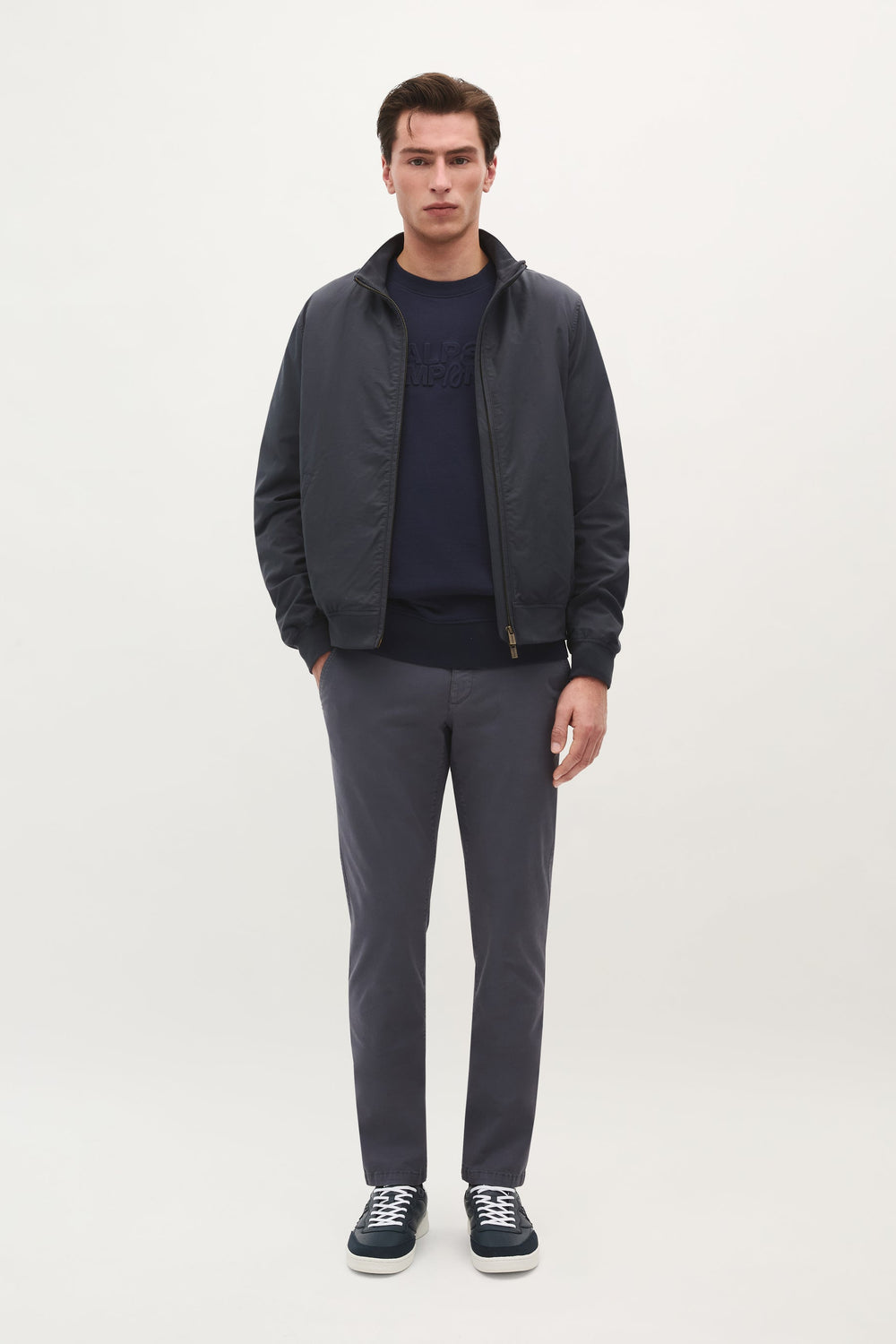 - Bolsillos laterales con boca inclinada y bolsillo cerillero en parte delantera