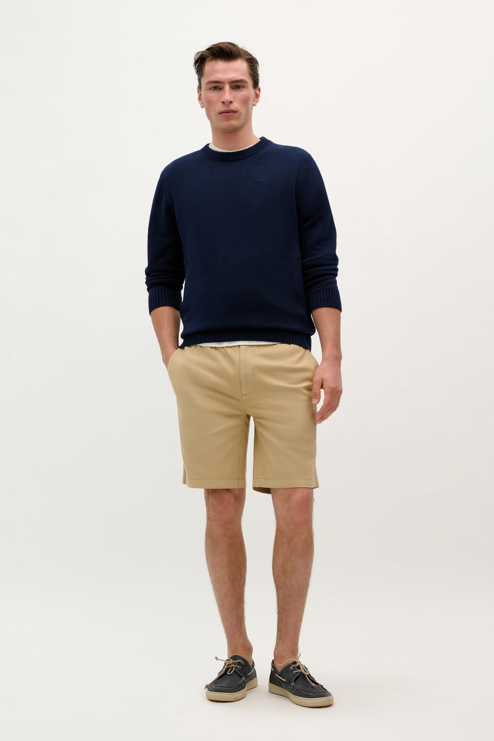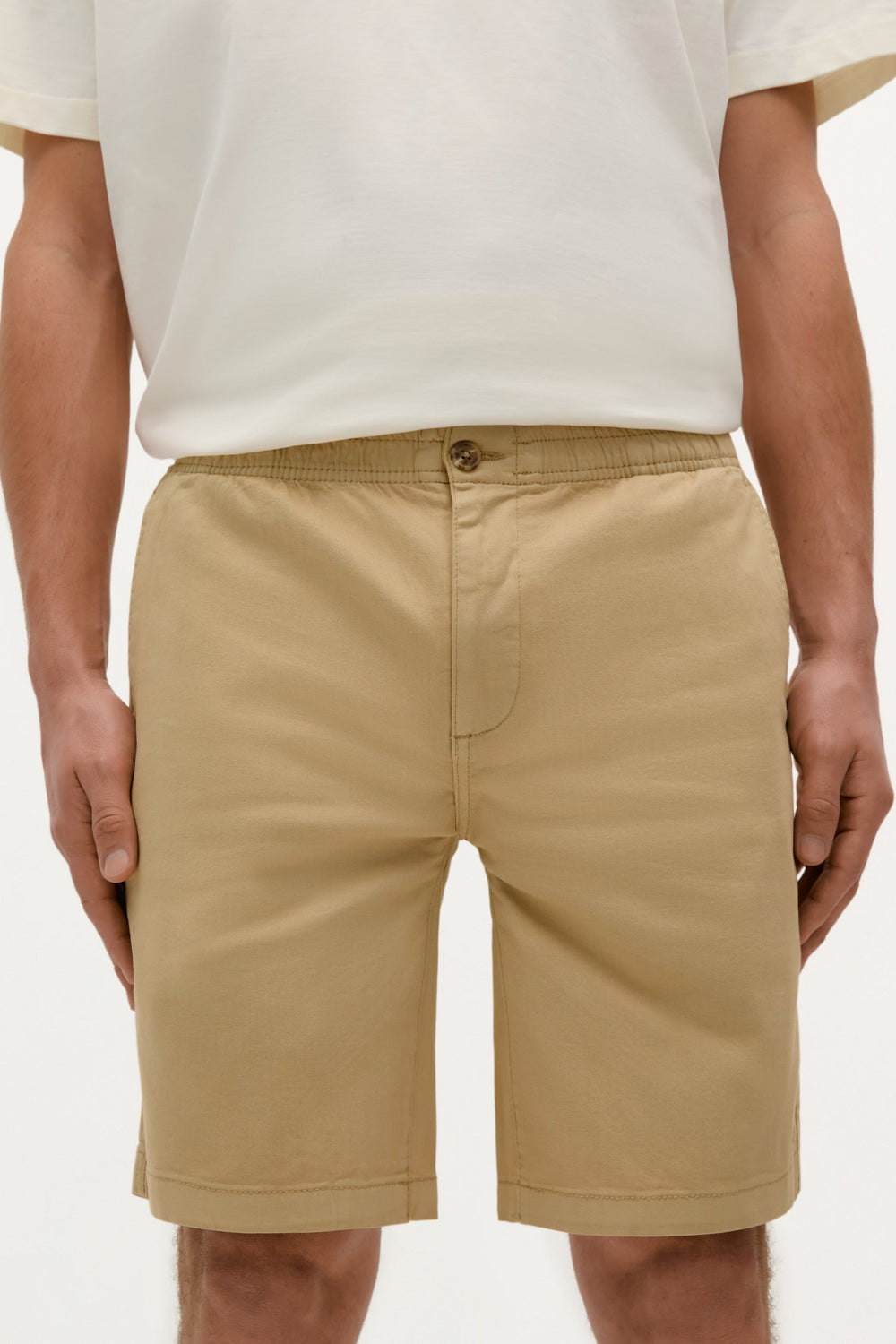 Bermuda confeccionada en Algodón Orgánico. Bolsillos laterales. Bolsillos en espalda con cierre por abotonadura. Cierre en frontal por cremallera y botón. Detalle de logo en espalda.