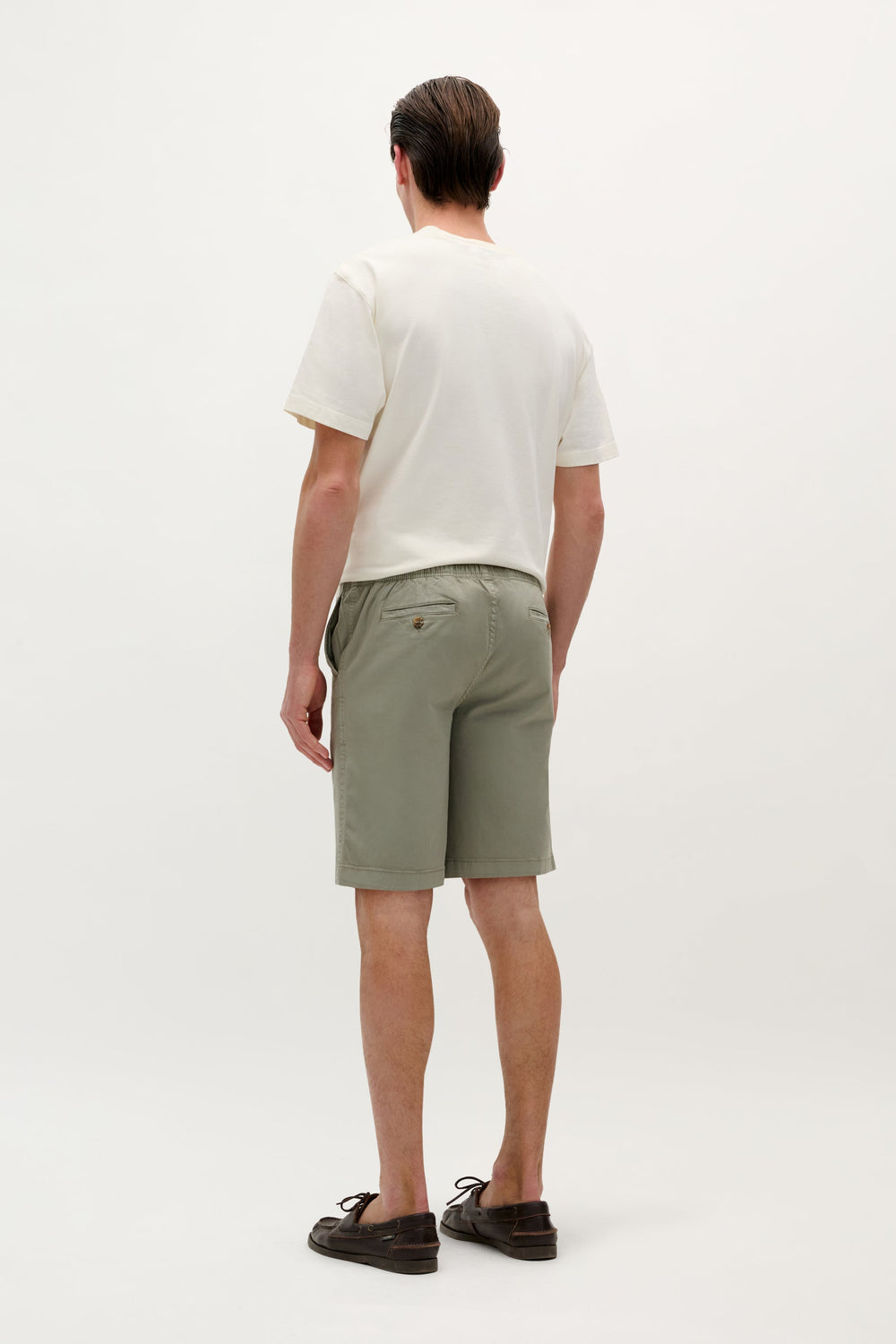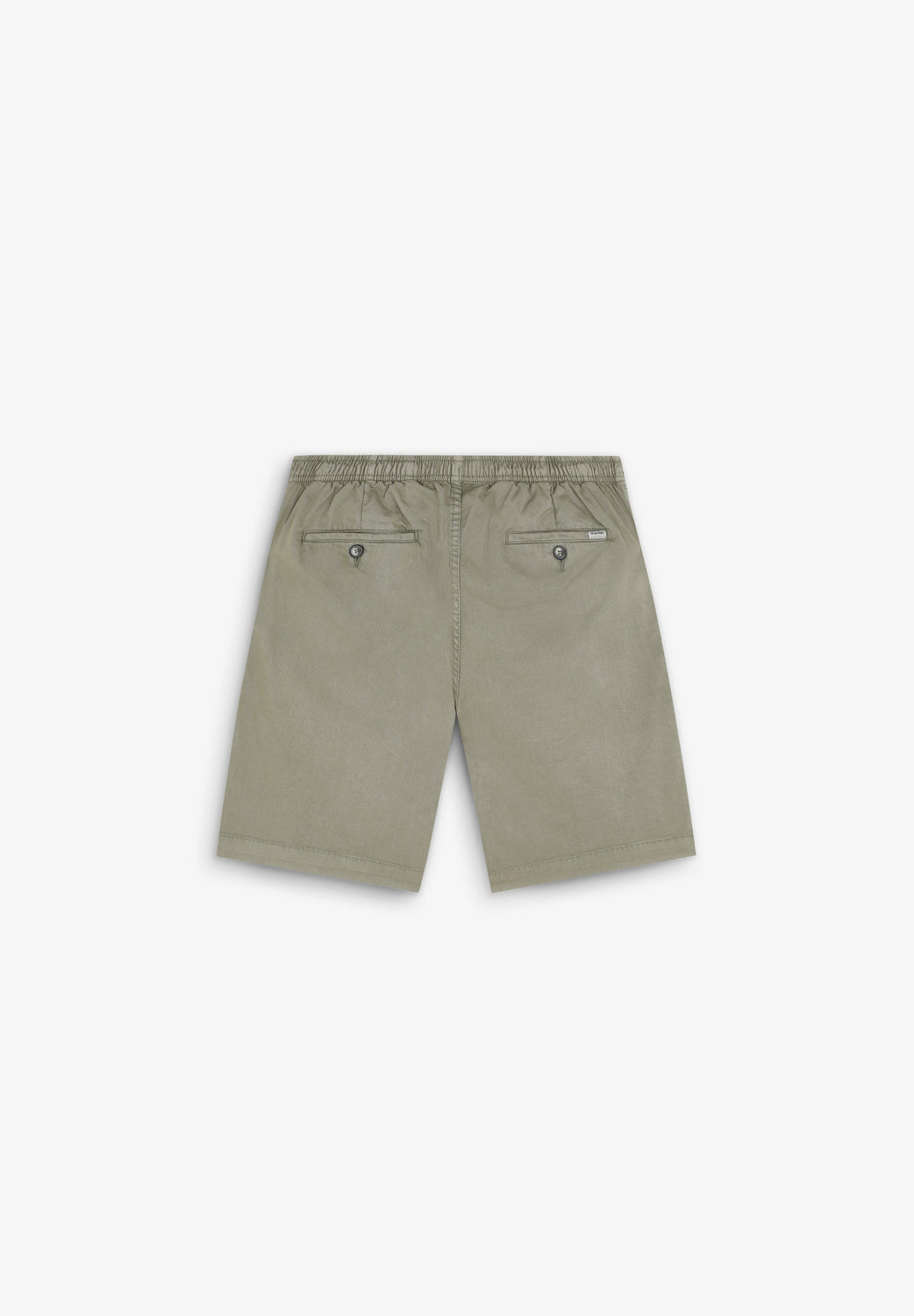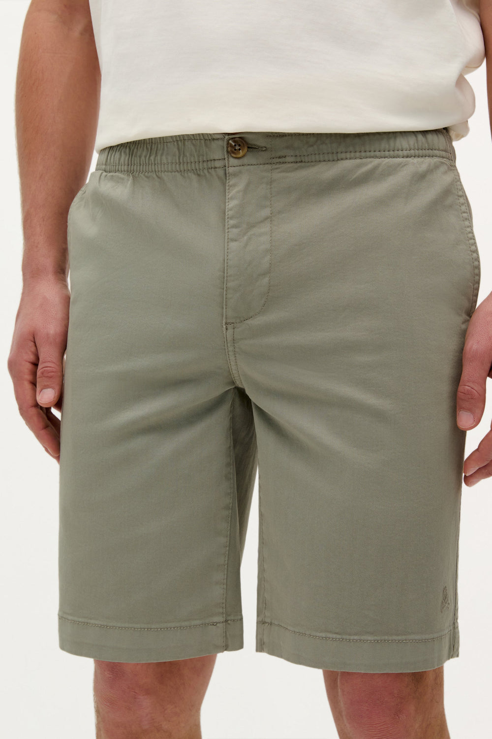 Bermuda confeccionada en Algodón Orgánico. Bolsillos laterales. Bolsillos en espalda con cierre por abotonadura. Cierre en frontal por cremallera y botón. Detalle de logo en espalda.