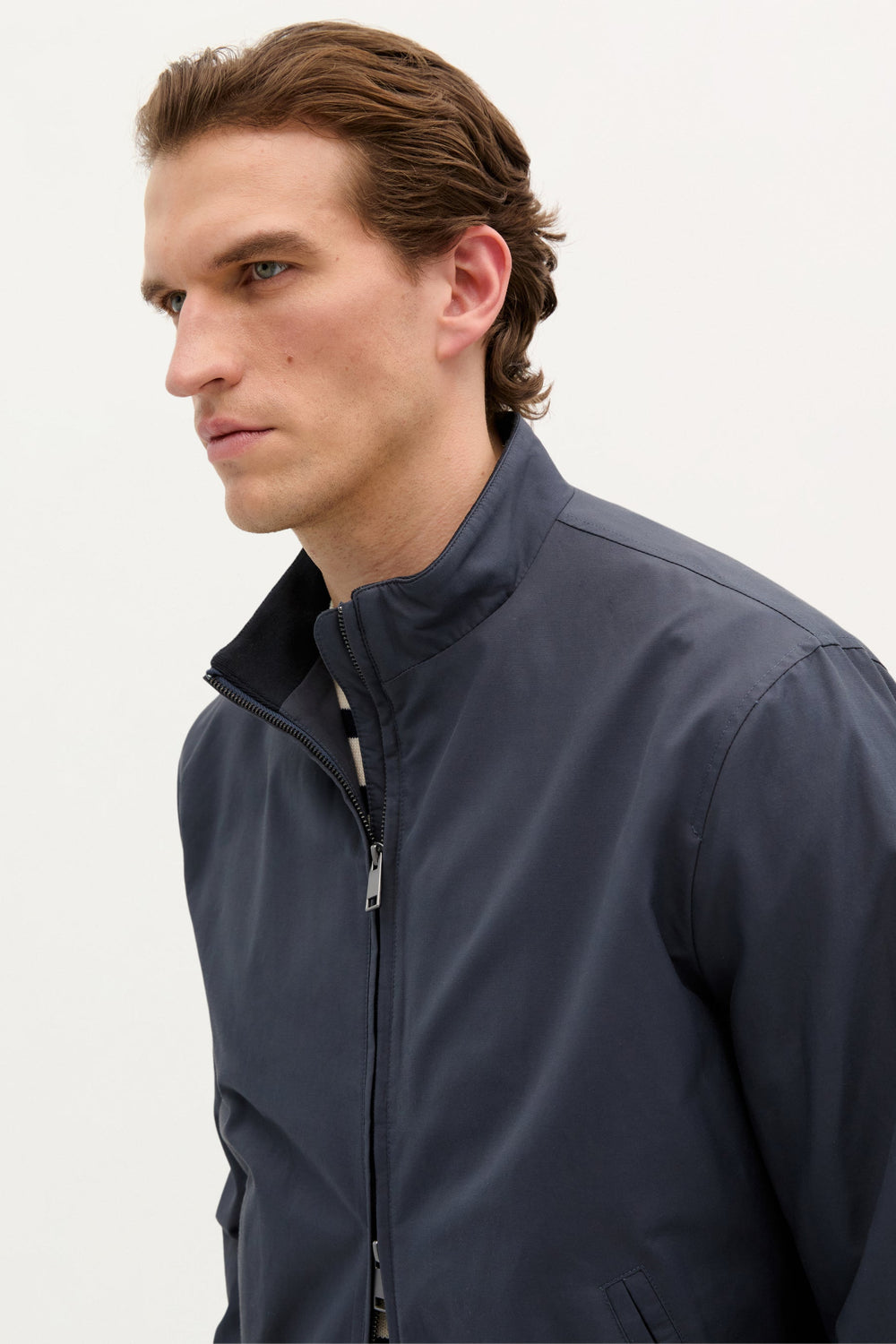 Chaqueta tipo bomber confeccionada en mezcla de algodón y tejido técnico. Regular Fit, cuello con rib y cierre con cremallera. Manga larga terminada en puño con elástico y bolsillos con cierre de snap.