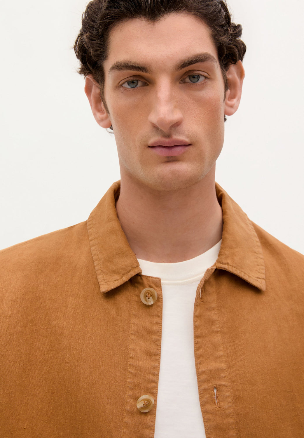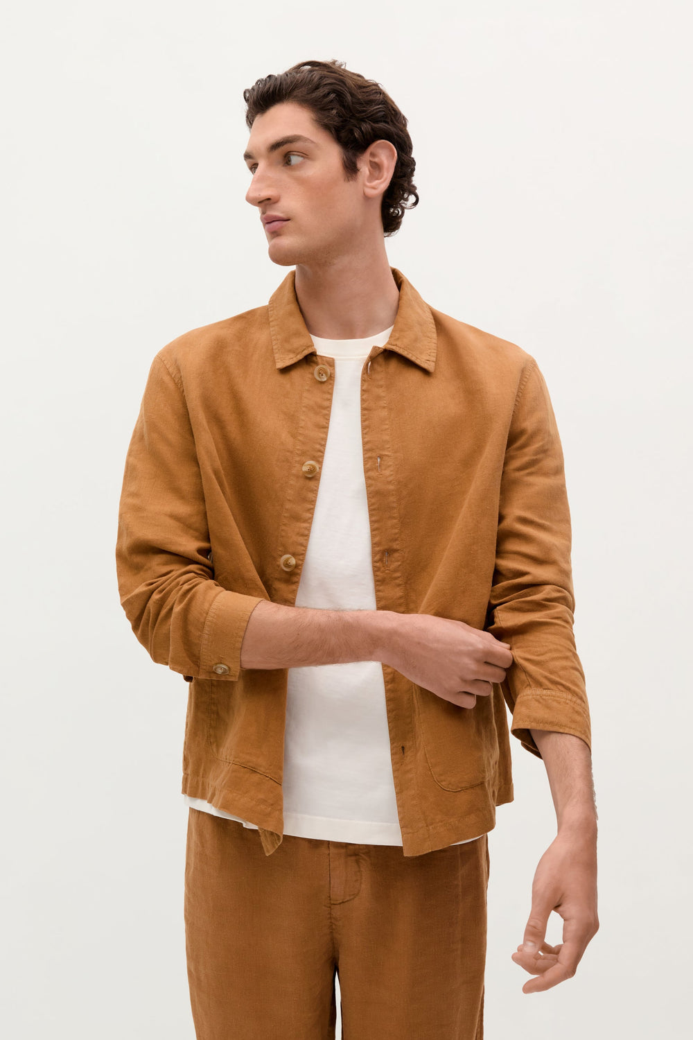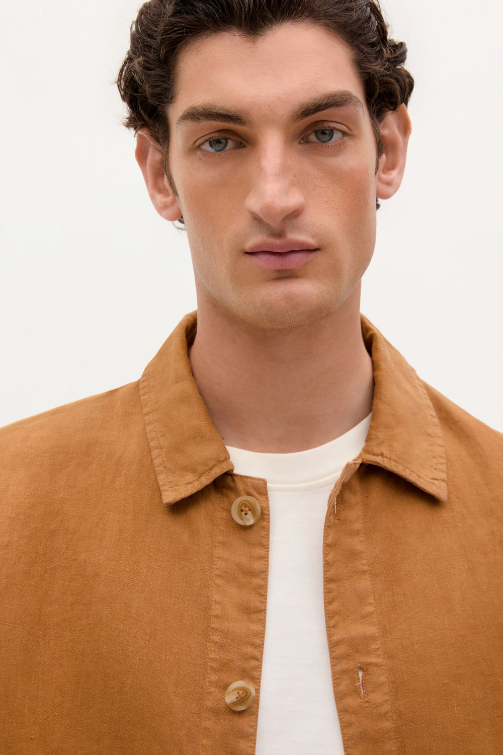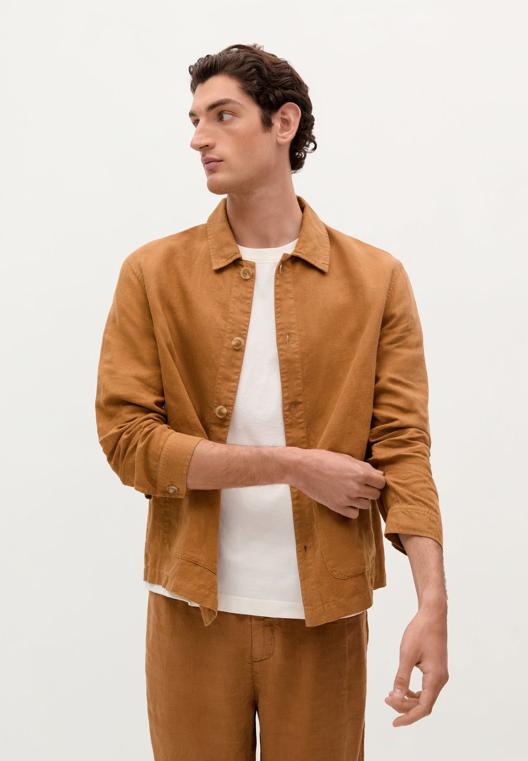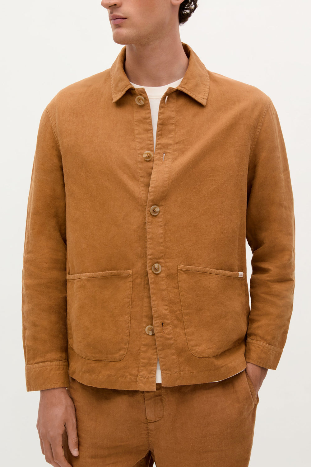 Sobrecamisa confeccionada en 100% Lino. Cuello camisero. Bolsillos en cadera. Cierre por abotonadura frontal.