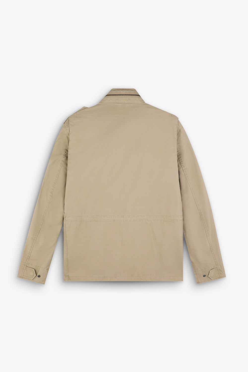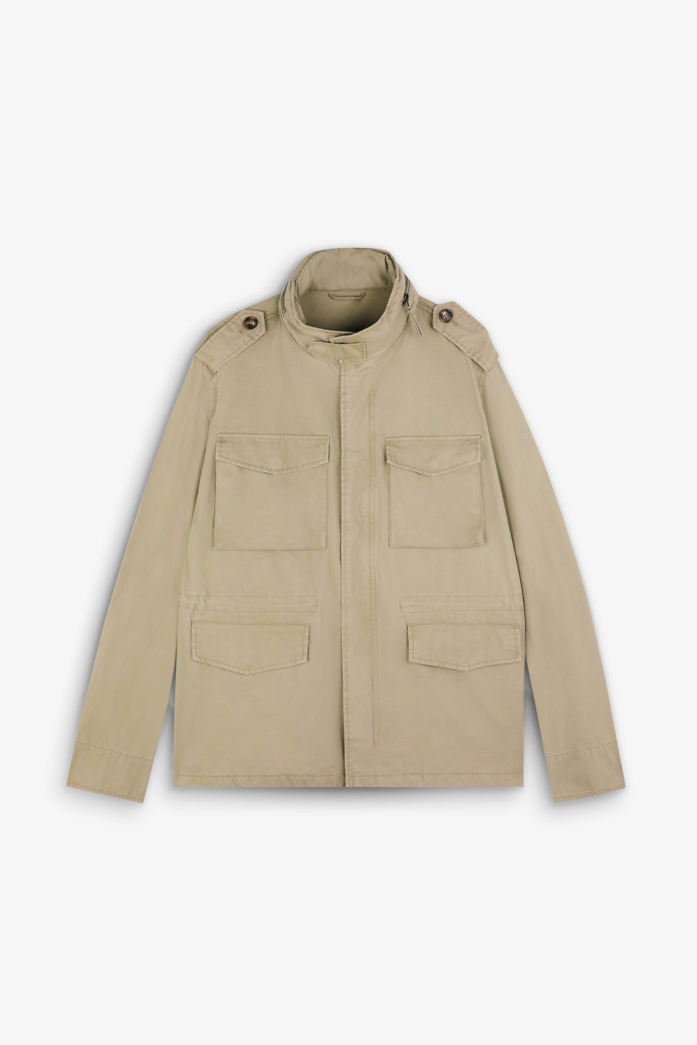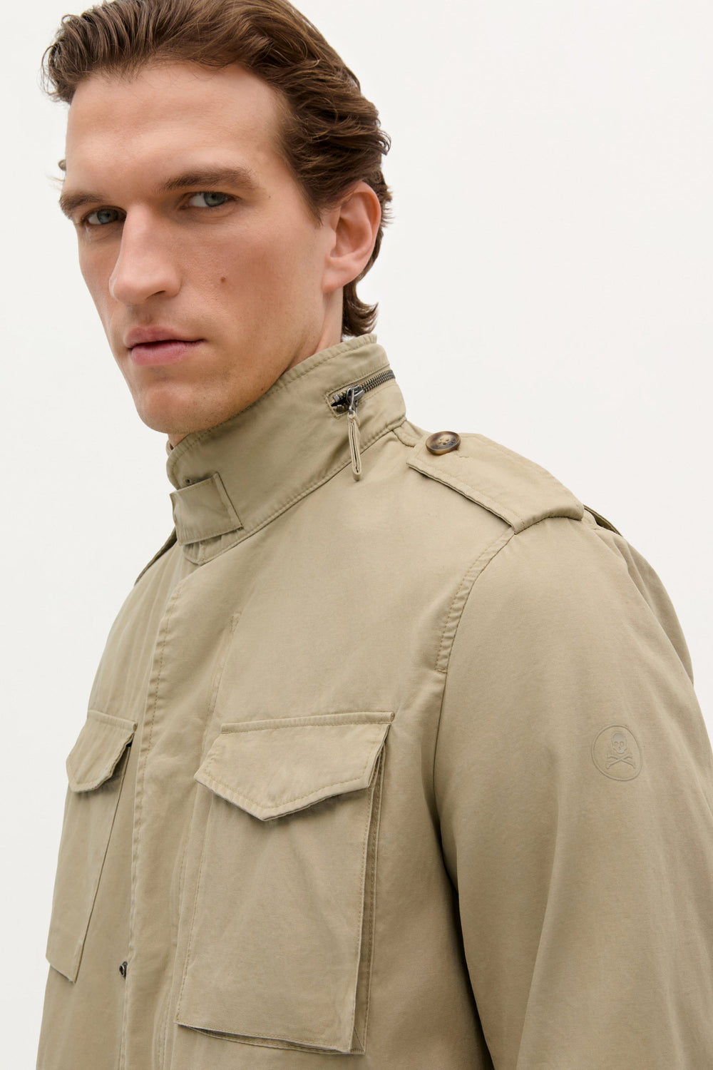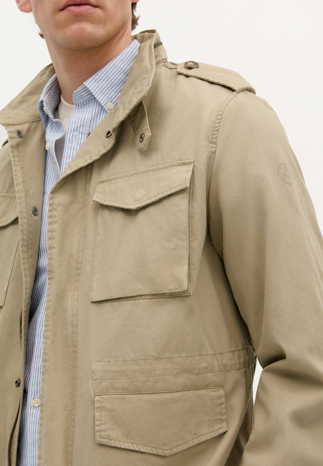 Chaqueta estilo militar confeccionada en 100% algodón BCI. Corte regular fit, cuello con capucha desmontable con cremallera. Cierre con cremallera de doble carro y snaps. Manga larga terminada en puños con cierre de snap y fuelles en la parte trasera.