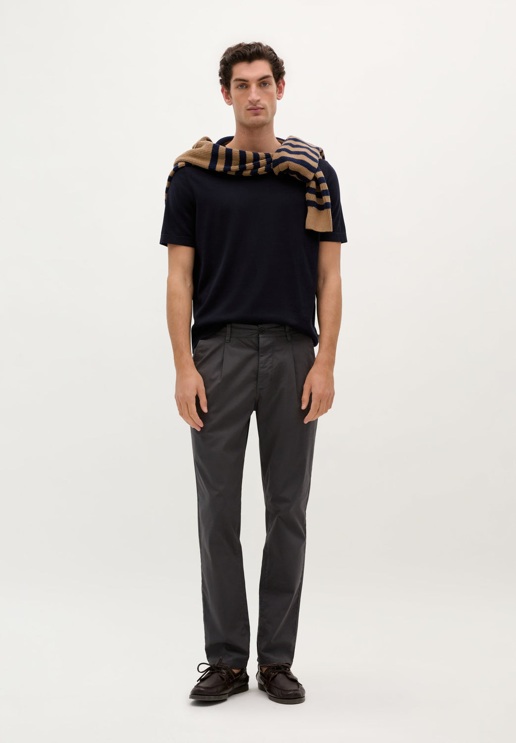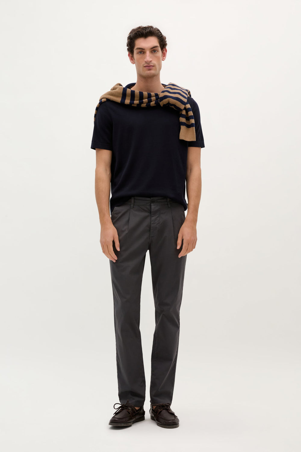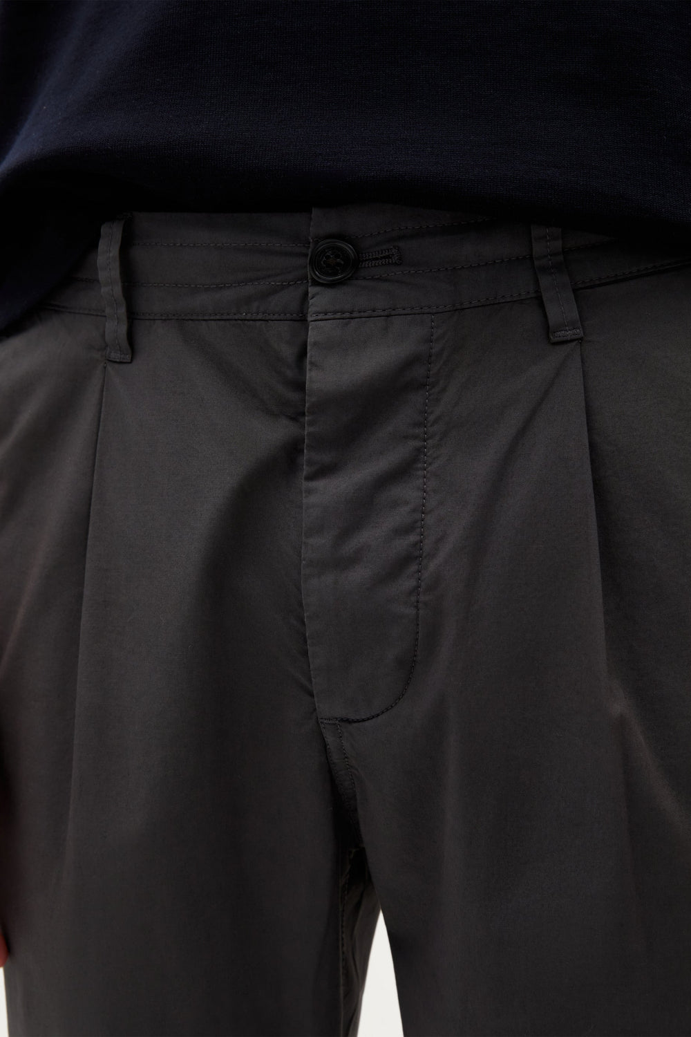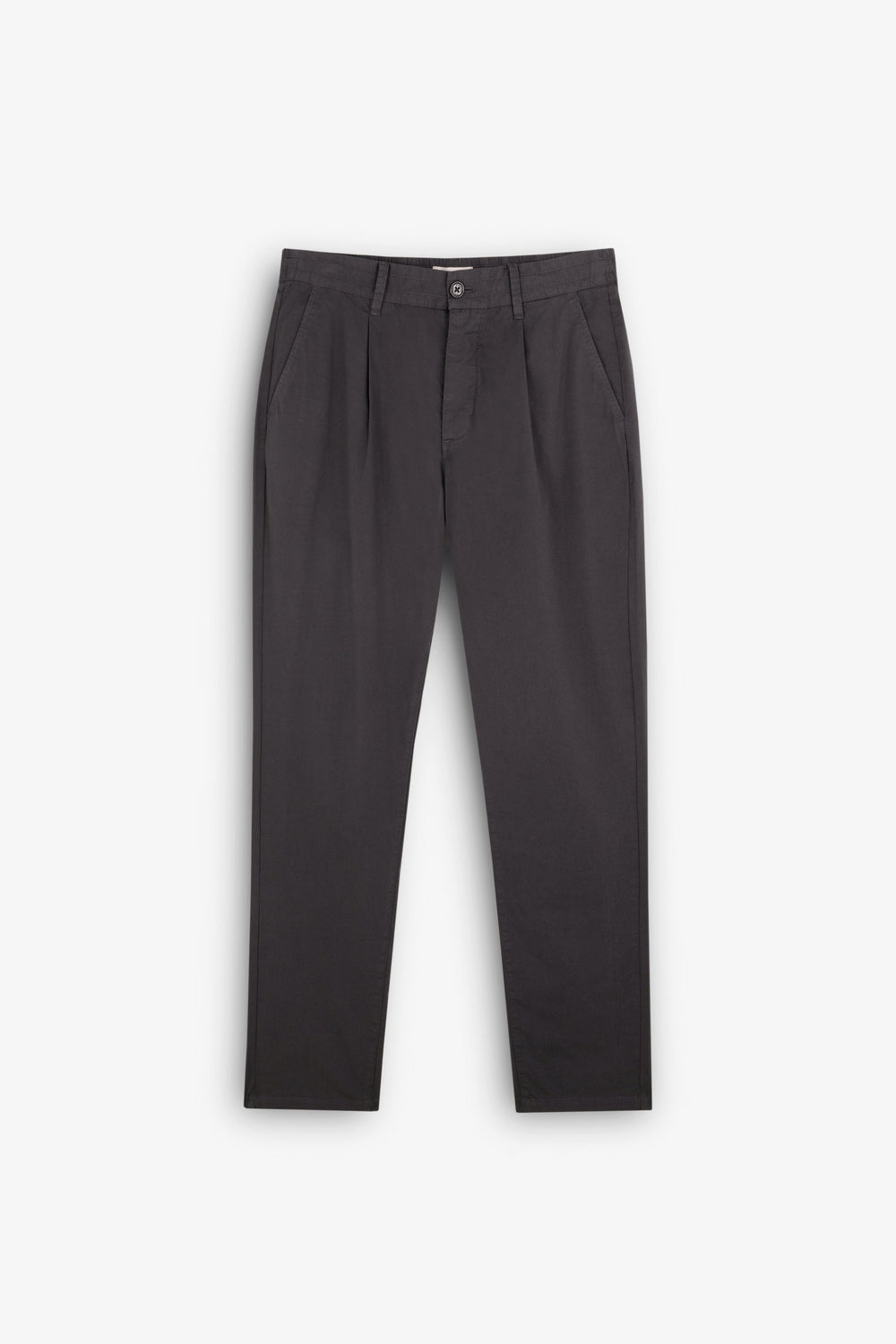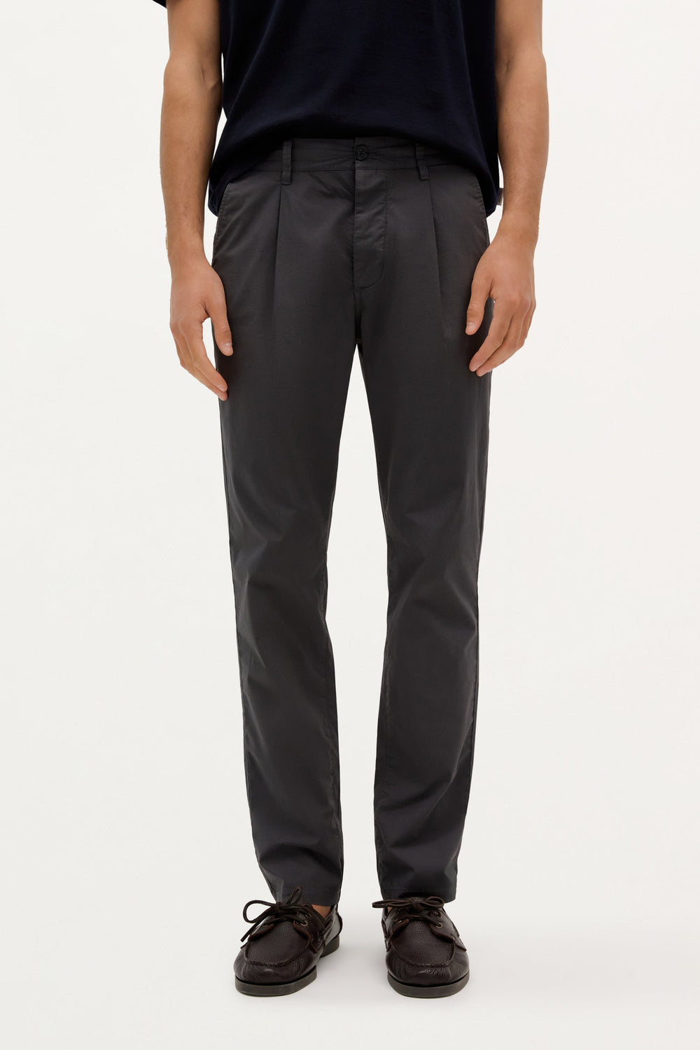 Pantalón regular fit confeccionado en tejido de algodón orgánico. Cintura con detalle de pliegues frontales. Bolsillos en delantero y detalle de bolsillos traseros con cierre por botón. Cierre frontal con cremallera y botón.