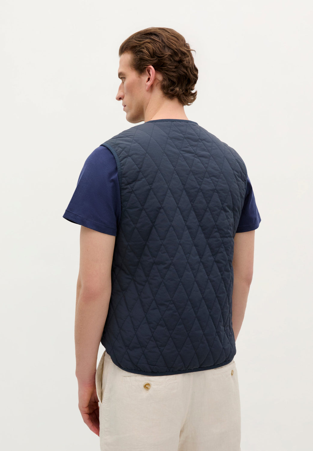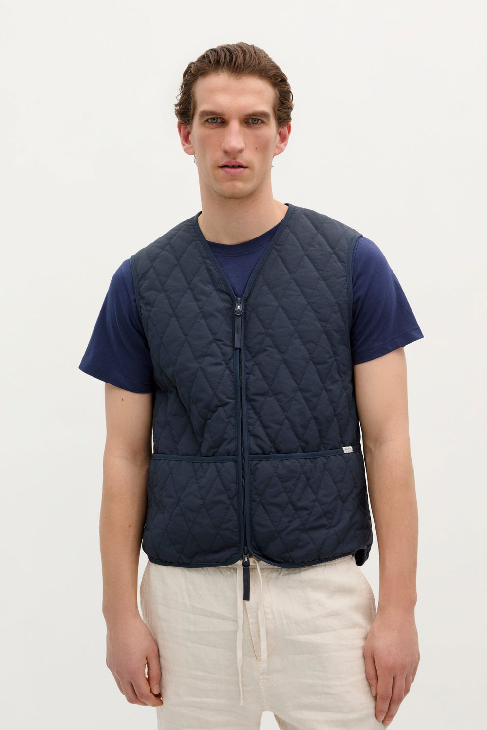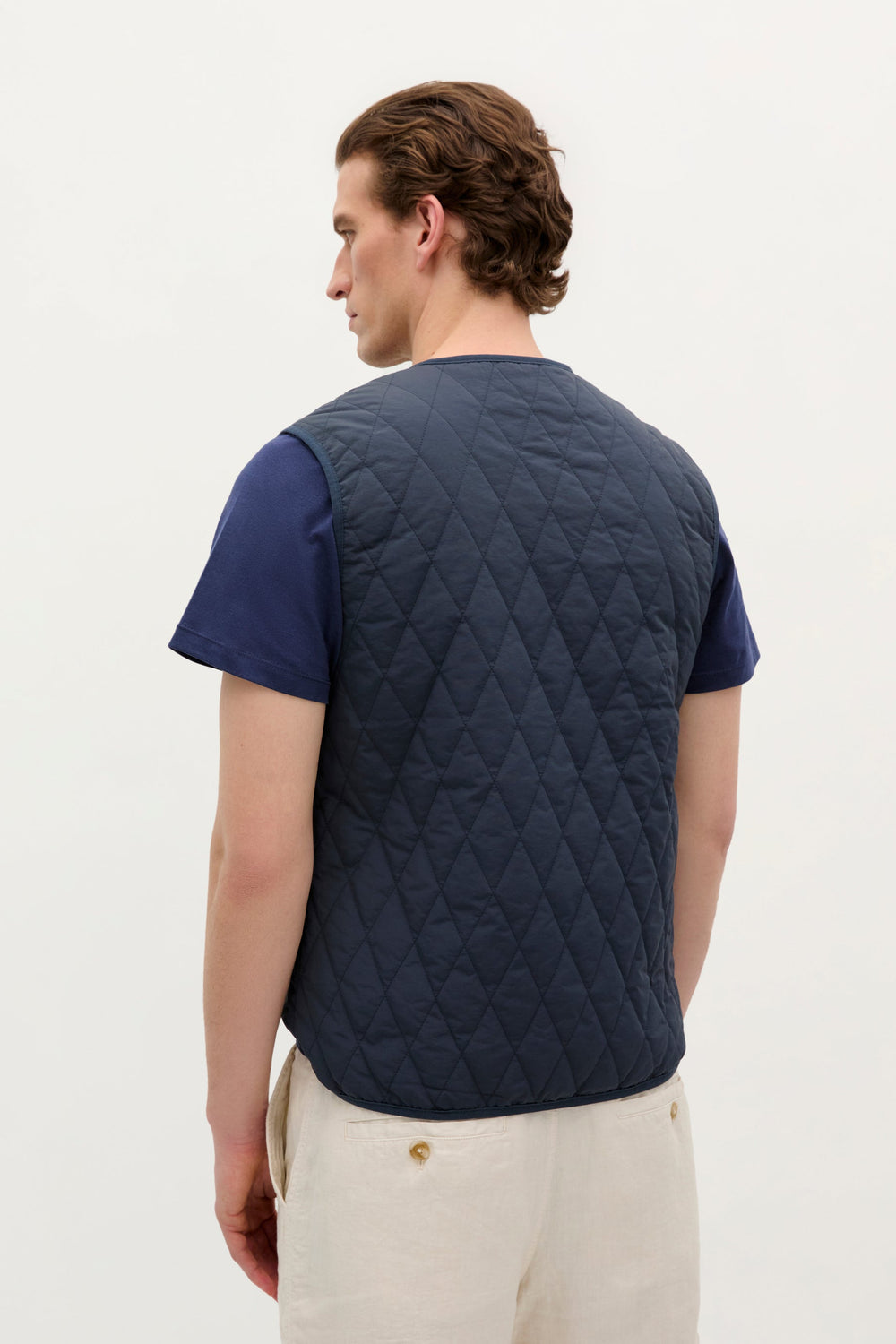 Chaleco acolchado. Confeccionado en nylon reciclado, Regular Fit y cuello de pico con cierre de cremallera de doble carro. Bolsillos frontales con detalle de logo en etiqueta.