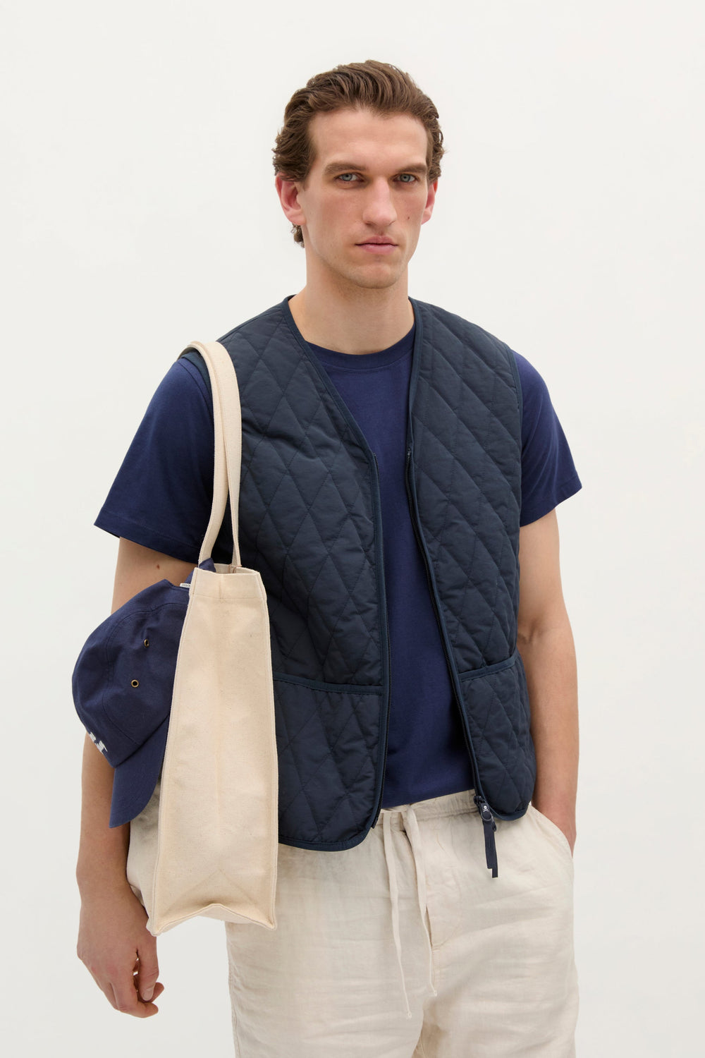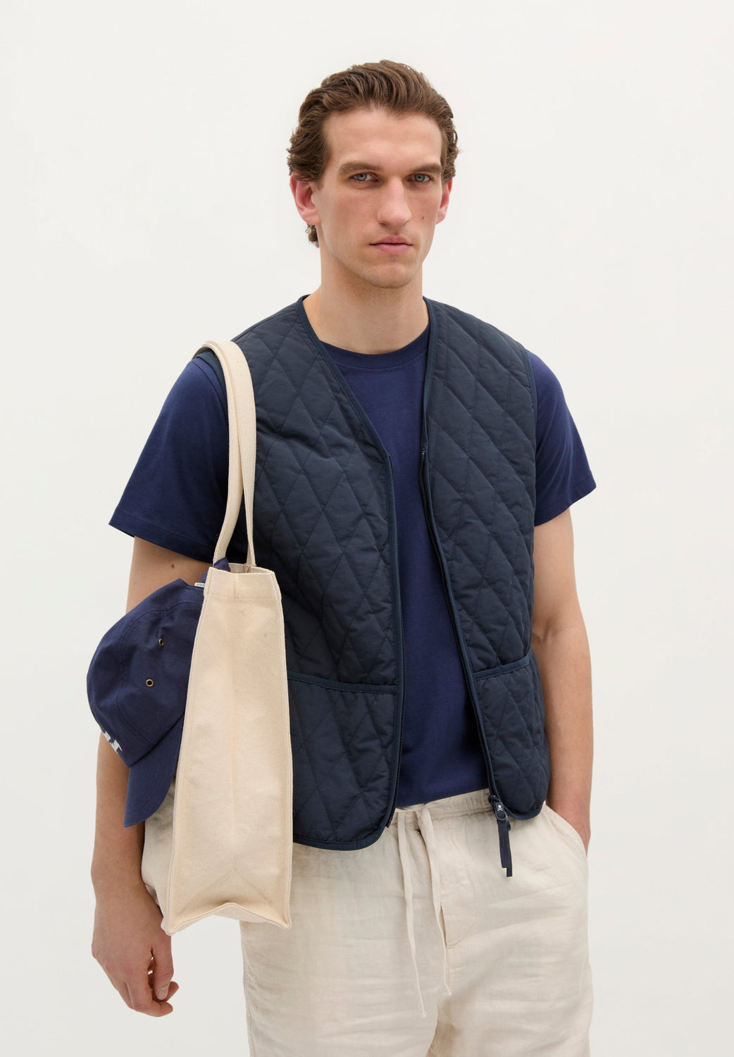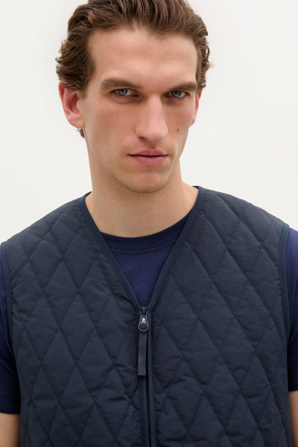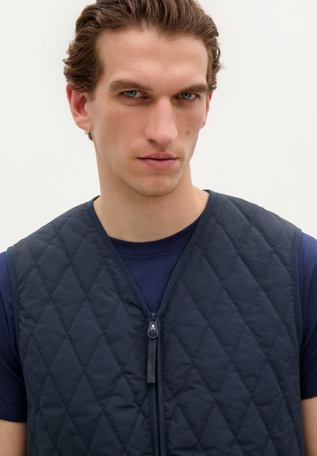 Chaleco acolchado. Confeccionado en nylon reciclado, Regular Fit y cuello de pico con cierre de cremallera de doble carro. Bolsillos frontales con detalle de logo en etiqueta.