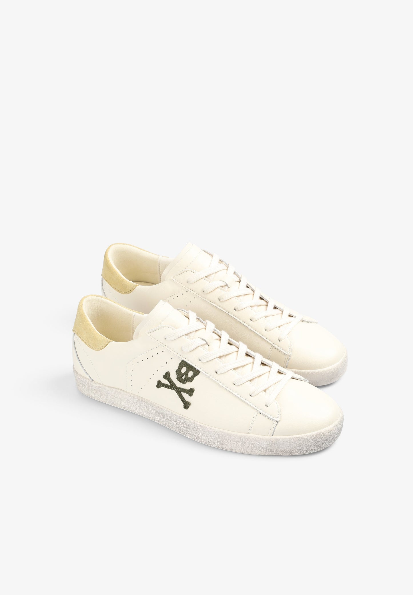 Sneakers bajas confeccionadas en piel y serraje. Cierre con cordones a tono, suela de caucho y calavera lateral. Detalle trasero a contraste.