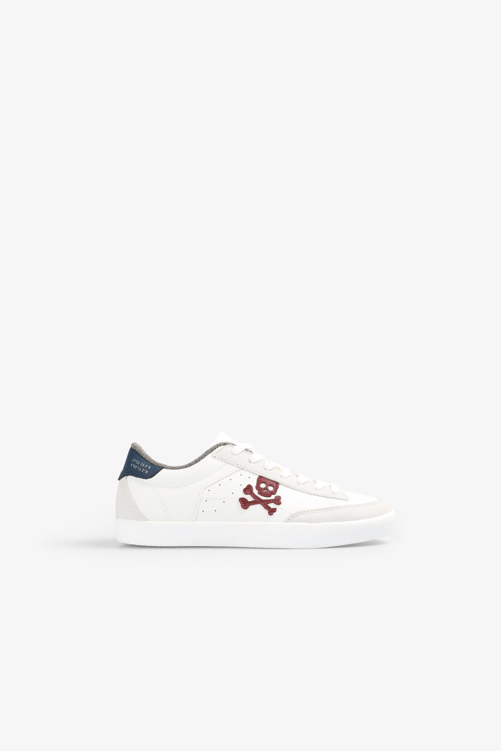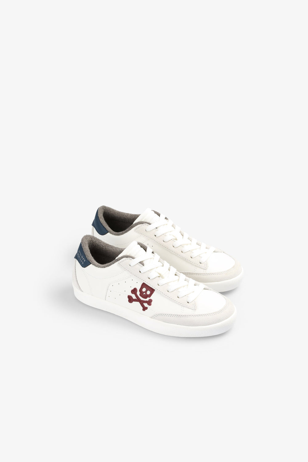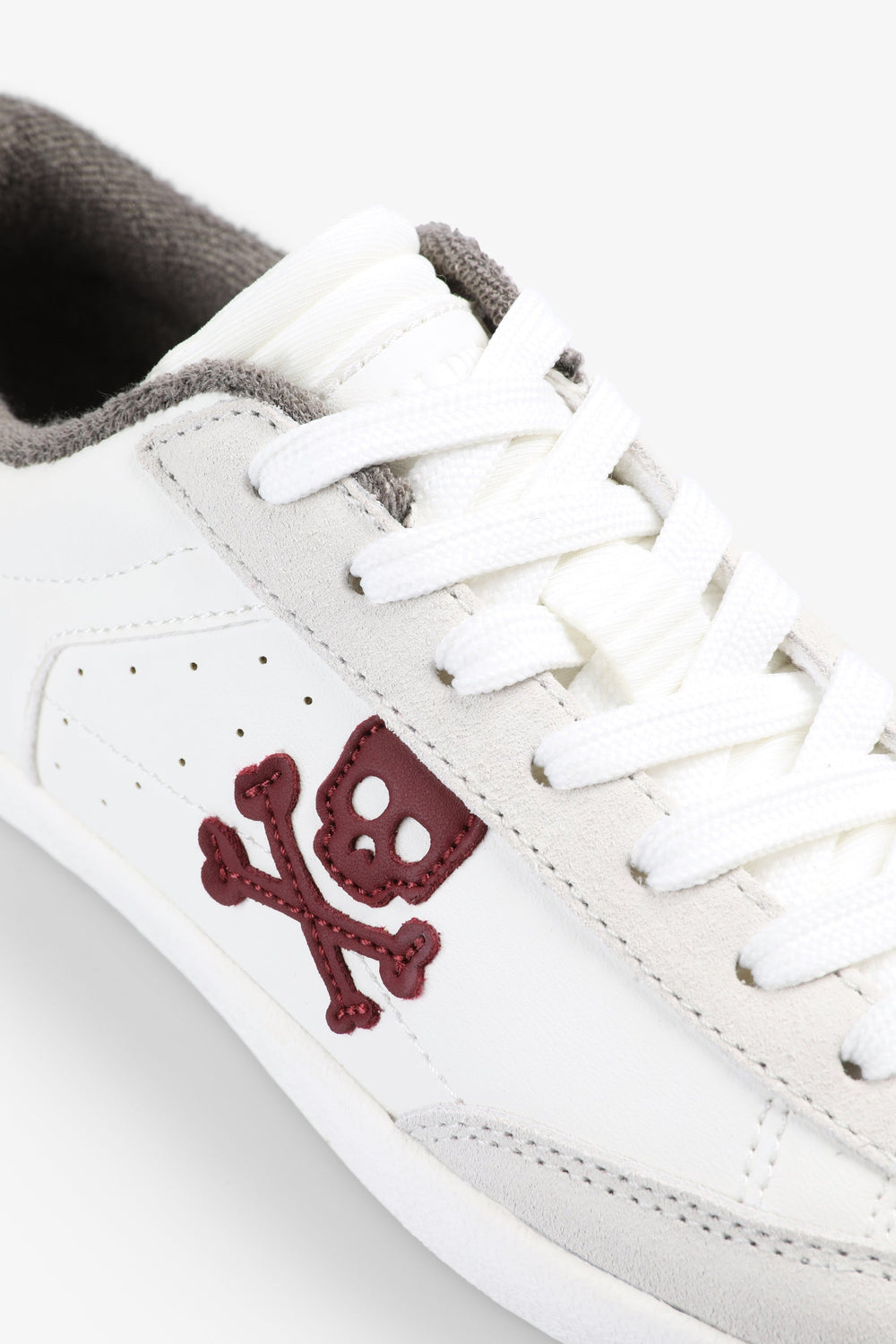 Sneakers bajas con calavera y talón a contraste. suela de casco. Cordones a tono.
