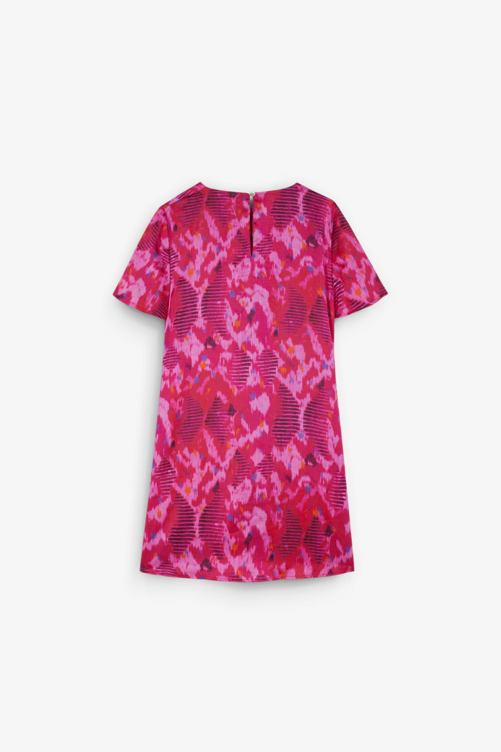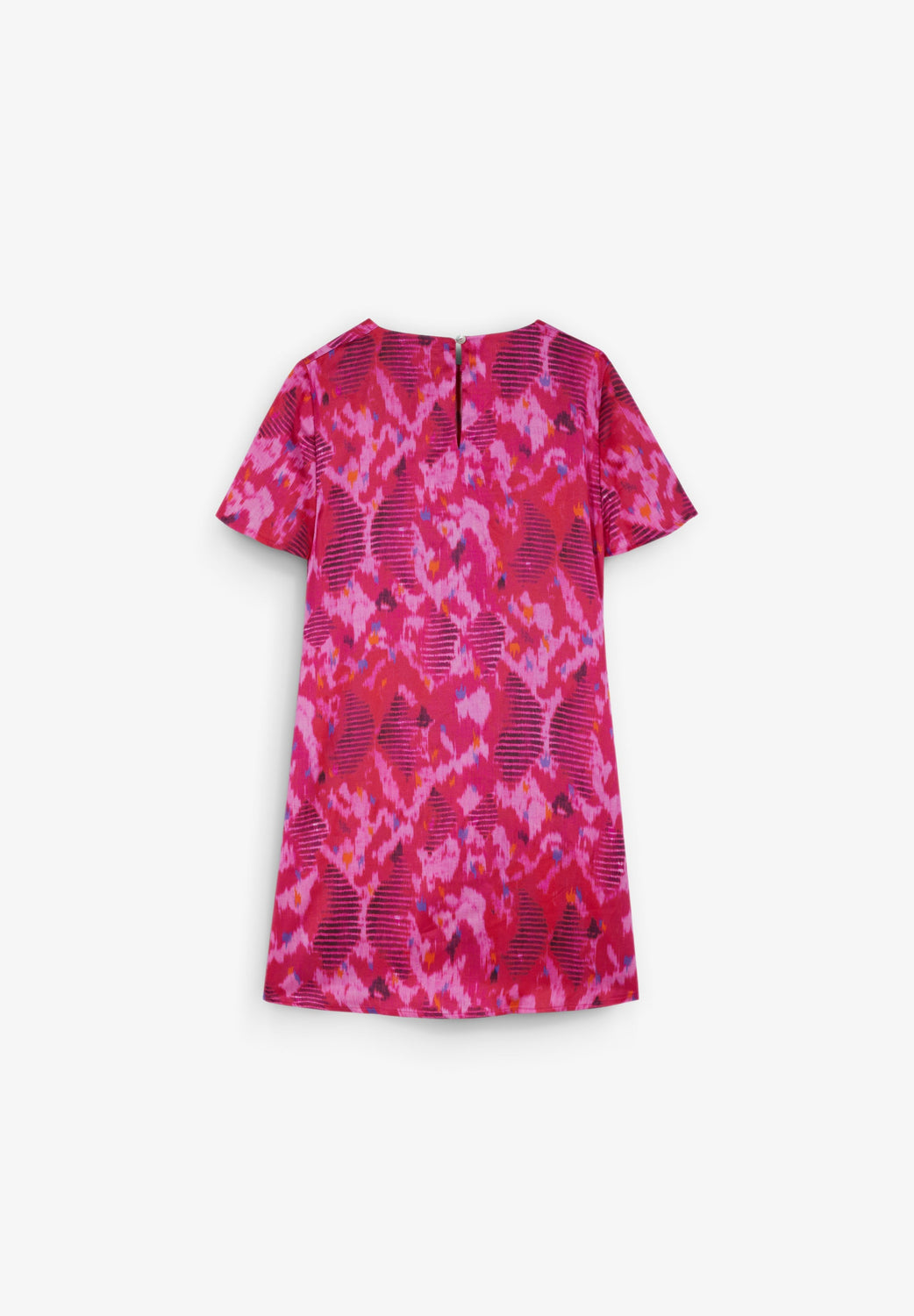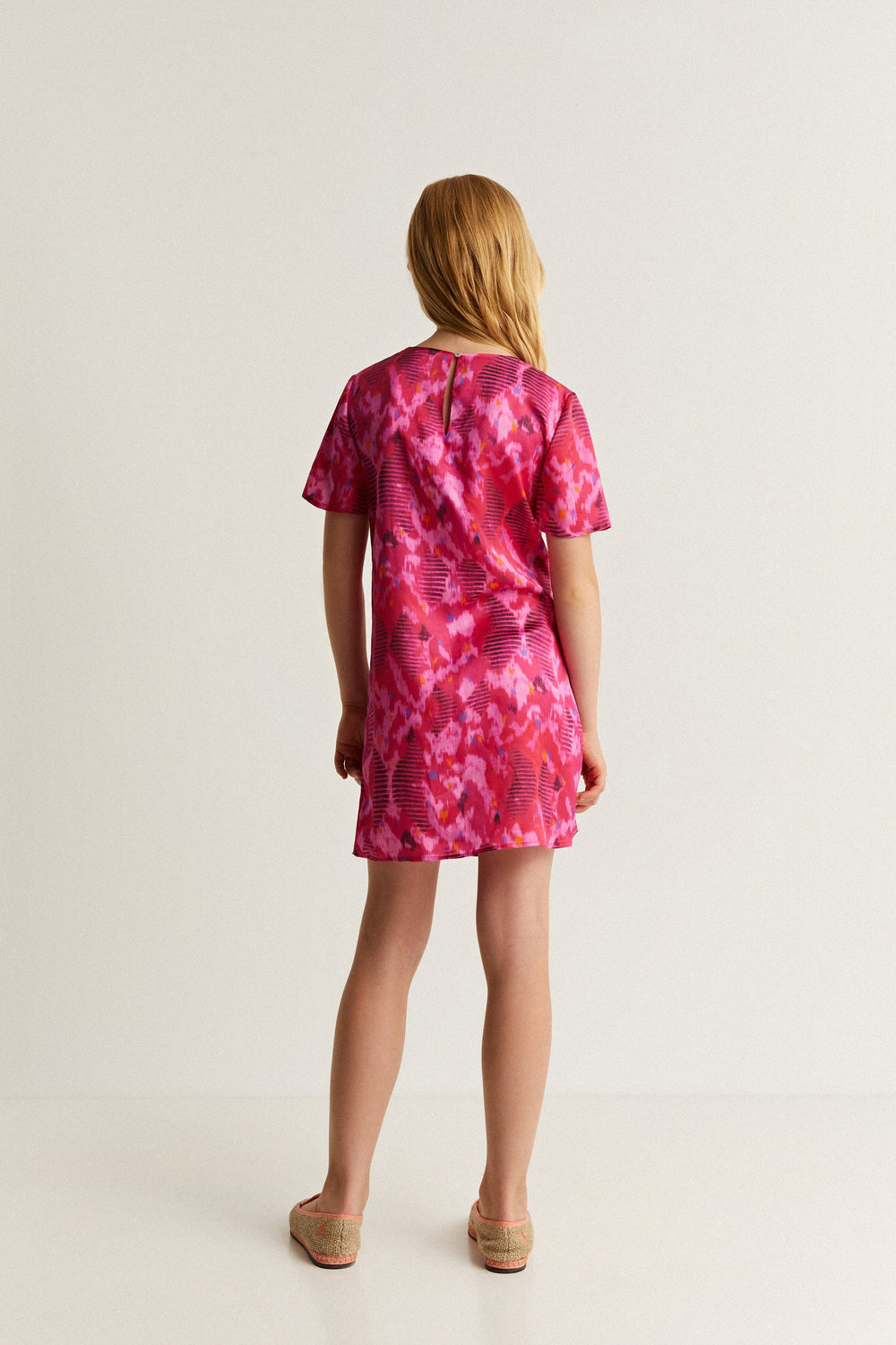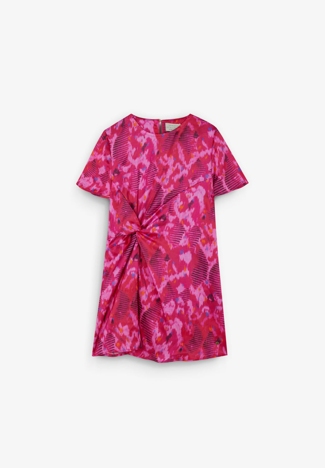 Vestido confeccionado en tejido fluido. Regular fit, cuello redondo y manga corta. Nudo lateral.