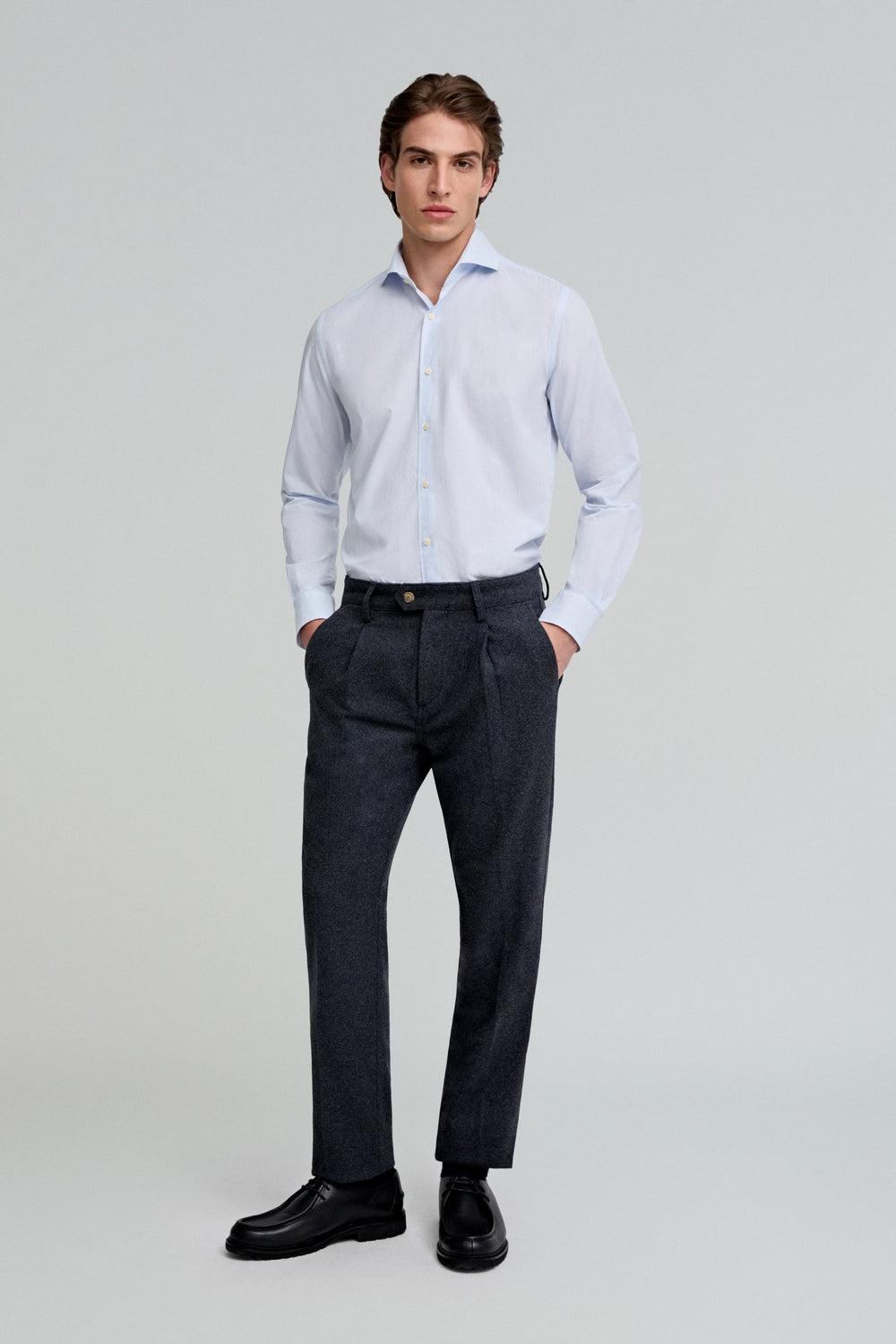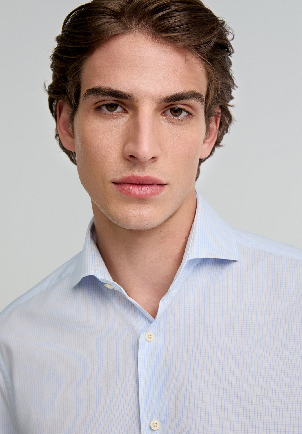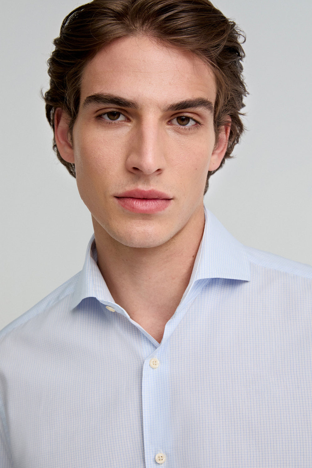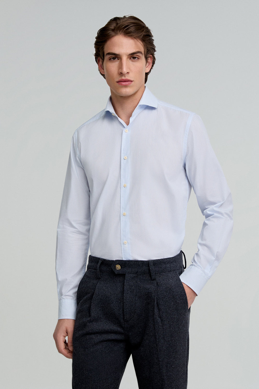 Camisa de cuadros confeccionada en 100% algodón. Regular fit, cuello italiano y cierre con botones. Manga larga terminada en puño con botones.