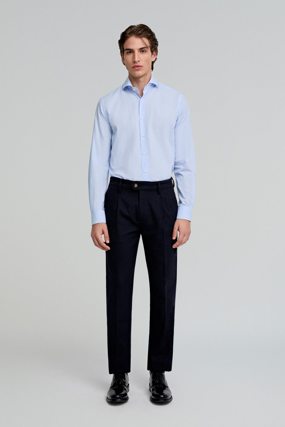 Camisa de cuadros confeccionada en 100% algodón. Regular fit, cuello italiano y cierre con botones. Manga larga terminada en puño con botones.