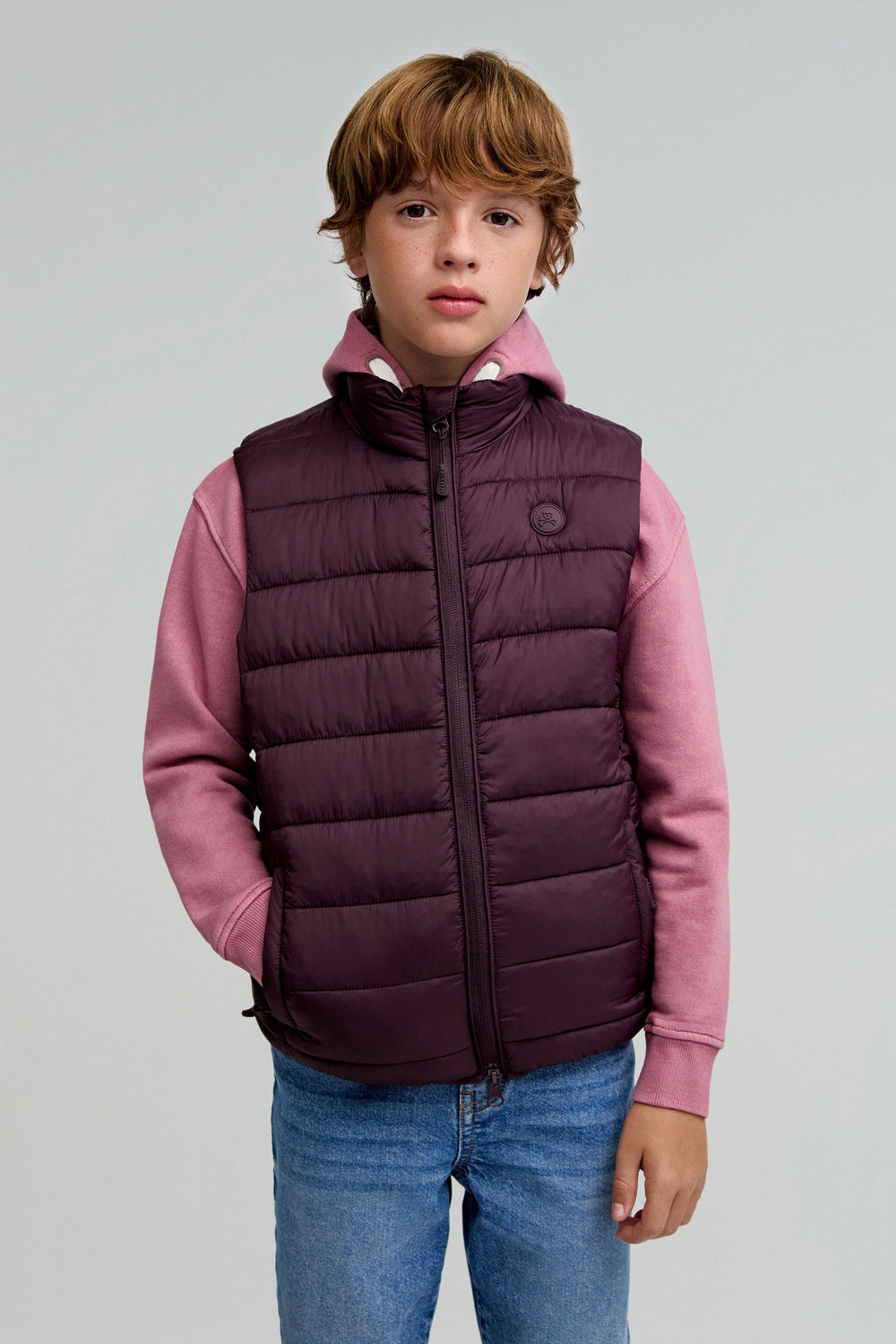 Chaleco acolchado confeccionado en tejido técnico. Regular fit, cuello subido y cierre con cremallera. Manga en sisa y bolsillos con cremallera.