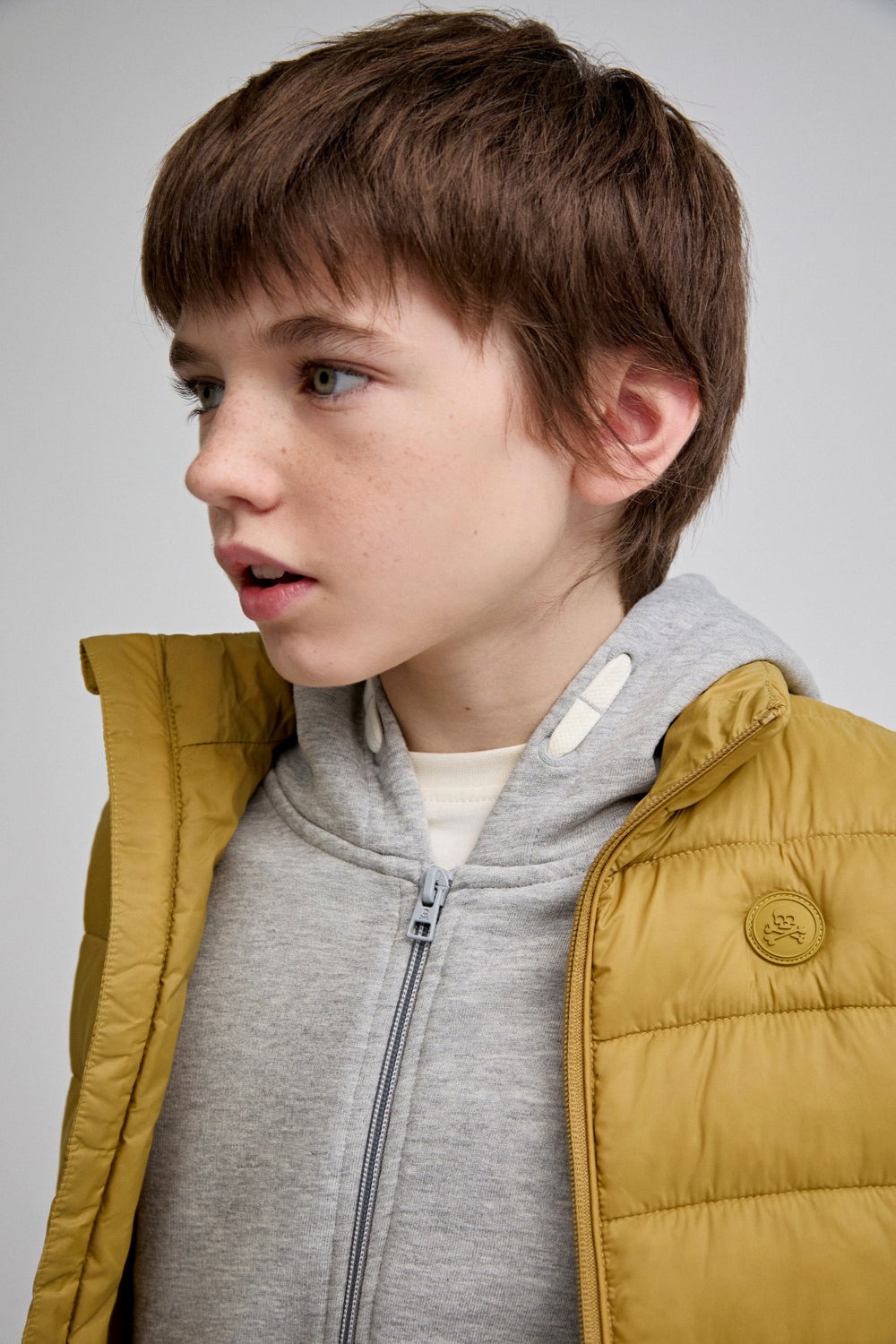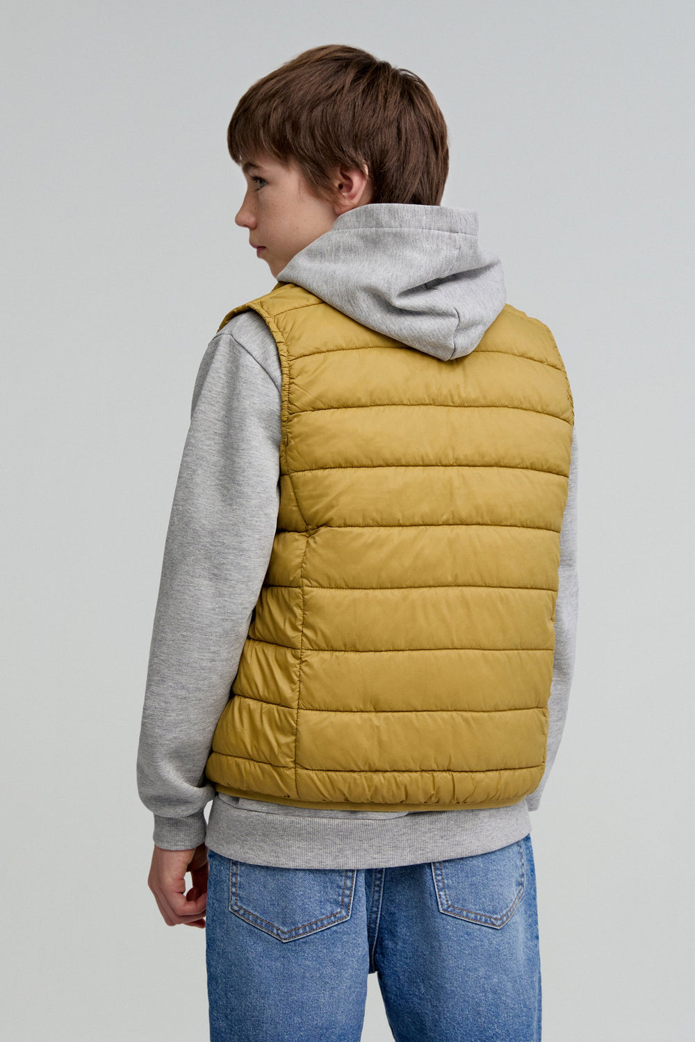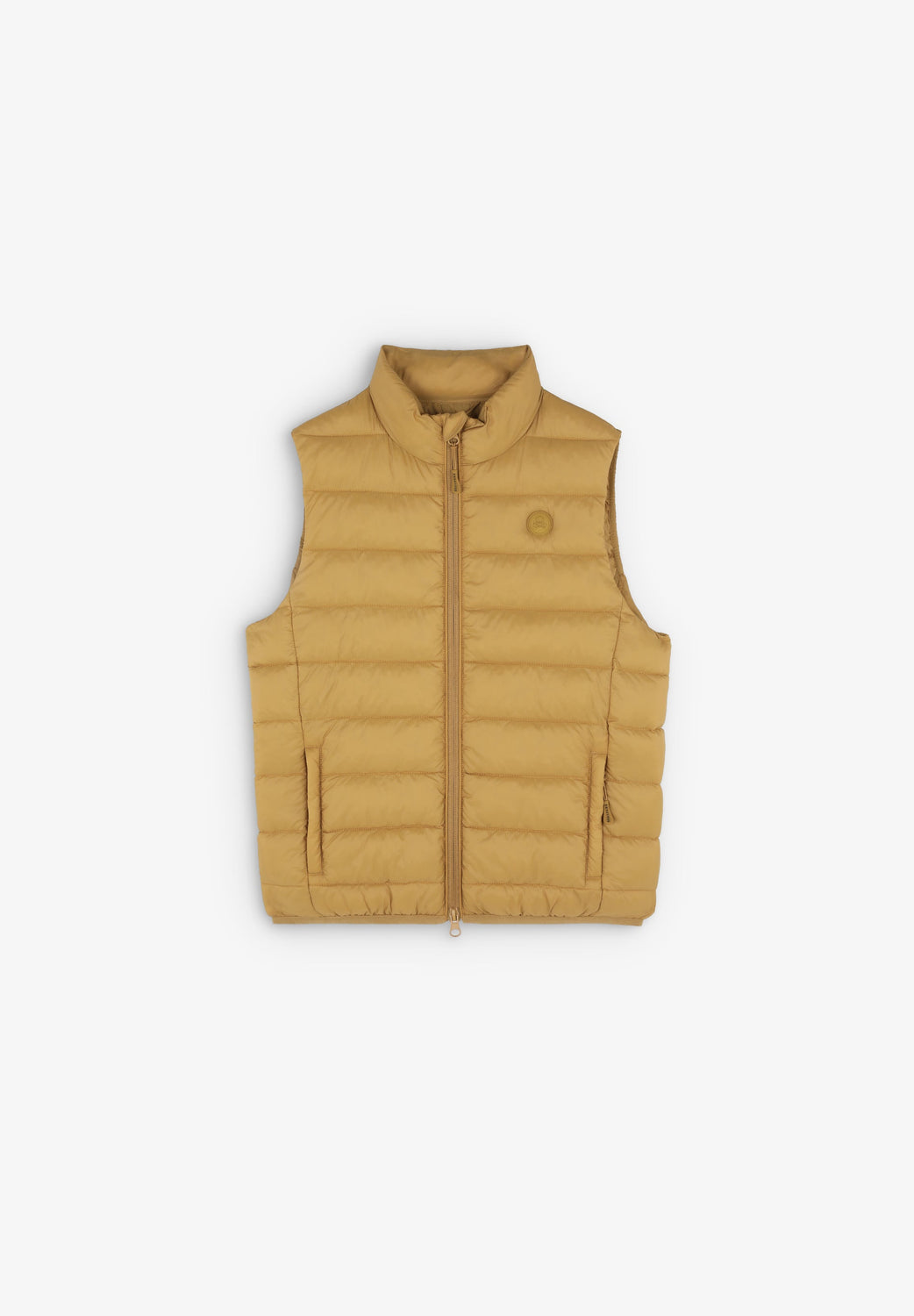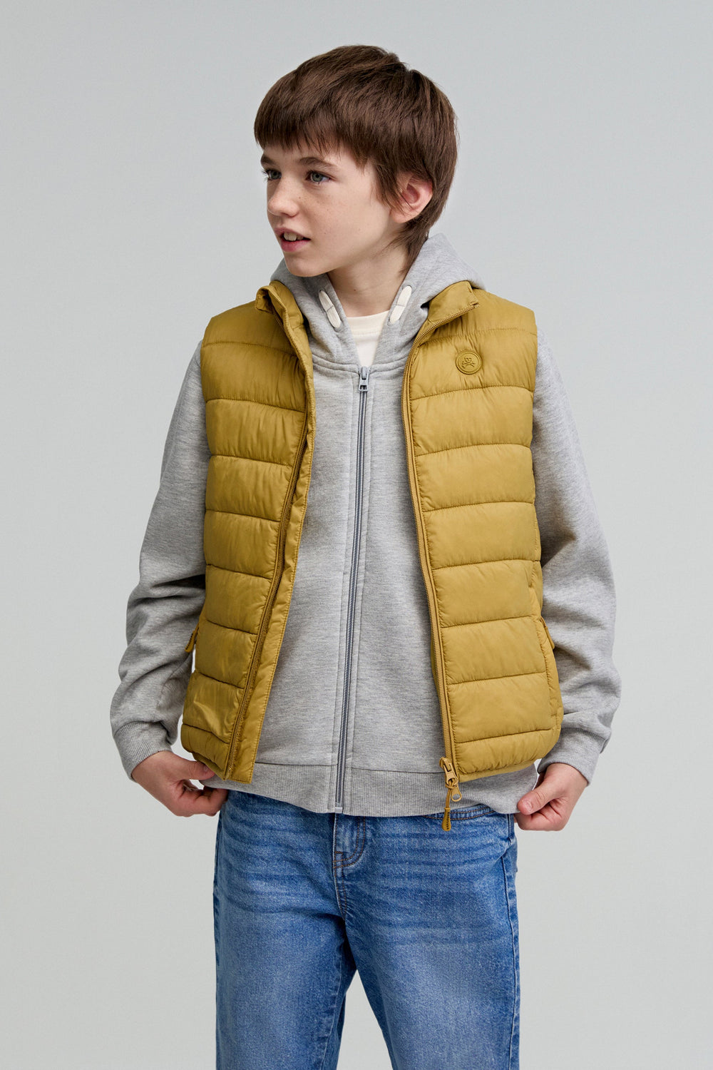 Chaleco acolchado confeccionado en tejido técnico. Regular fit, cuello subido y cierre con cremallera. Manga en sisa y bolsillos con cremallera.