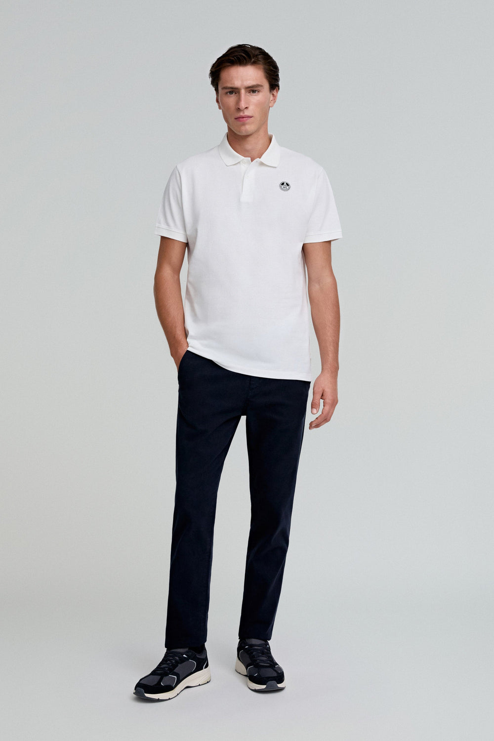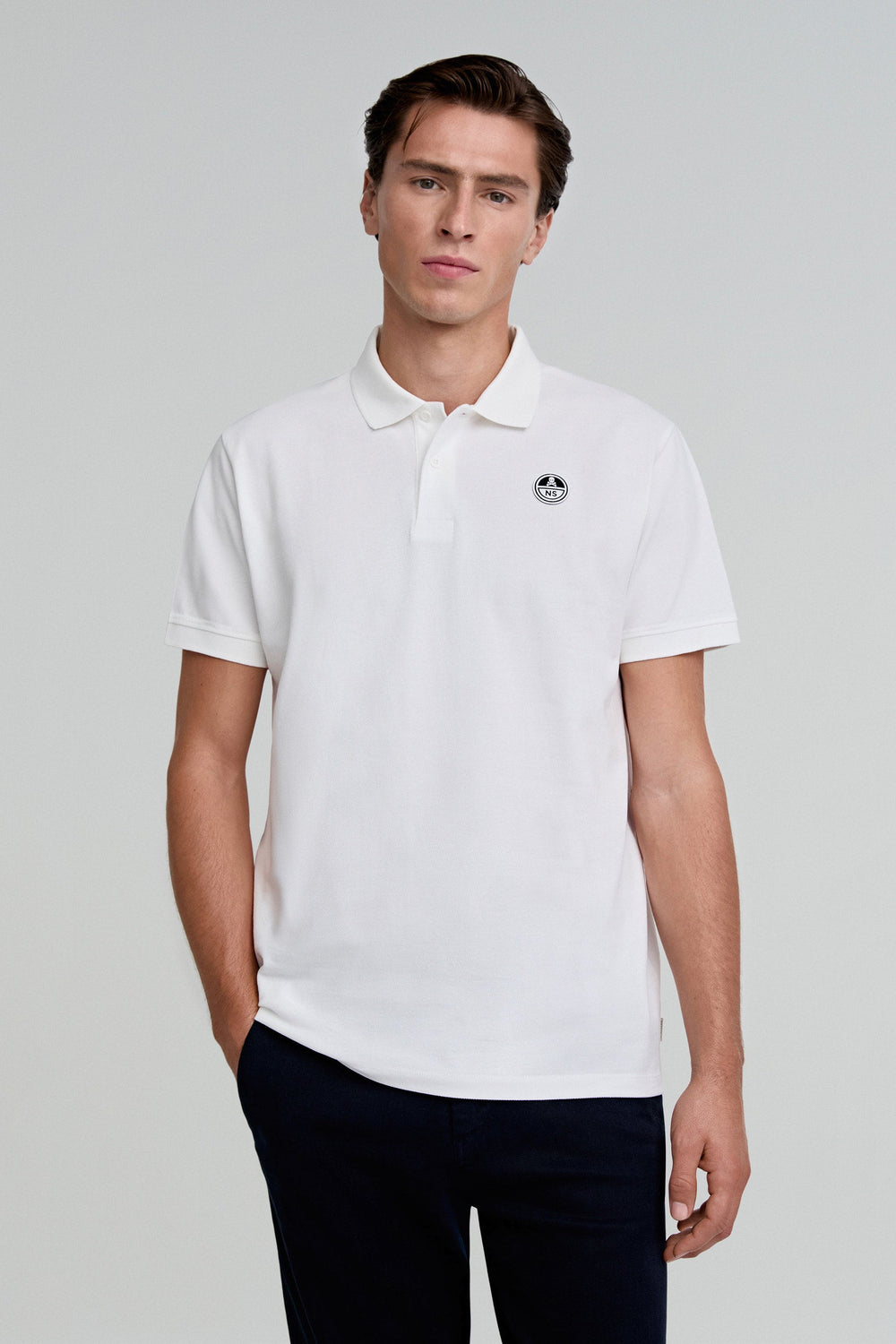 Polo confeccionado en 100% algodón BCI. Regular fit, cuello clásico y manga corta. Detalle de parche.