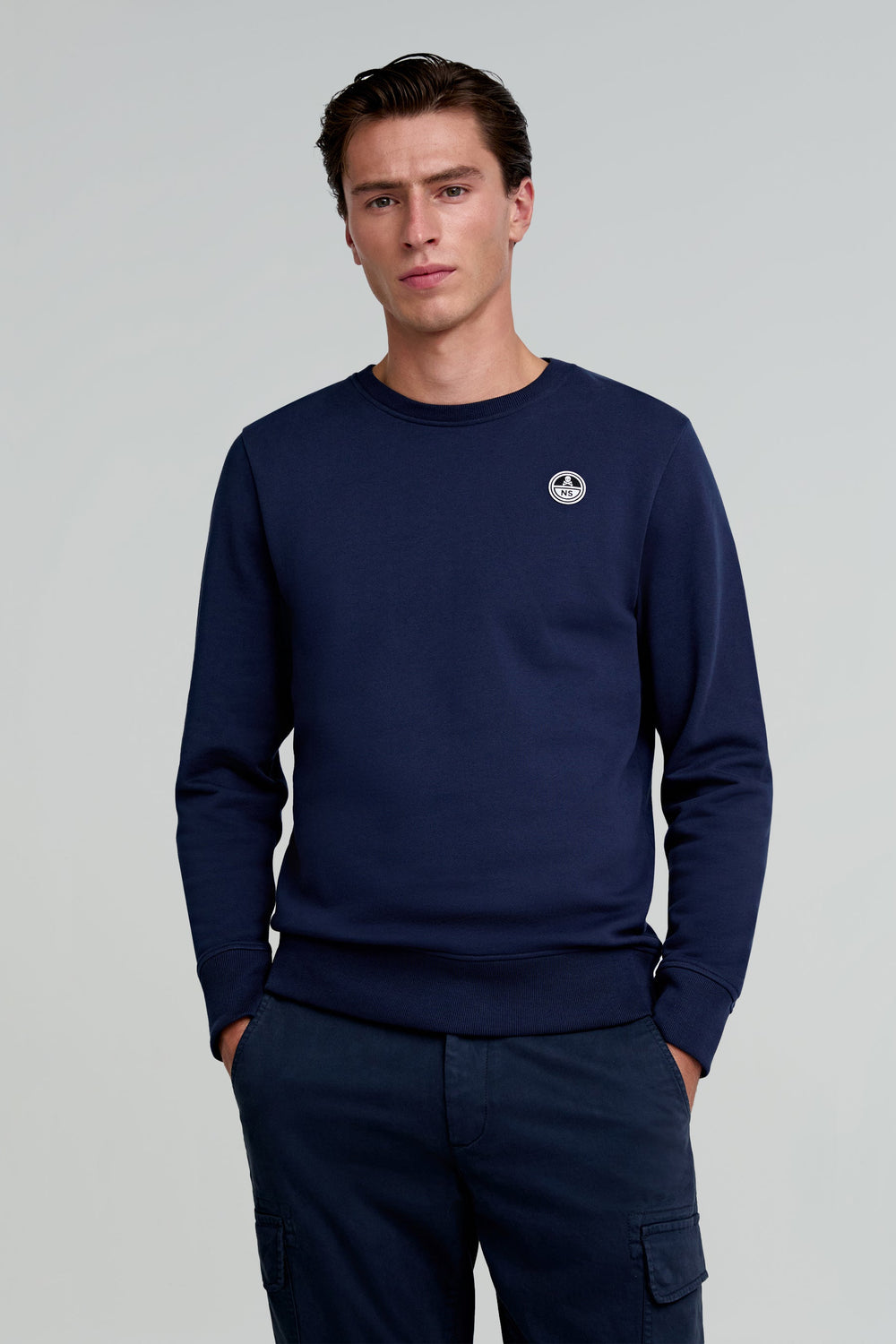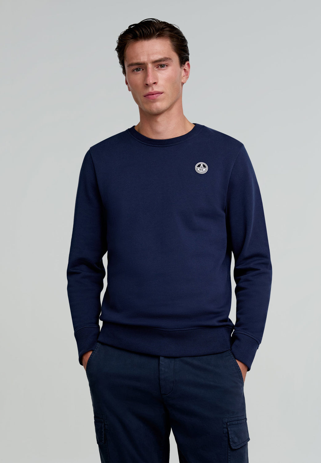 Sudadera confeccionada en 100% algodón orgánico. Regular fit, cuello redondo y manga larga. Detalle de parche en el pecho.