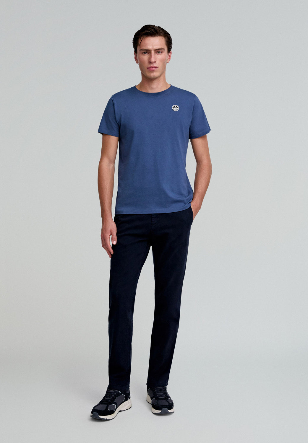 Camiseta confeccionada en 100% algodón BCI. Regular fit, cuello redondo y manga corta. Logo de parche y print trasero.