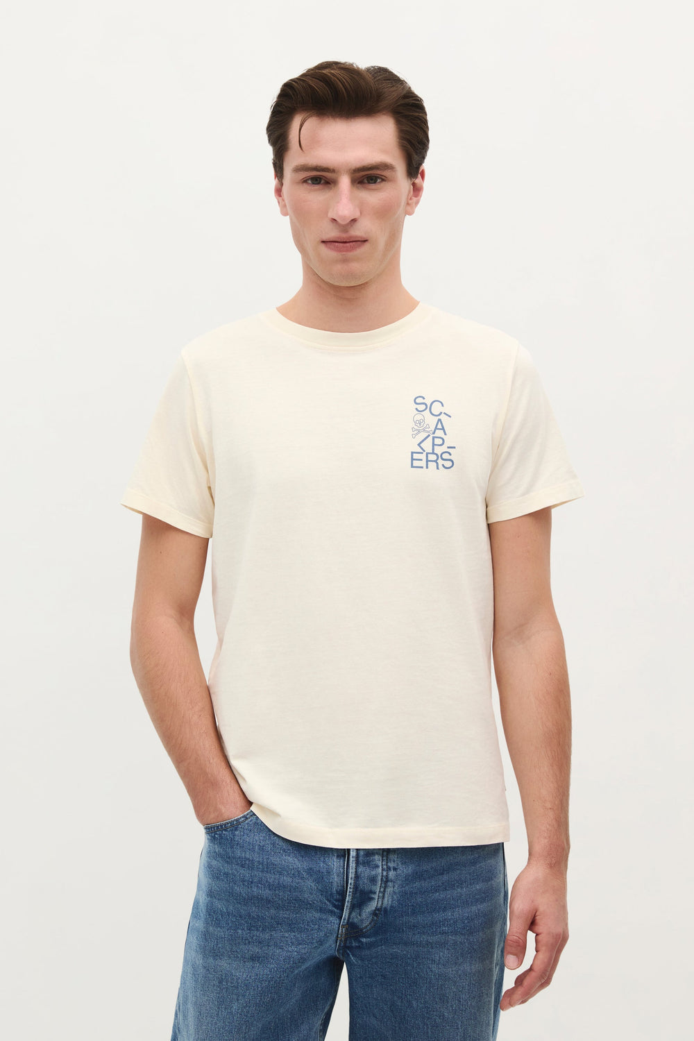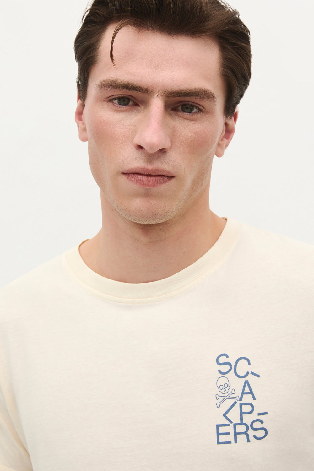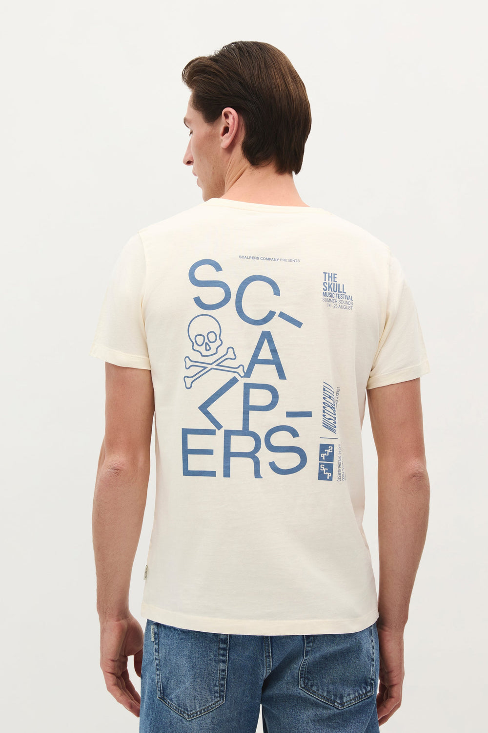 Camiseta con print de logo y calavera trasera y en pecho confeccionada en 100% algodón BCI. Regular fit, cuello redondo y manga corta.