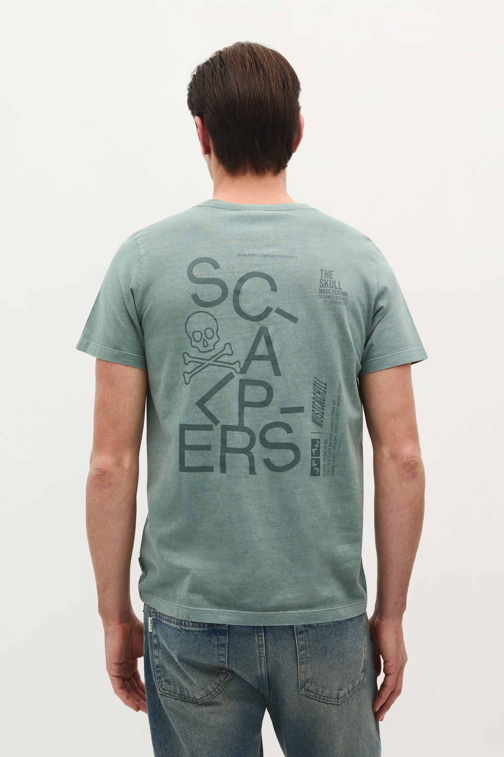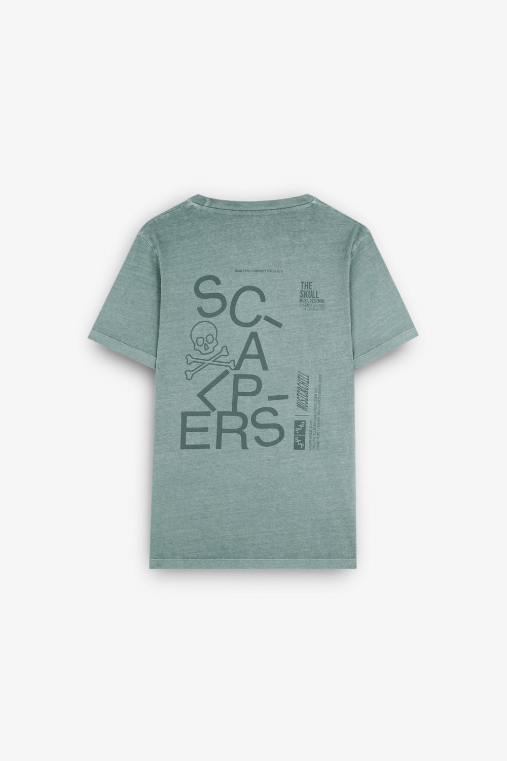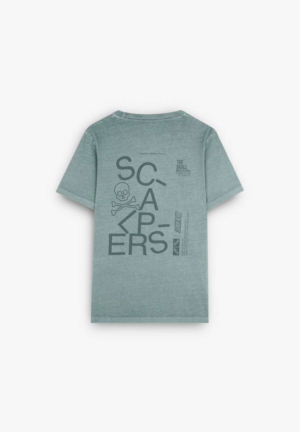 Camiseta con print de logo y calavera trasera y en pecho confeccionada en 100% algodón BCI. Regular fit, cuello redondo y manga corta.