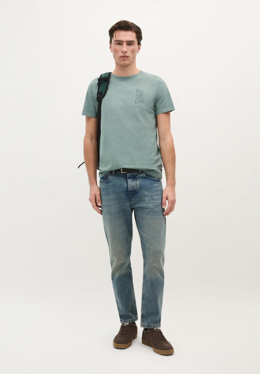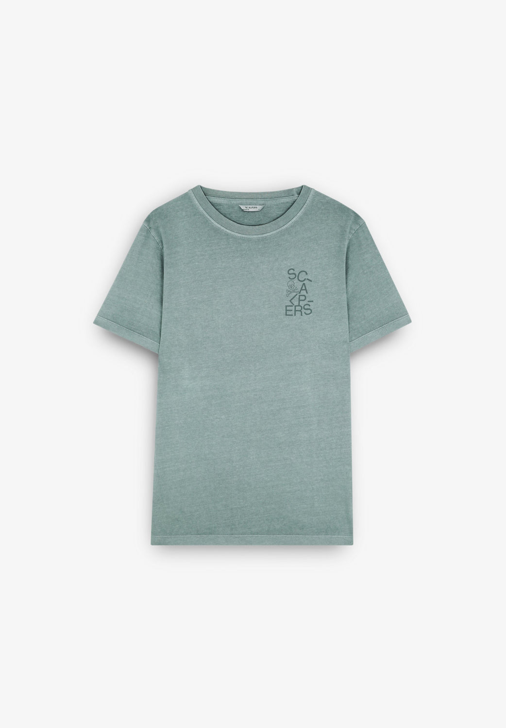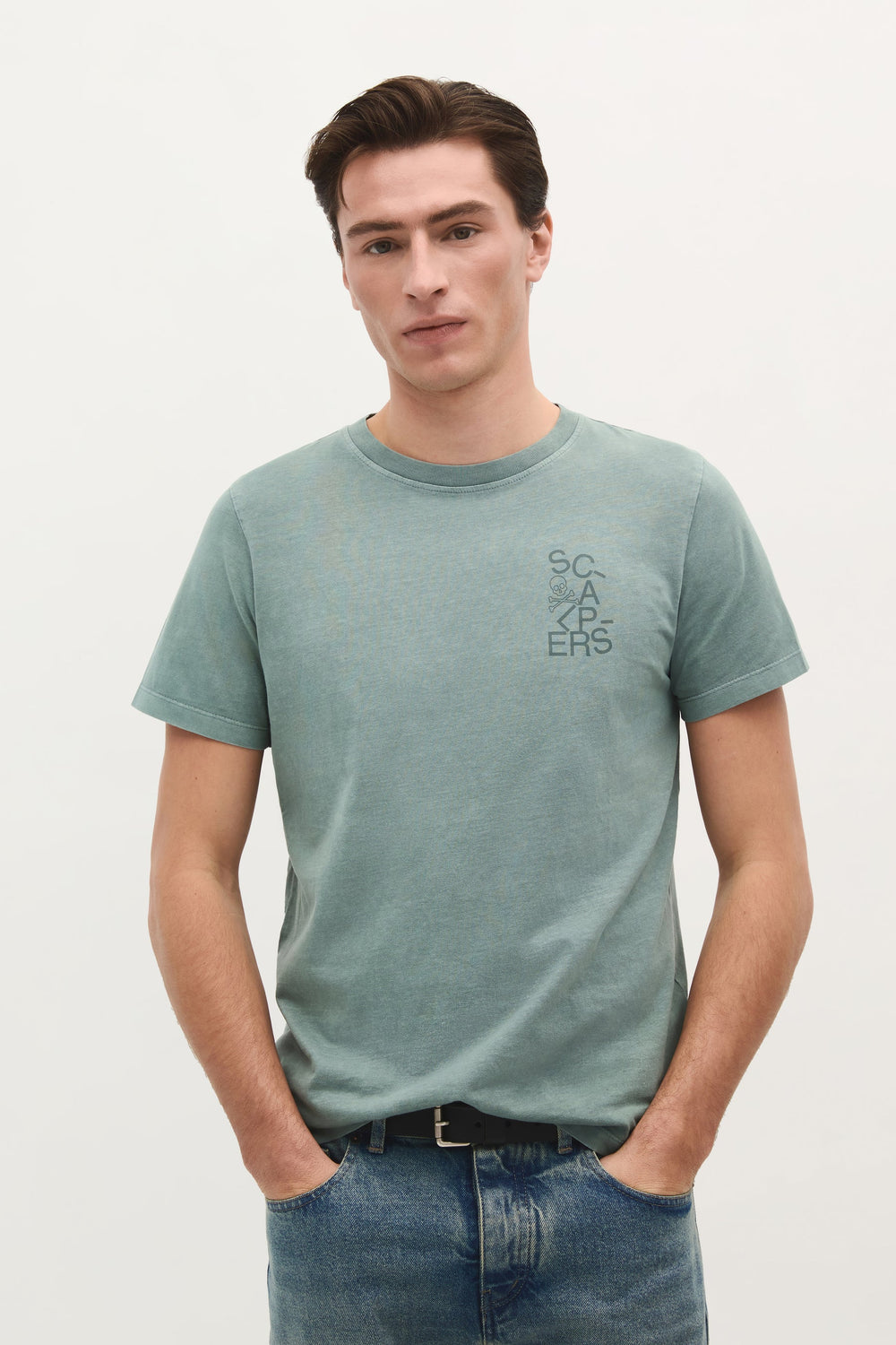 Camiseta con print de logo y calavera trasera y en pecho confeccionada en 100% algodón BCI. Regular fit, cuello redondo y manga corta.