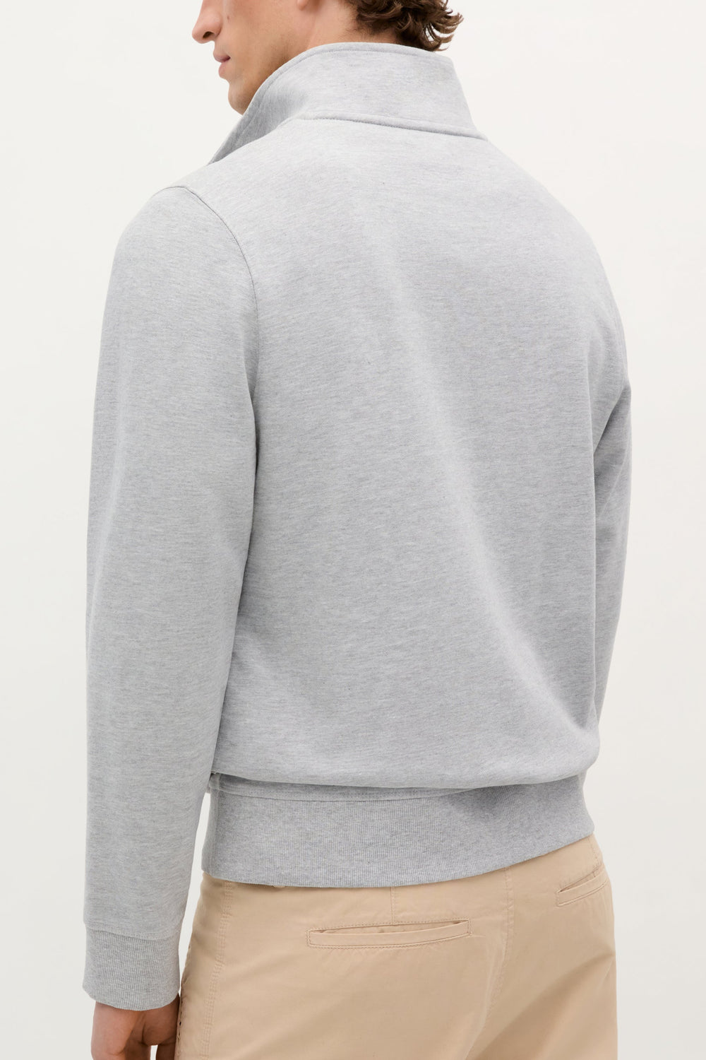 Sudadera con canesú en pecho. Confeccionado en 100% Algodón BCI. Corte Regular fit. Cuello subido. Cierre con cremallera. Manga larga con puños acabados en rib.