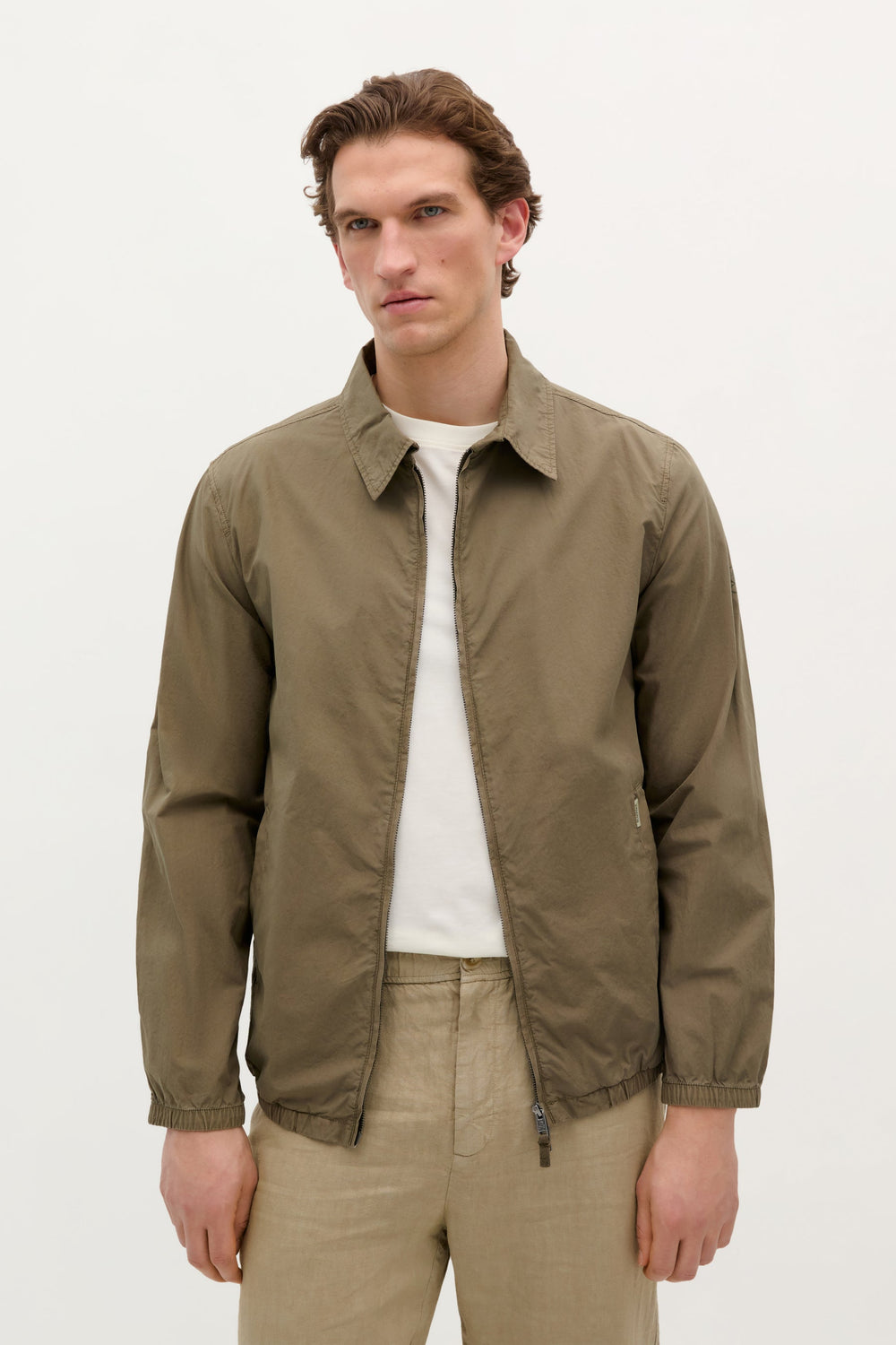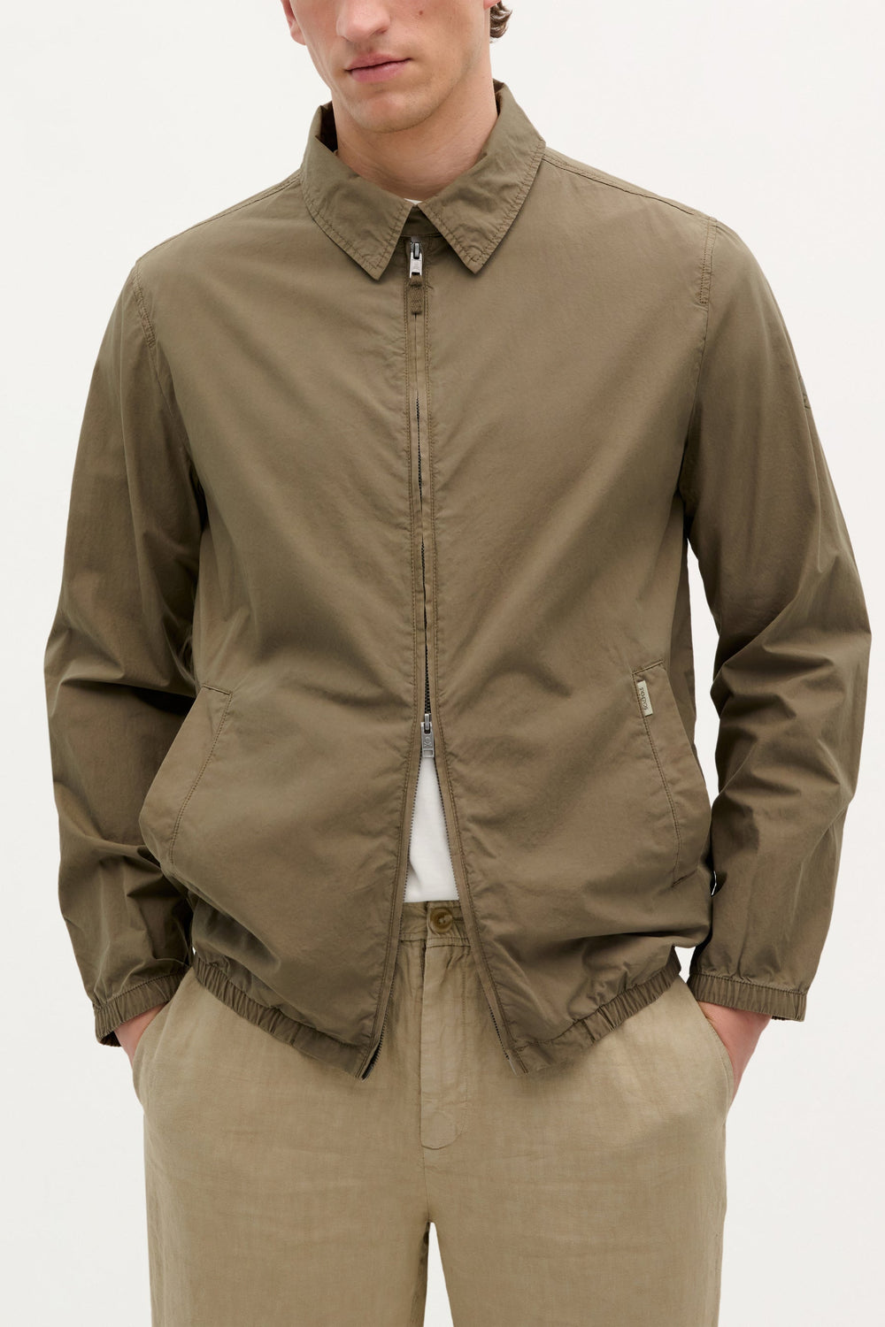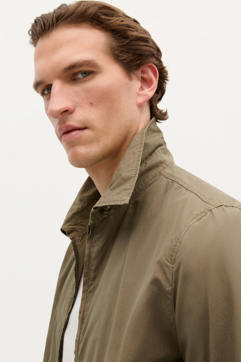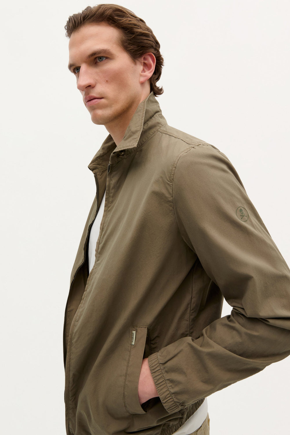 Chaqueta ligera lavada. Confeccionada en 100% Algodón BCI. Corte Regular fit. Cuello solapa. Cierre con cremallera. Manga larga terminada en puño con elástico. Bolsillos laterales de vivo con boca inclinada.
